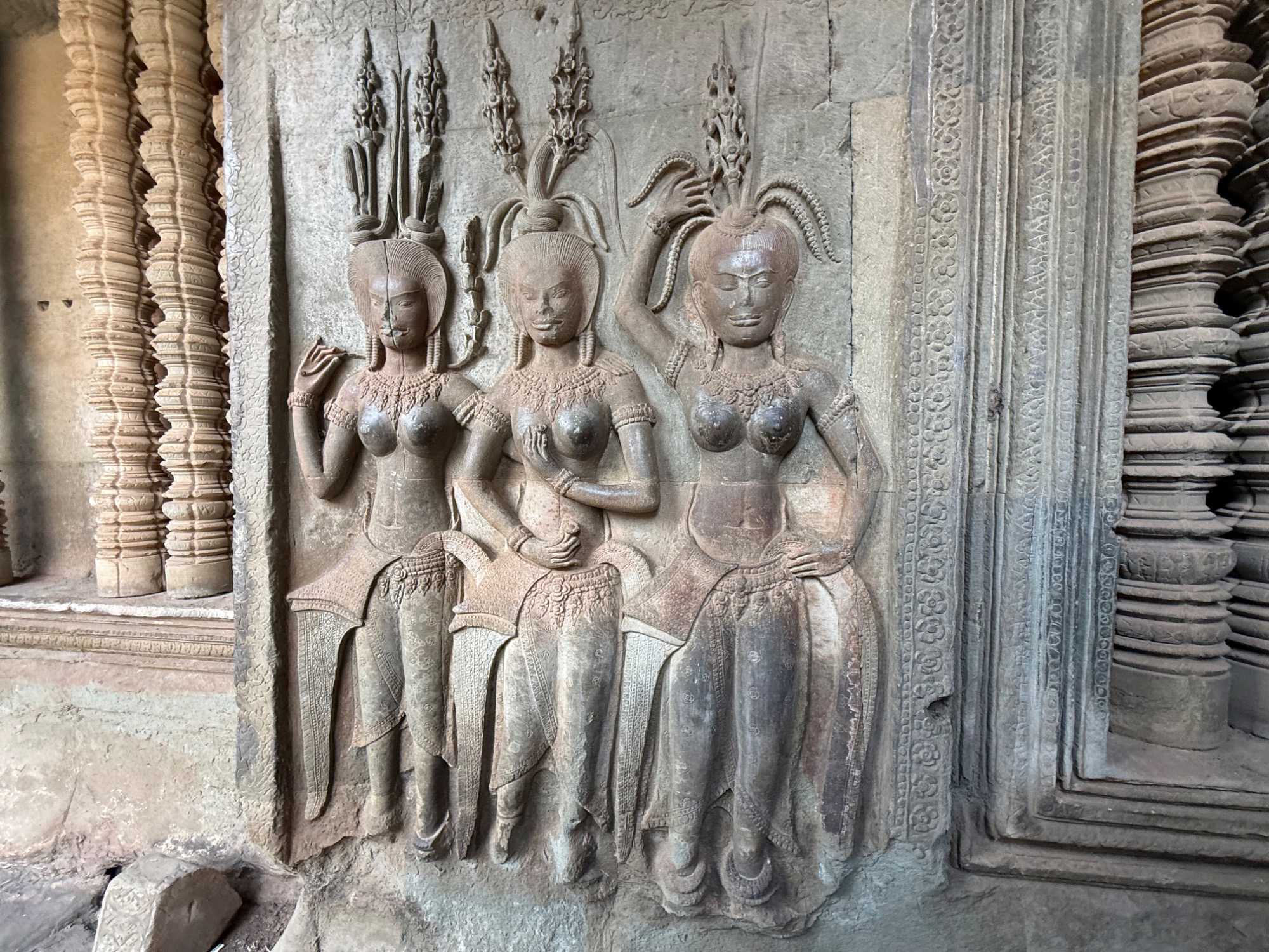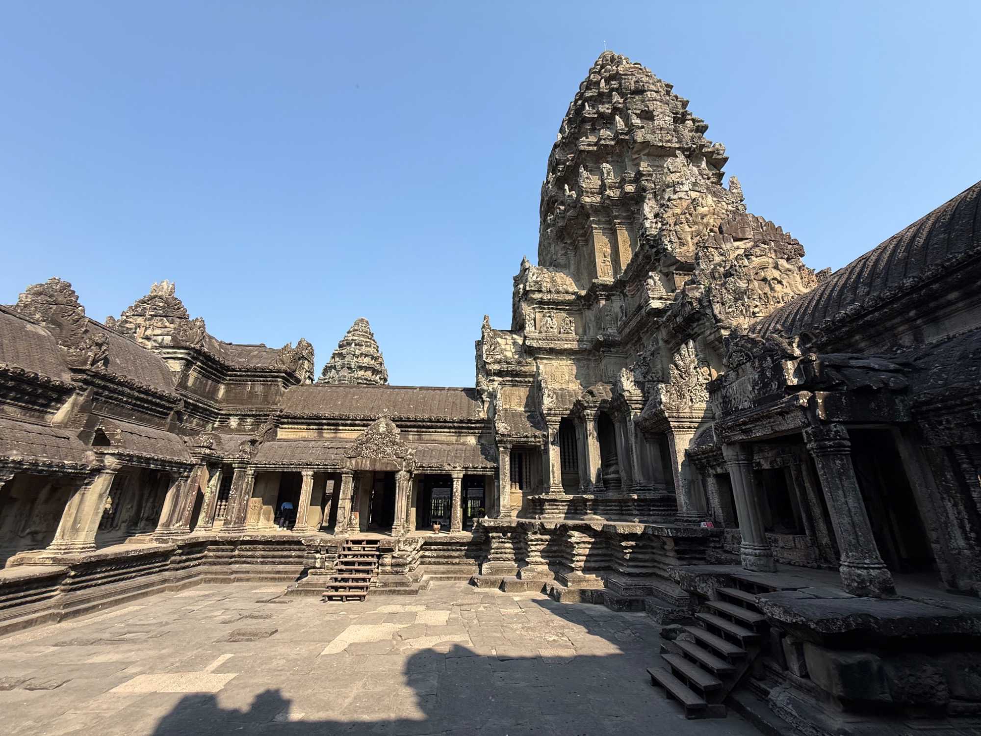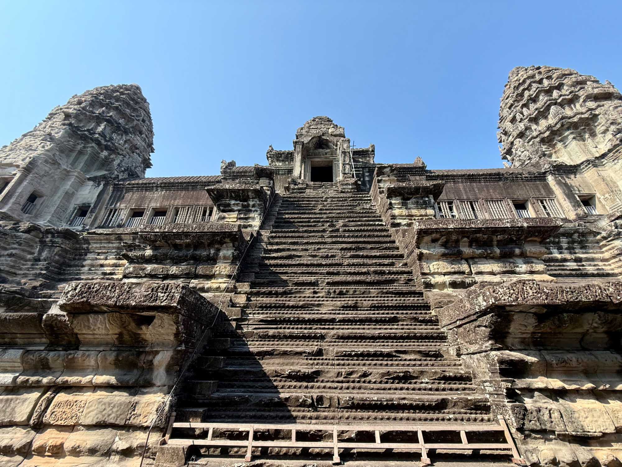Il a été construit au début du XIIe siècle sous le règne de Suryavarman II et dédié à l’origine au dieu hindou Vishnou. Son architecture symbolise le mont Meru, centre mythique de l’univers dans la cosmologie hindoue. Le temple est célèbre pour ses bas-reliefs détaillés et ses cinq tours emblématiques en forme de lotus. Aujourd’hui, Angkor Wat est le symbole national du Cambodge et figure même sur son drapeau.