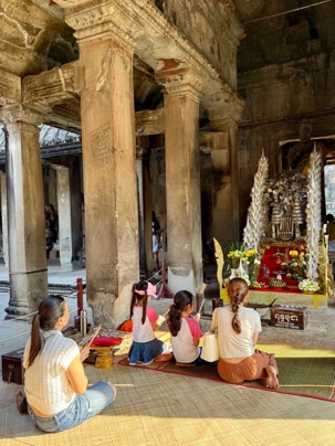 Et quel spectacle… d’une beauté saisissante. Observer les moines venus s’y recueillir, les familles cambodgiennes rassemblées pour contempler cette merveille et immortaliser l’instant, ajoutait à la magie du lieu.