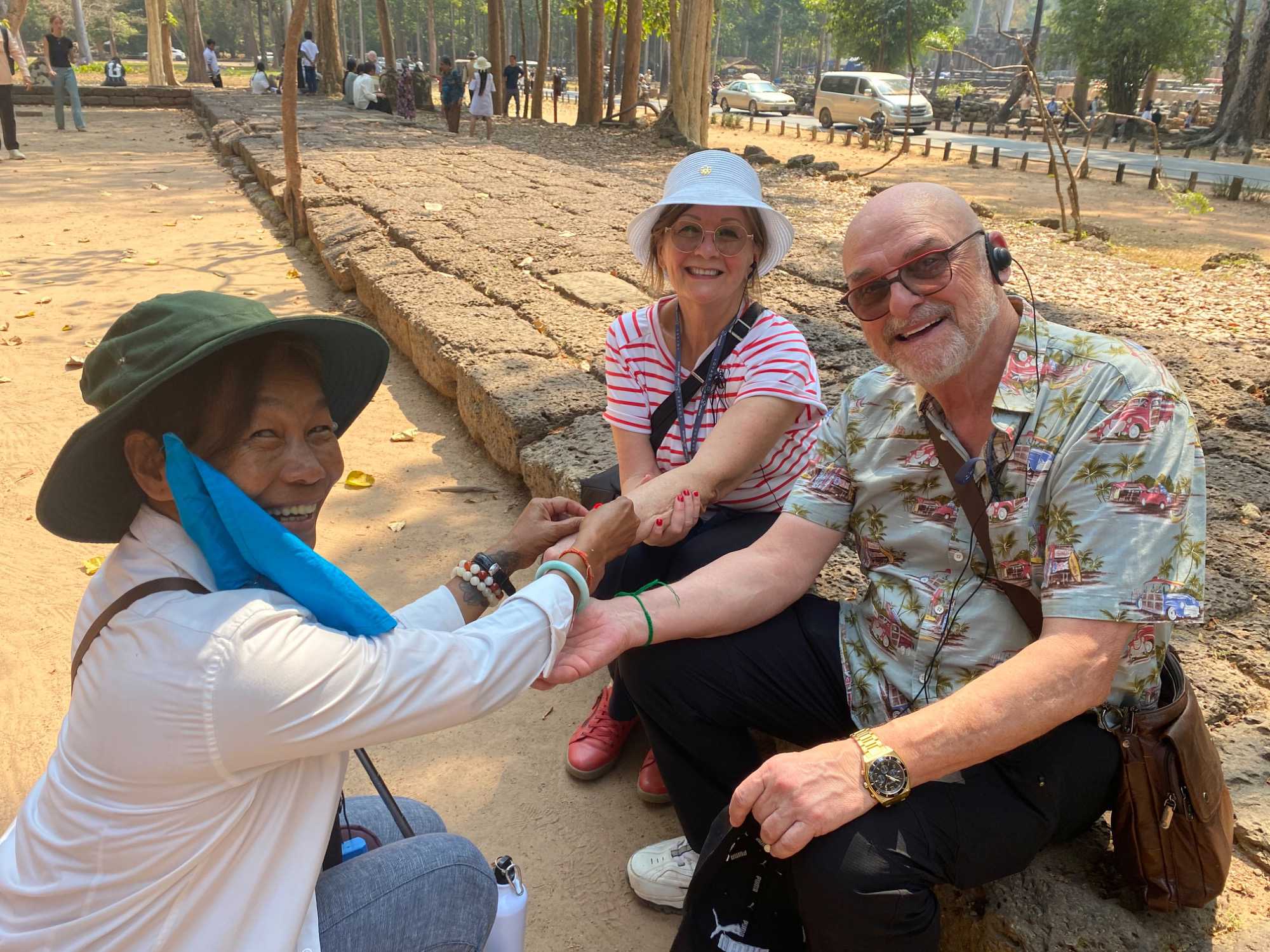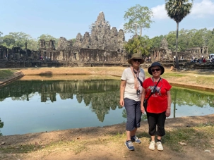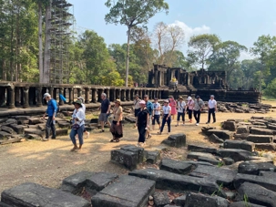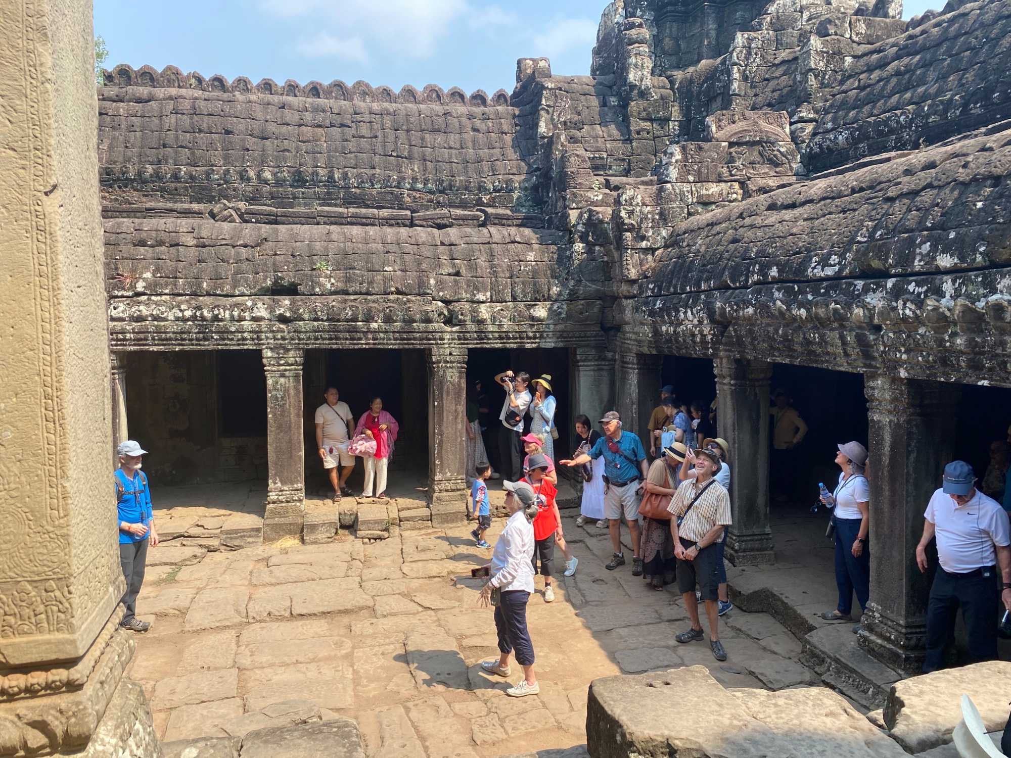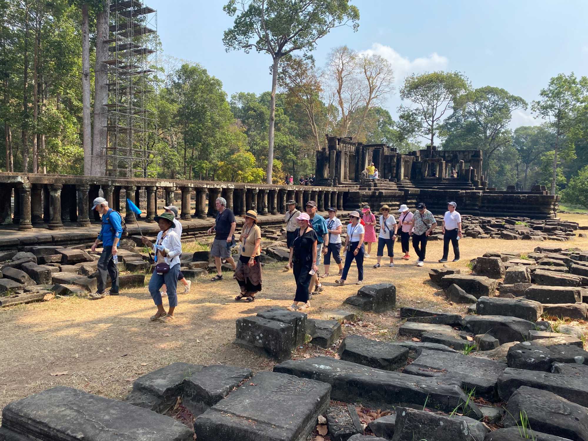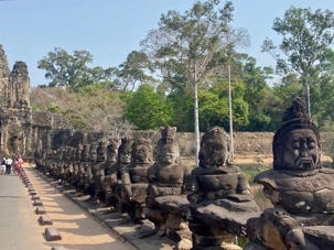 Ce matin est dédié à la poursuite de la visite du grand complexe archéologique et nous débutons par Angkor Thom, qui est une ancienne cité fortifiée. Elle a été fondée à la fin du XIIe siècle par le roi Jayavarman VII et servait de capitale de l’Empire khmer. La ville est entourée de hauts remparts et d’un large fossé, avec cinq portes monumentales ornées de visages sculptés. En son centre se trouve le célèbre temple du Bayon, connu pour ses tours à visages souriants. Angkor Thom représente l’un des ensembles architecturaux les plus impressionnants et symboliques du Cambodge.