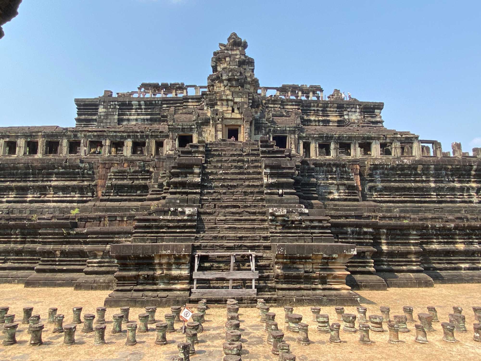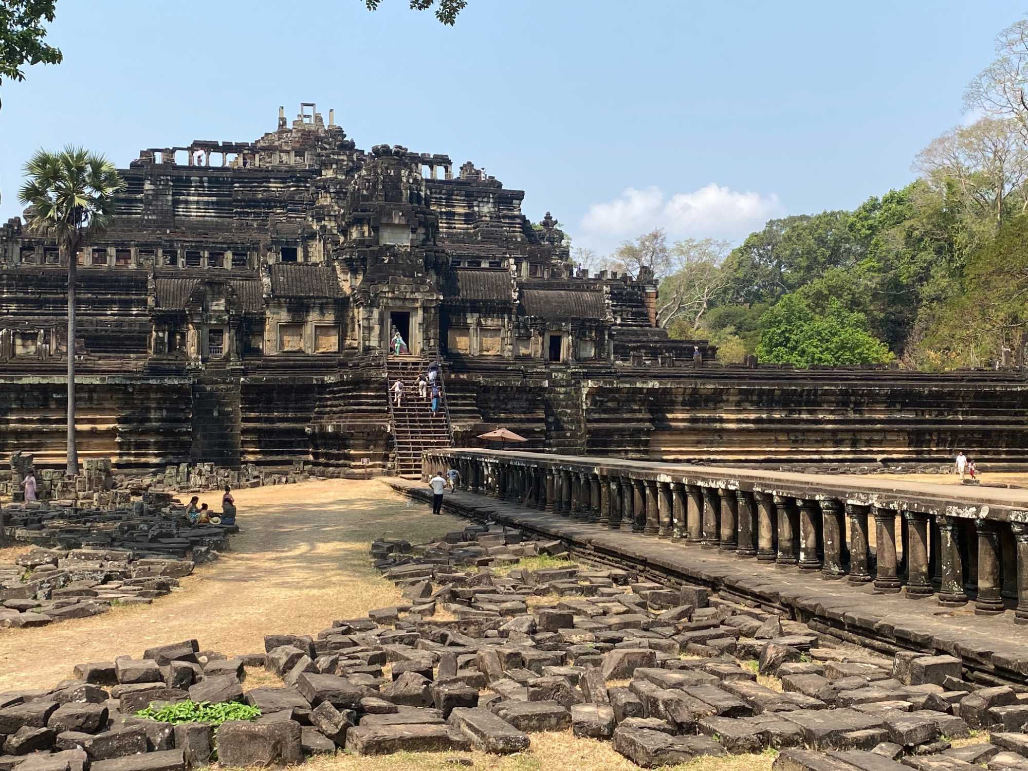 Le Baphuon est un temple-montagne situé dans l’ancienne cité d’Angkor Thom.. Il a été construit au XIe siècle sous le règne de Udayadityavarman II et dédié à l’origine au dieu hindou Shiva. Ce monument impressionnant symbolise le mont Meru, centre mythique de l’univers dans la cosmologie hindoue. Plus tard, il fut transformé en temple bouddhiste avec l’ajout d’un immense Bouddha couché à l’arrière. Après une longue restauration achevée au XXIe siècle, le Baphuon est aujourd’hui l’un des temples majeurs d’Angkor.