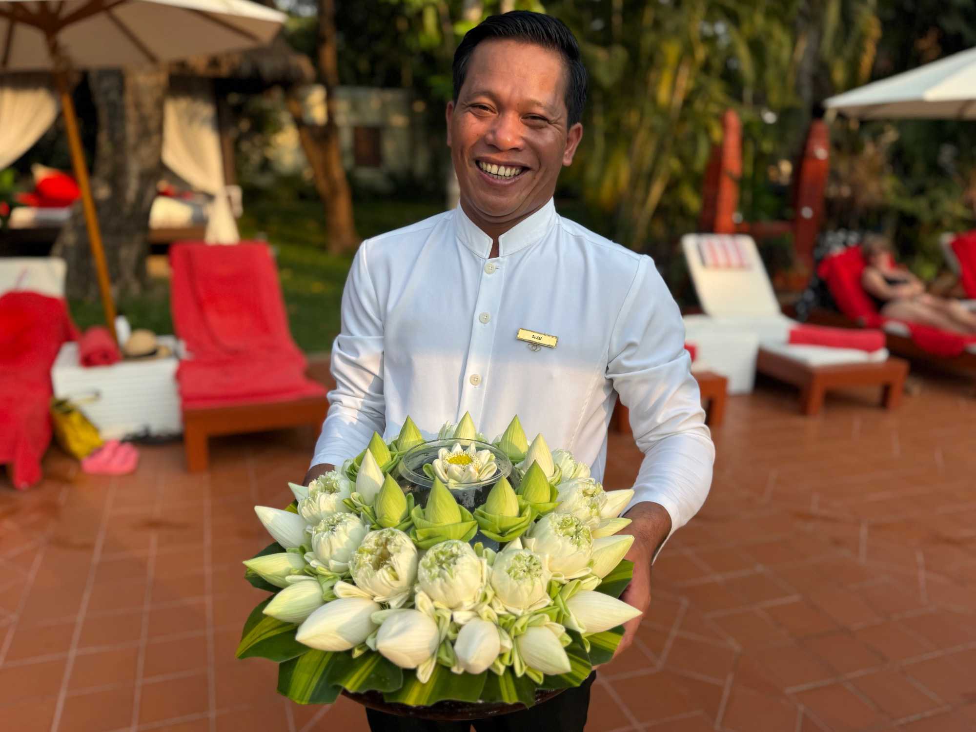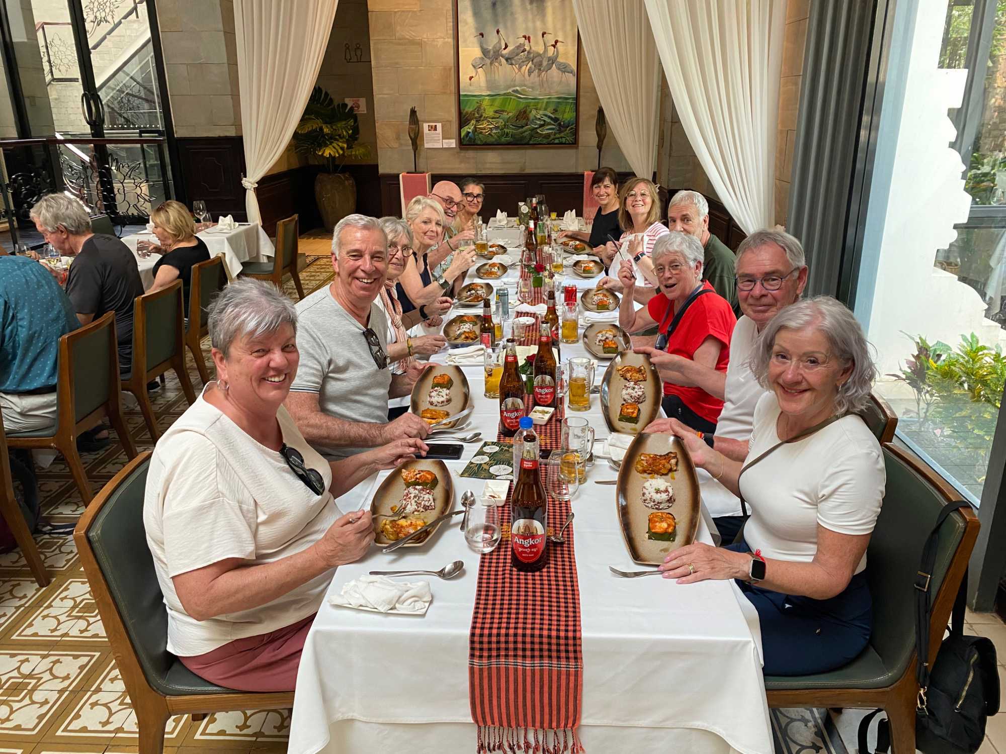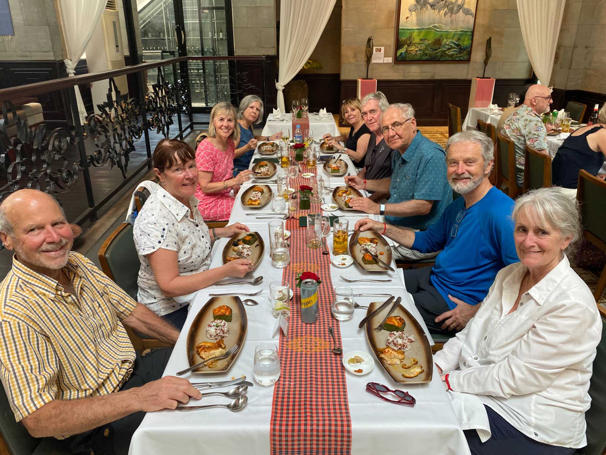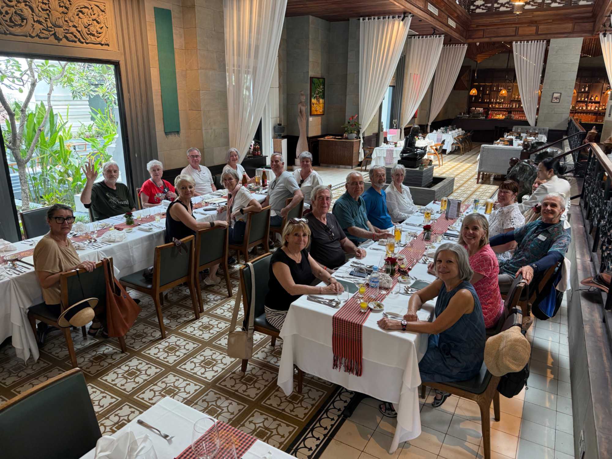 En soirée, nous nous retrouvons tous pour partager le repas dans notre splendide restaurant, avec en prime le privilège d’assister à un magnifique spectacle de danse Apsara, accompagné de musiciens traditionnels. Une soirée empreinte de grâce et d’élégance, qui vient couronner ces moments mémorables.