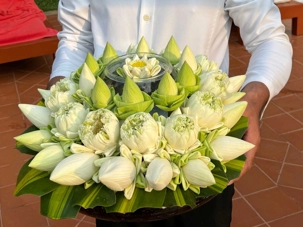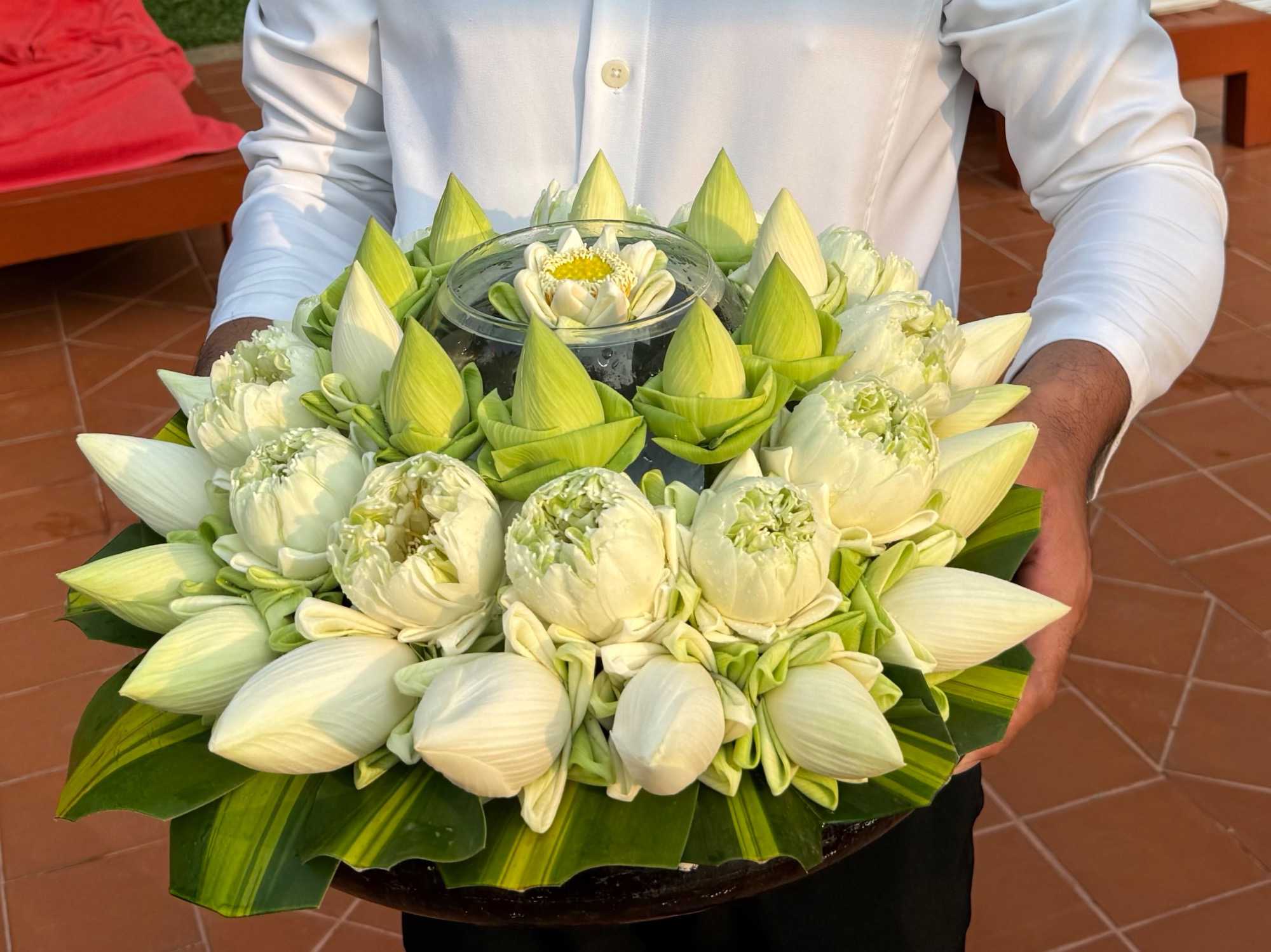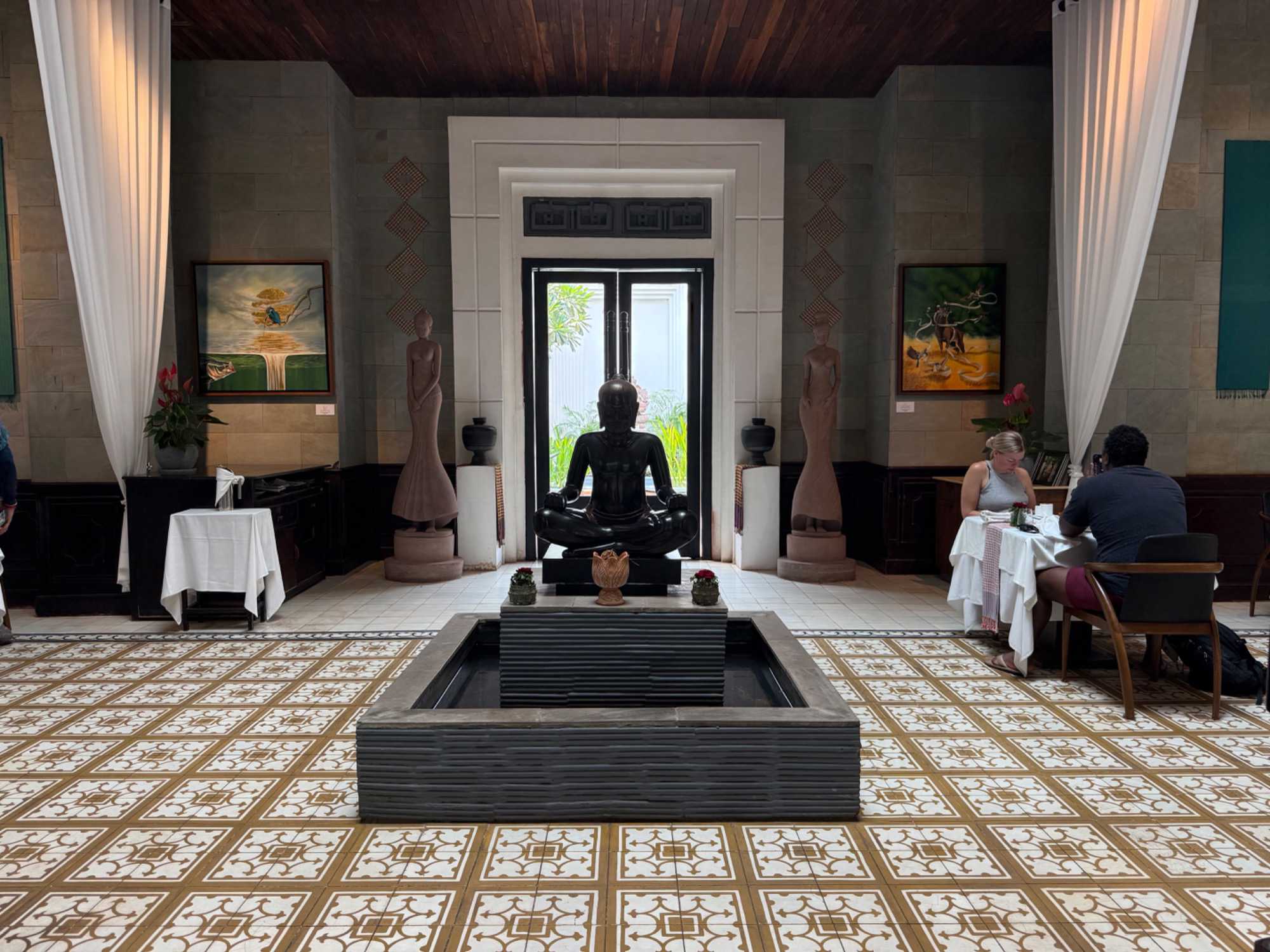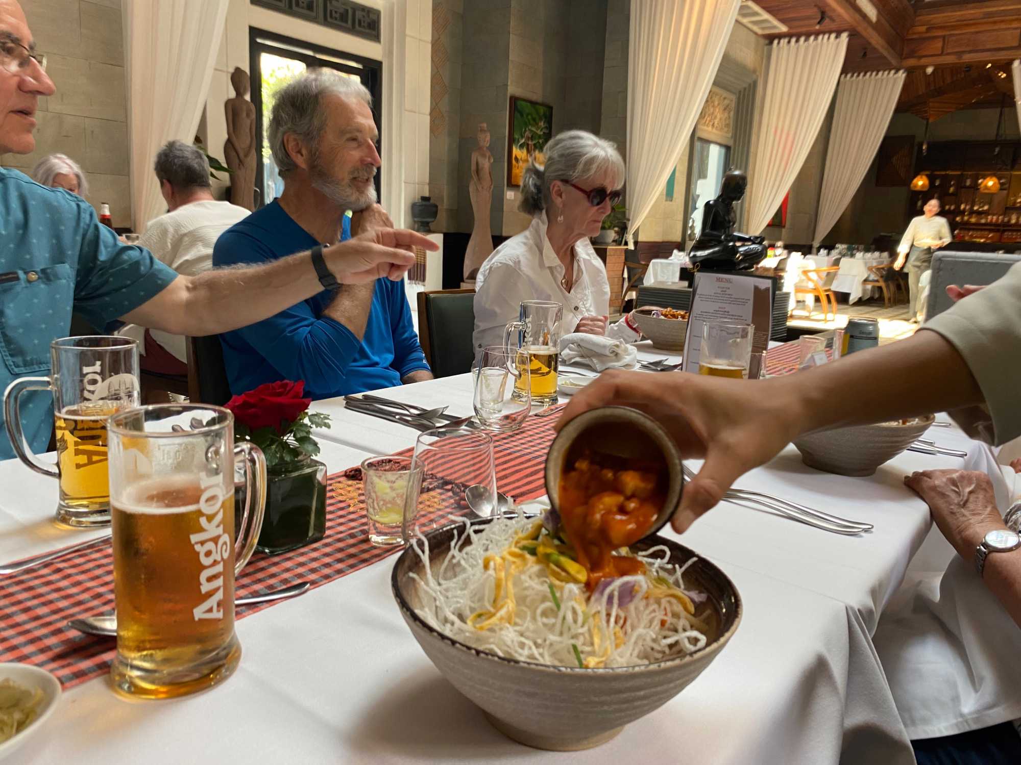 En soirée, nous nous retrouvons tous pour partager le repas dans notre splendide restaurant, avec en prime le privilège d’assister à un magnifique spectacle de danse Apsara, accompagné de musiciens traditionnels. Une soirée empreinte de grâce et d’élégance, qui vient couronner ces moments mémorables.