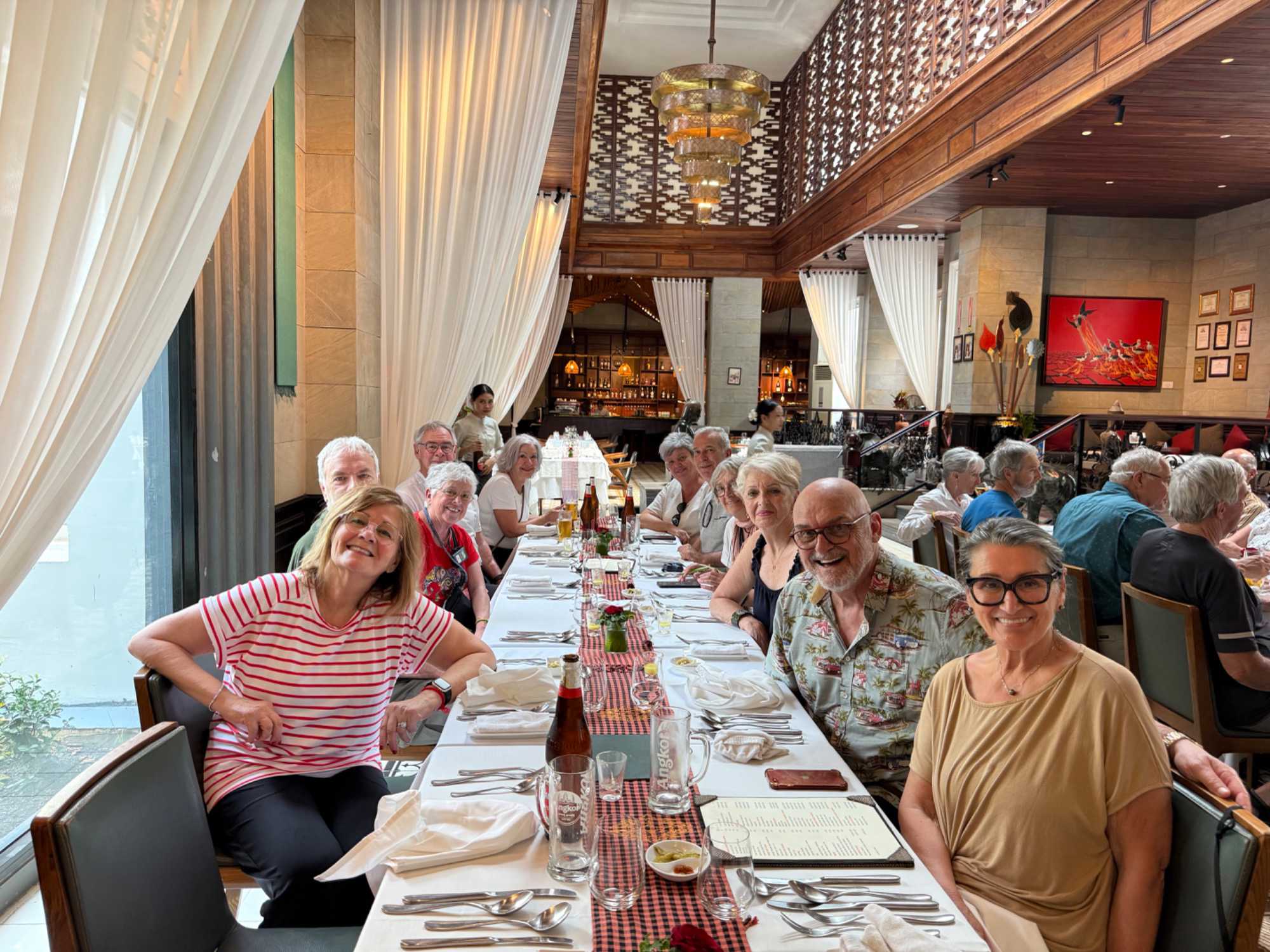 En milieu d’après-midi, chacun profite d’un moment de liberté pour vaquer à ses occupations. Plusieurs choisissent de se rafraîchir à la piscine, d’autres empruntent un tuk-tuk pour explorer le centre-ville et faire un peu de magasinage, tandis que certains consacrent un moment à préparer leur valise, puisque notre départ est prévu tôt le lendemain matin.