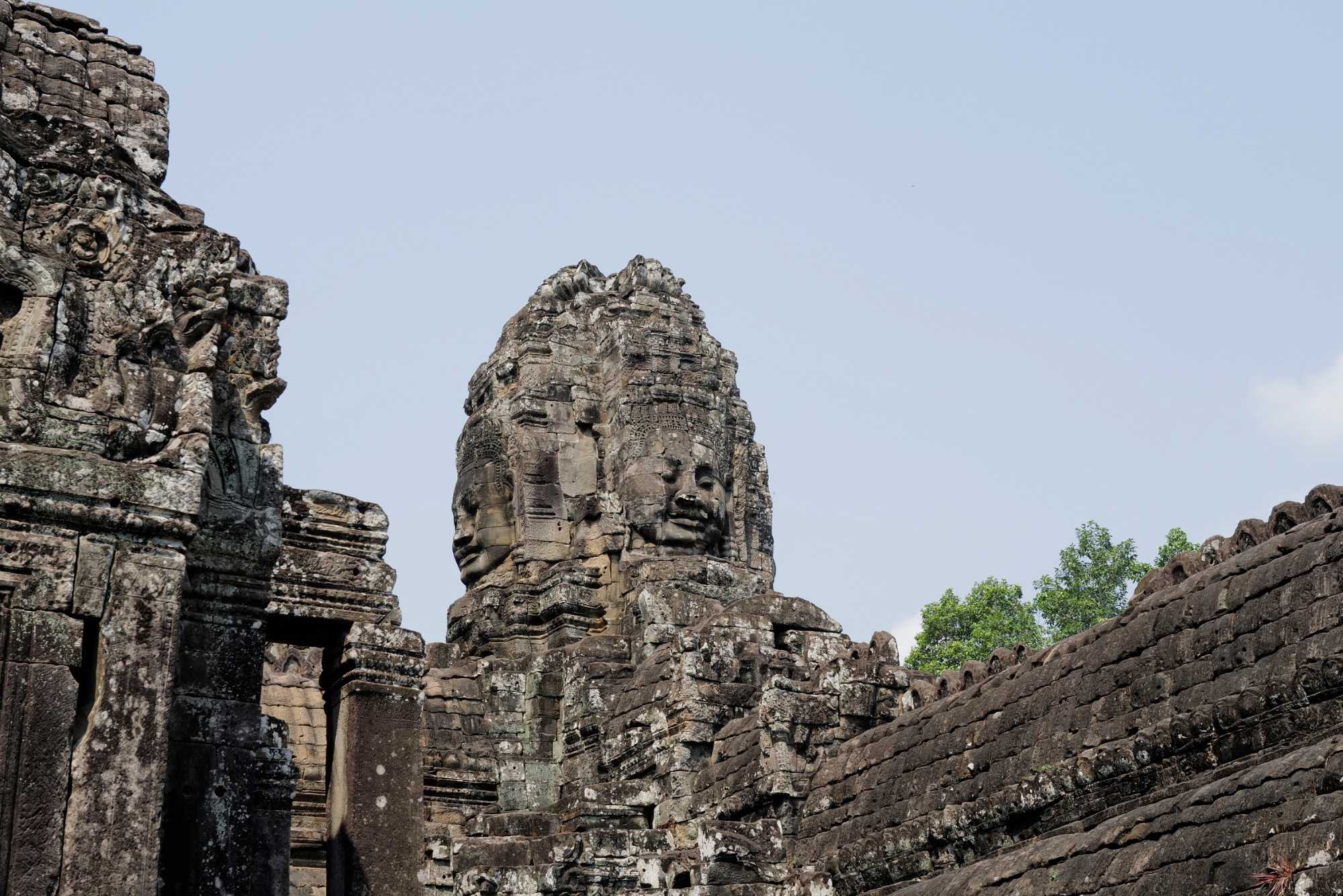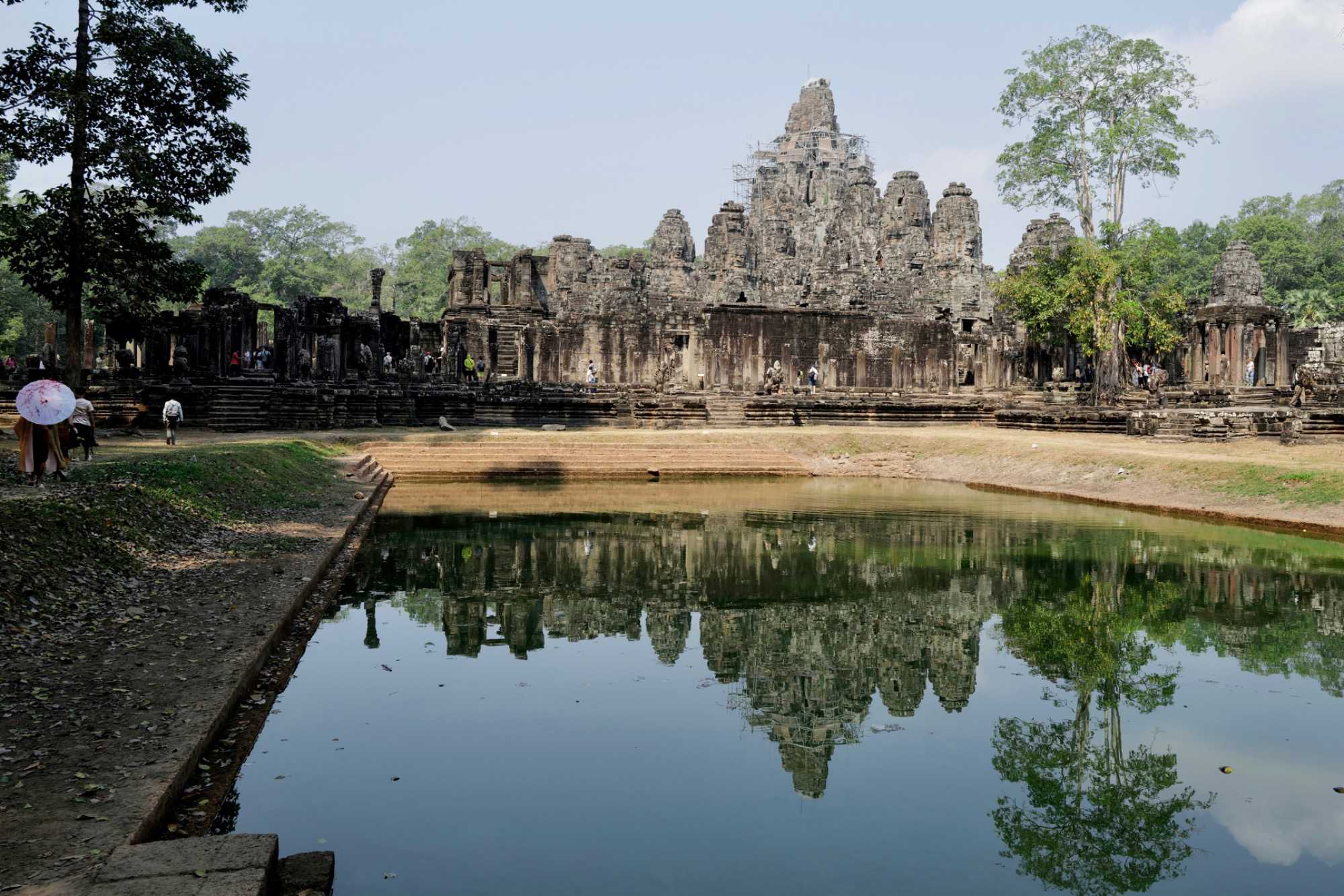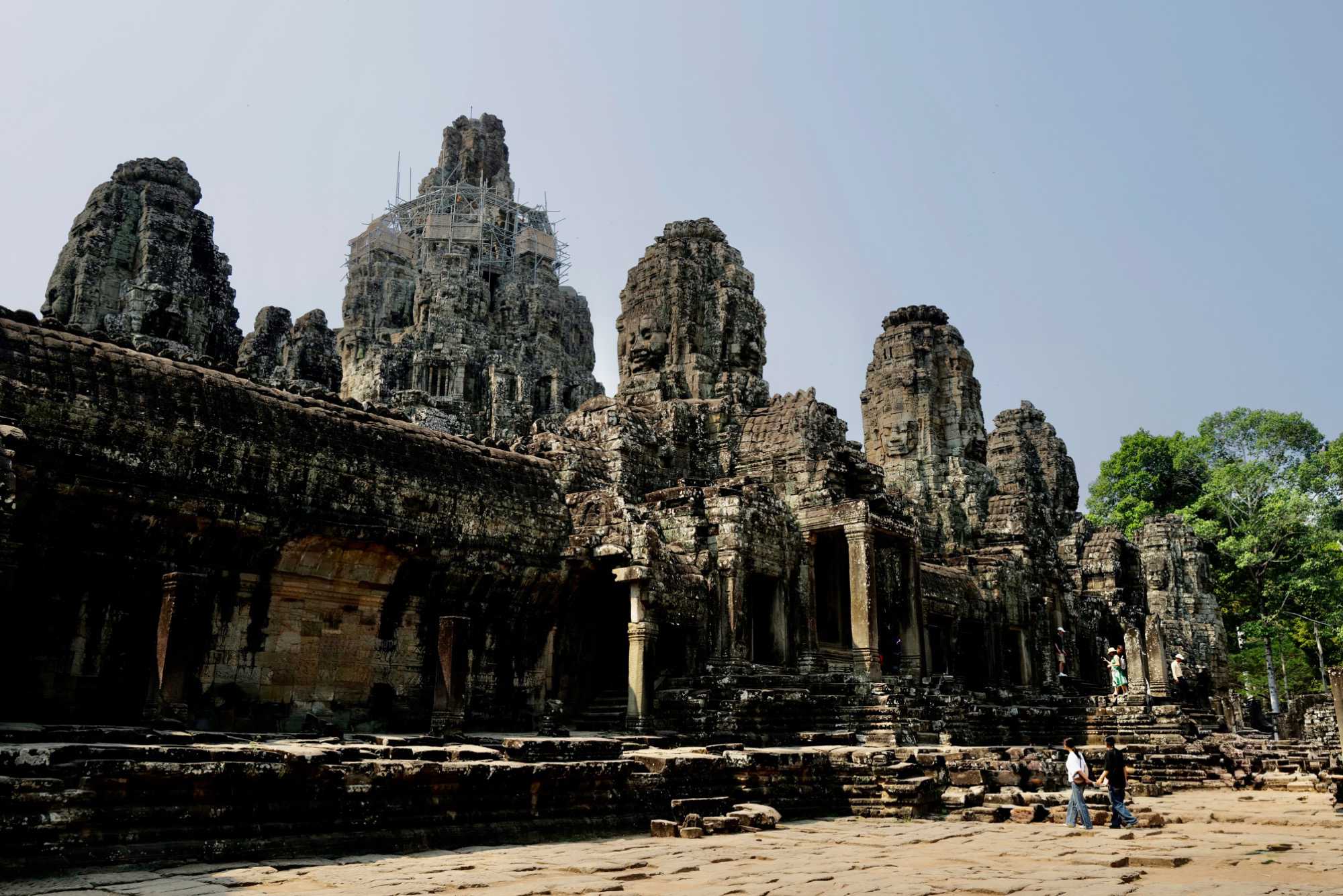 Le Bayon est un temple bouddhiste situé au centre de la cité d’Angkor Thom. Il a été construit à la fin du XIIe siècle sous le règne de Jayavarman VII. Le temple est célèbre pour ses 54 tours ornées de plus de 200 visages monumentaux sculptés dans la pierre, tous différents. Ses bas-reliefs détaillés représentent des scènes de la vie quotidienne et des batailles historiques de l’Empire khmer. Le Bayon est considéré comme l’un des chefs-d’œuvre artistiques et spirituels de l’architecture khmère.