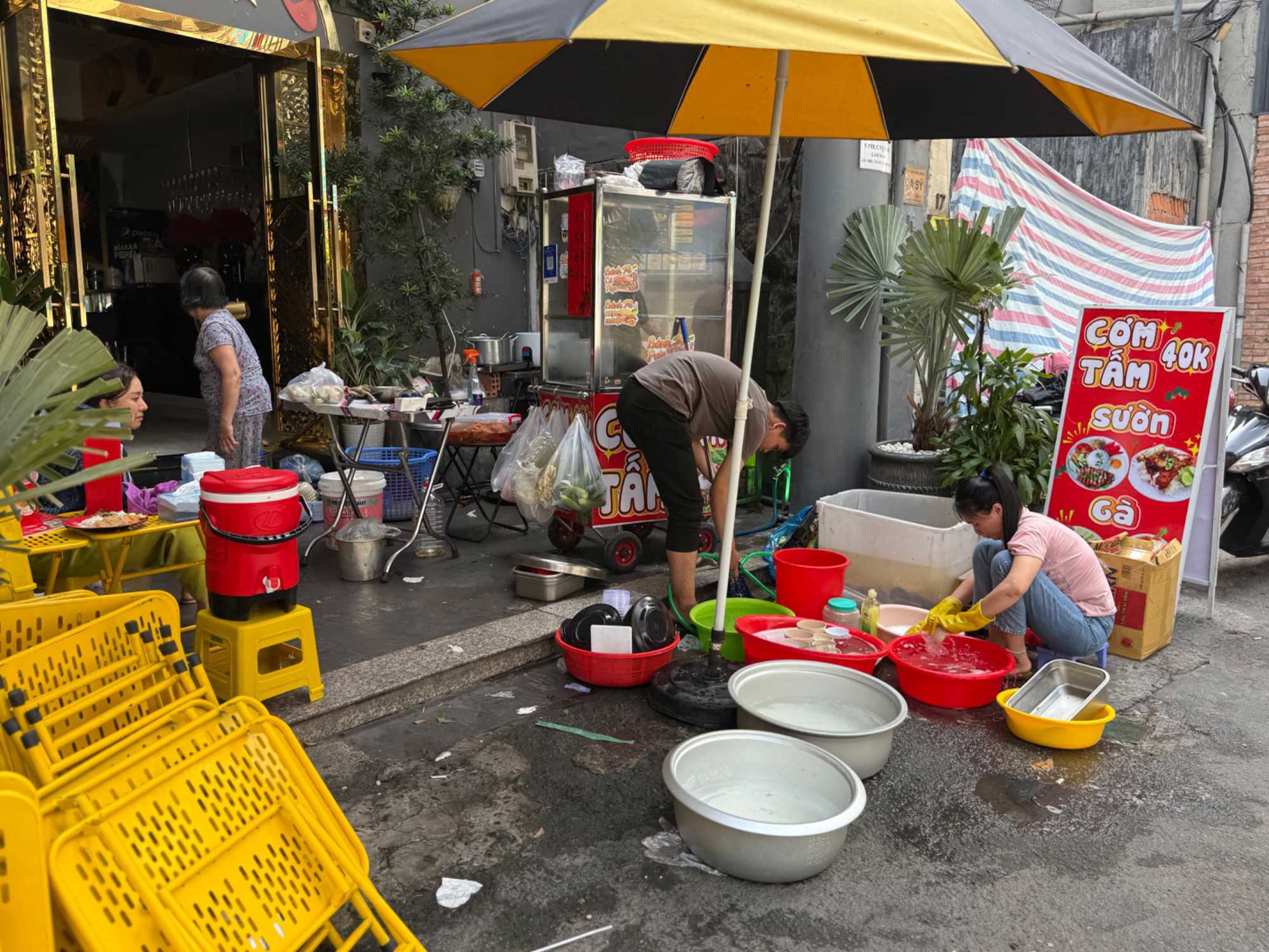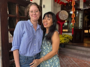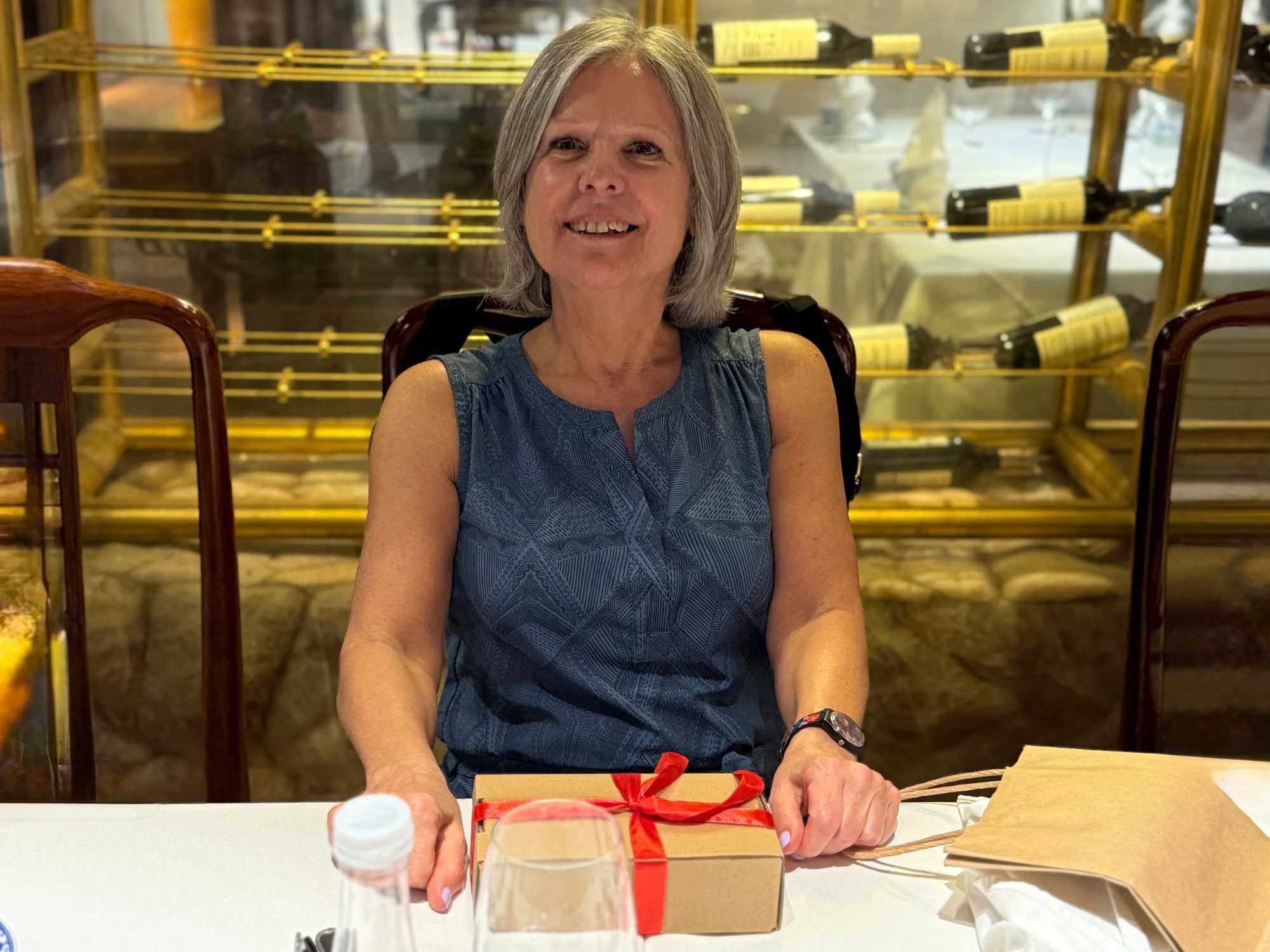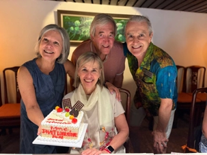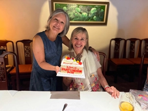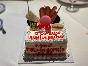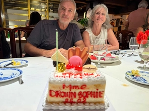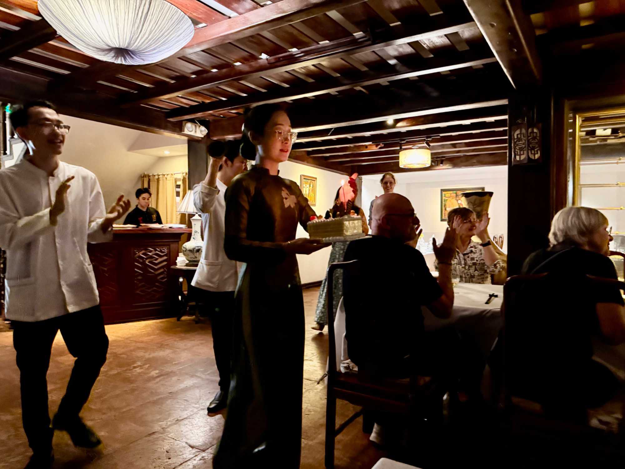 Nous soulignons l’anniversaire de Lorraine avec un gâteau surprise qui ajoute une note sucrée et joyeuse à notre repas. Puis, comme Sophie nous quitte cet après-midi pour poursuivre son périple vers le nord du Vietnam et que son anniversaire approche à grands pas (le 26), nous profitons de l’occasion pour lui offrir, à elle aussi, un gâteau et l’inviter à souffler sa bougie.