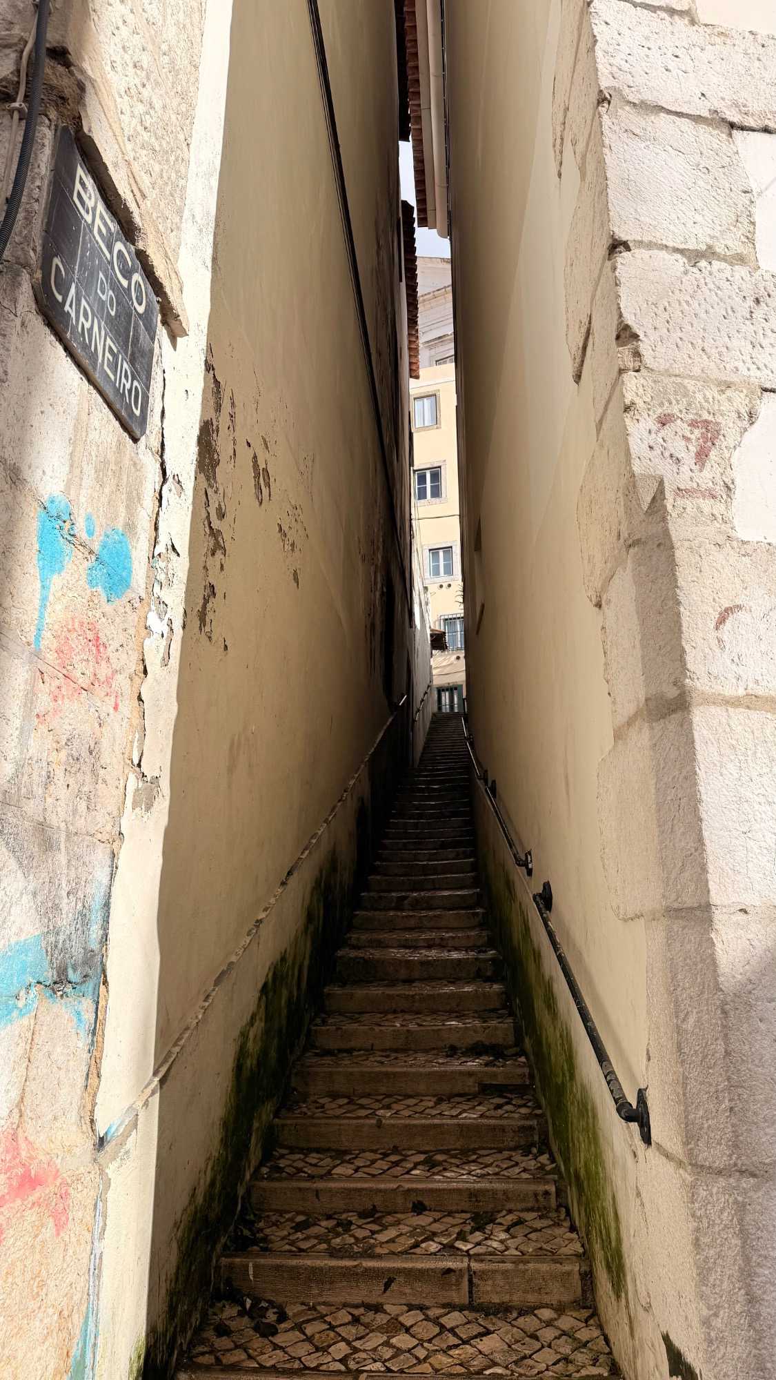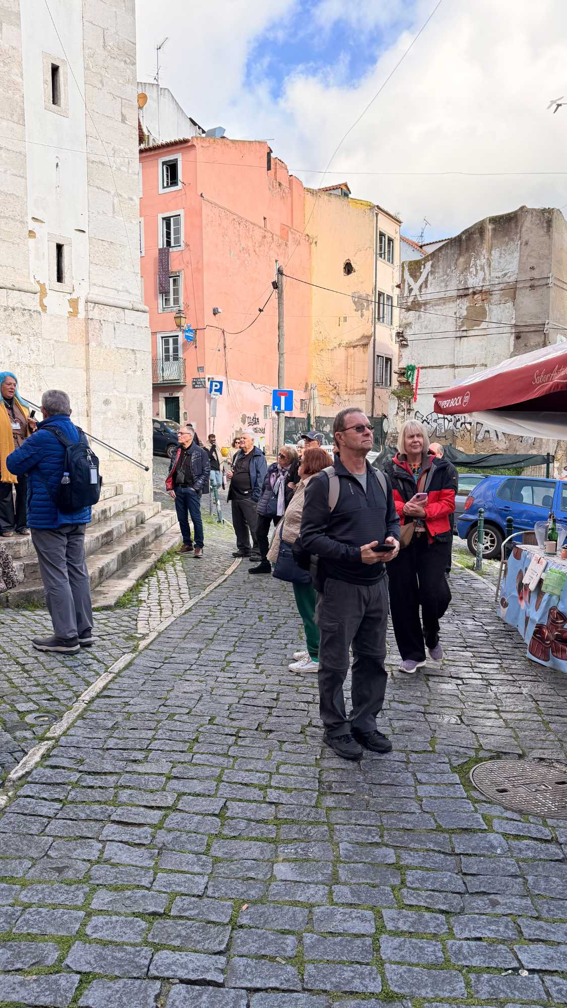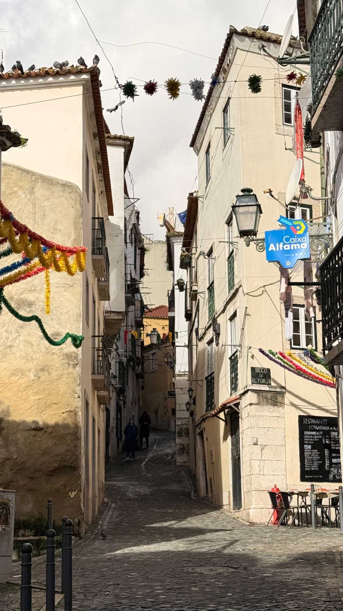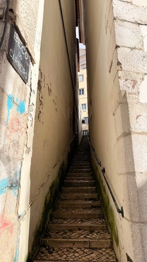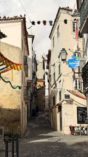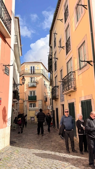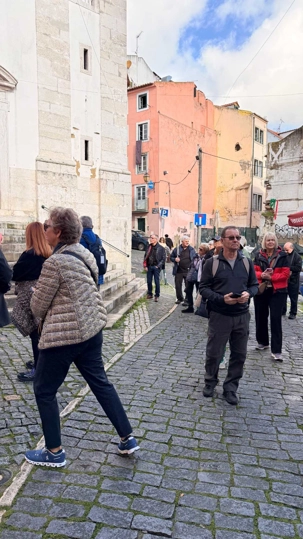 Nous nous dirigeons vers le quartier de l’Alfama, le plus ancien de la ville, miraculeusement épargné par le tremblement de terre de 1755. Ses ruelles étroites et sinueuses semblent garder en elles les secrets des Maures et des marins d’autrefois. Les façades couvertes d’azulejos colorés brillent sous les rares rayons de soleil, et l’on sent, à chaque pas, le souffle du passé populaire de Lisbonne.