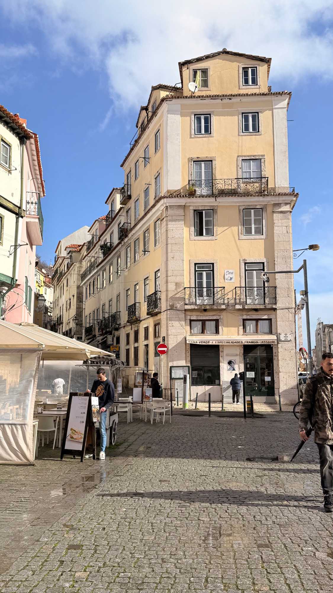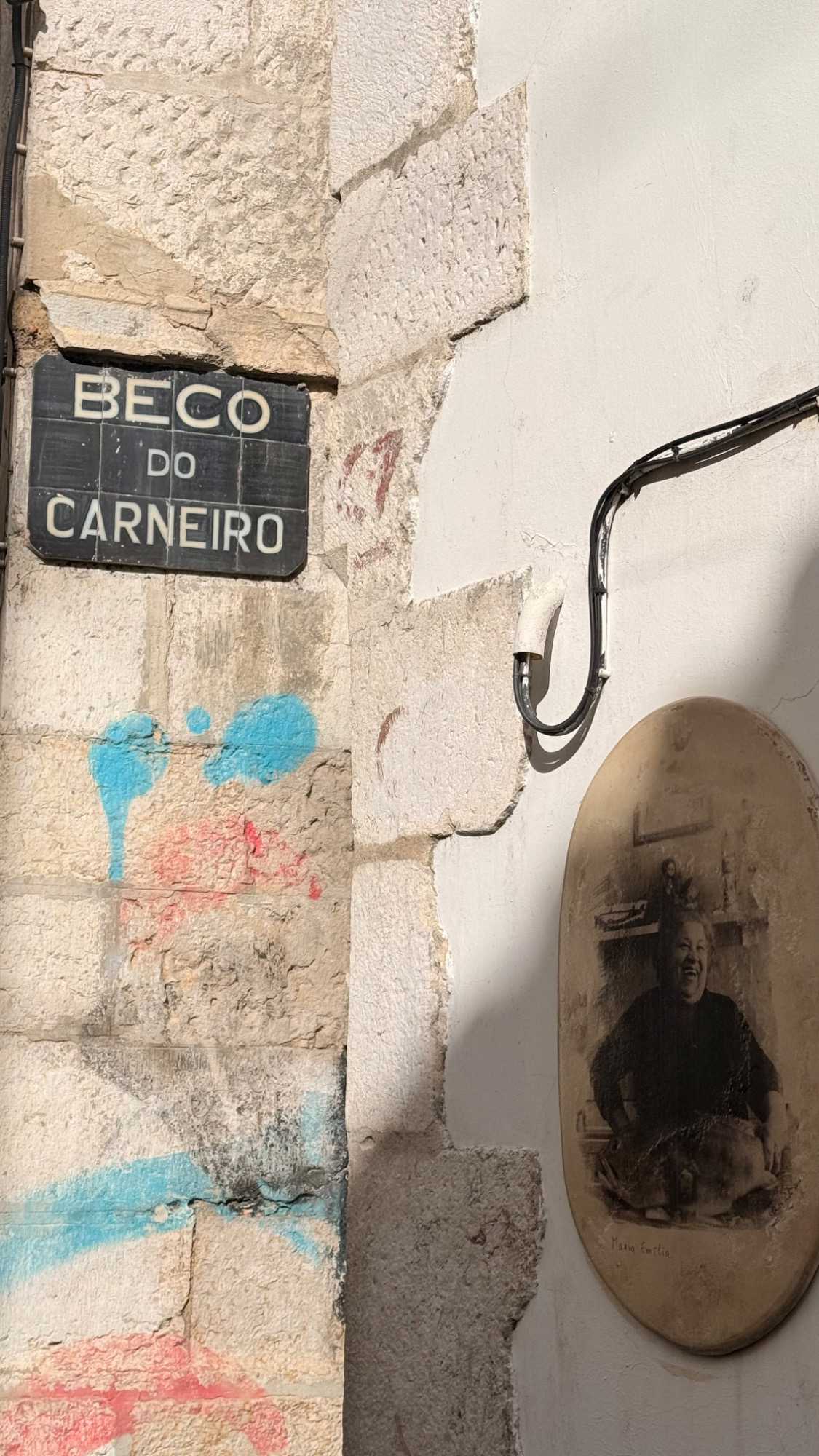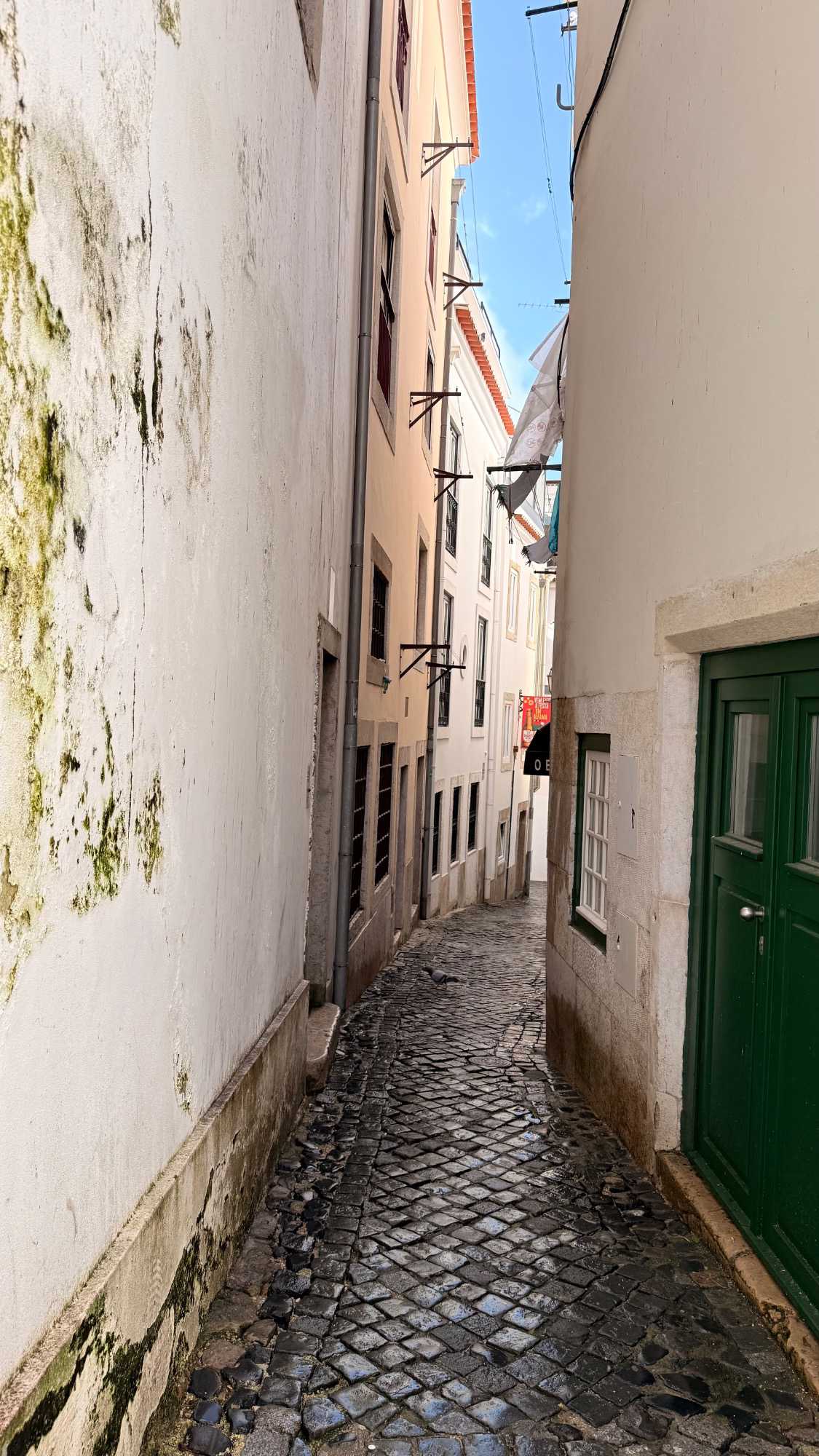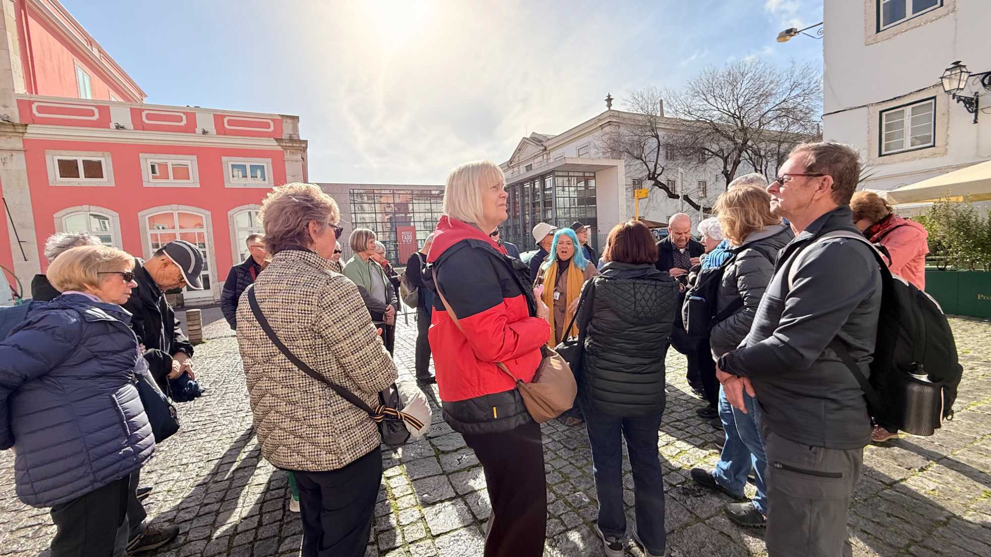 Nous nous dirigeons vers le quartier de l’Alfama, le plus ancien de la ville, miraculeusement épargné par le tremblement de terre de 1755. Ses ruelles étroites et sinueuses semblent garder en elles les secrets des Maures et des marins d’autrefois. Les façades couvertes d’azulejos colorés brillent sous les rares rayons de soleil, et l’on sent, à chaque pas, le souffle du passé populaire de Lisbonne.