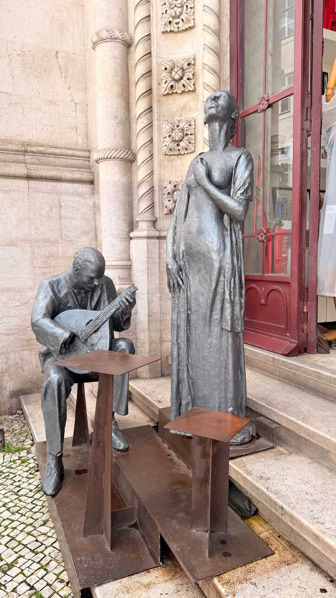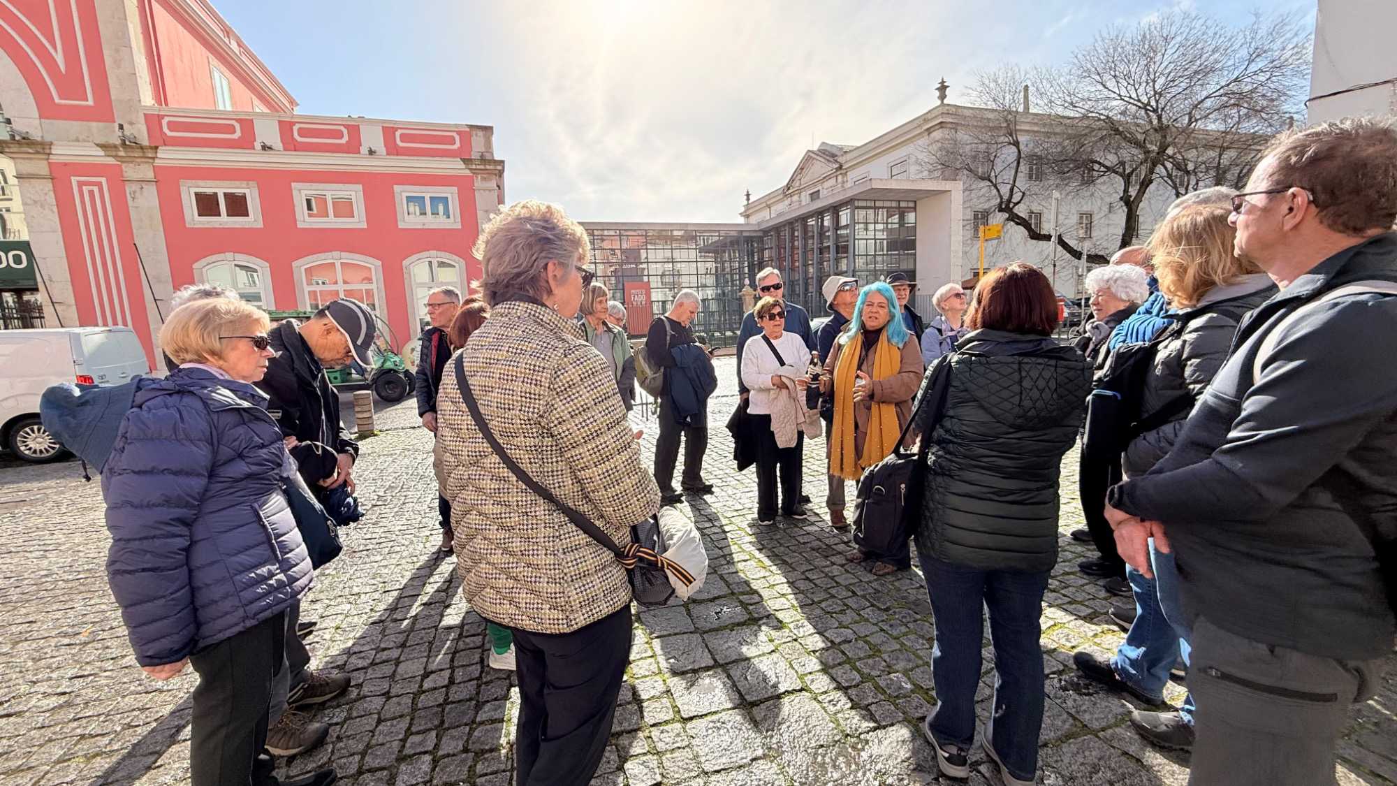 Nous passons ensuite par la Praça da Figueira, vivante et animée, avant d’admirer la statue du roi Joseph Ier, symbole de la résilience de Lisbonne après le séisme de 1755. La ville s’est relevée de ses cendres, reconstruite avec soin et foi, ses églises et monastères rayonnant encore de cette époque où religion et quotidien s’entremêlaient.