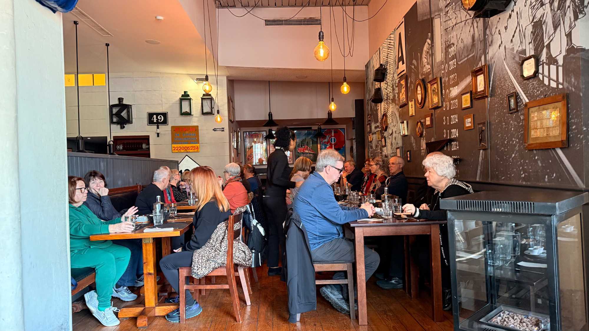Nous dînons ensuite dans un restaurant typique, aux murs ornés d’azulejos racontant l’histoire du Portugal. Entre les saveurs locales et les rires partagés, nous échangeons nos impressions et nos émotions du jour, laissant les images et les souvenirs s’imprimer doucement dans nos esprits.