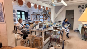 Nous avons commencé notre journée par la visite de la poterie Olaria Porches Pottery, un joyau artisanal niché au cœur de l’Algarve. Fondée dans les années 1960 par l’artiste irlandaise Patrick Swift et la céramiste portugaise Lima de Freitas, cette poterie familiale est née du désir de préserver les techniques traditionnelles de la céramique algarvienne. Chaque pièce, façonnée et peinte à la main, raconte une histoire de passion et de patience, un hommage vivant à la culture locale. Wow… que de beauté et d’authenticité !