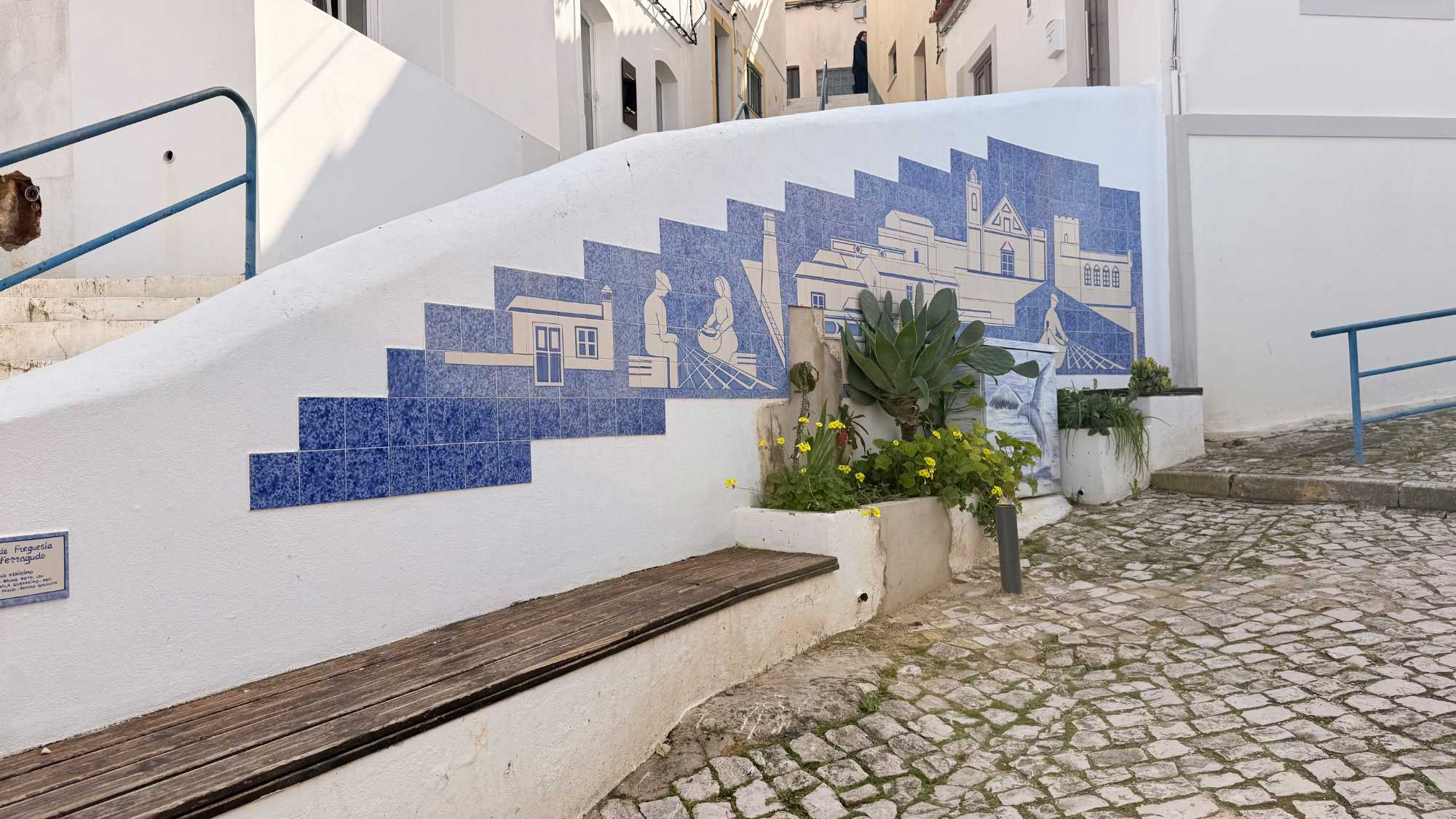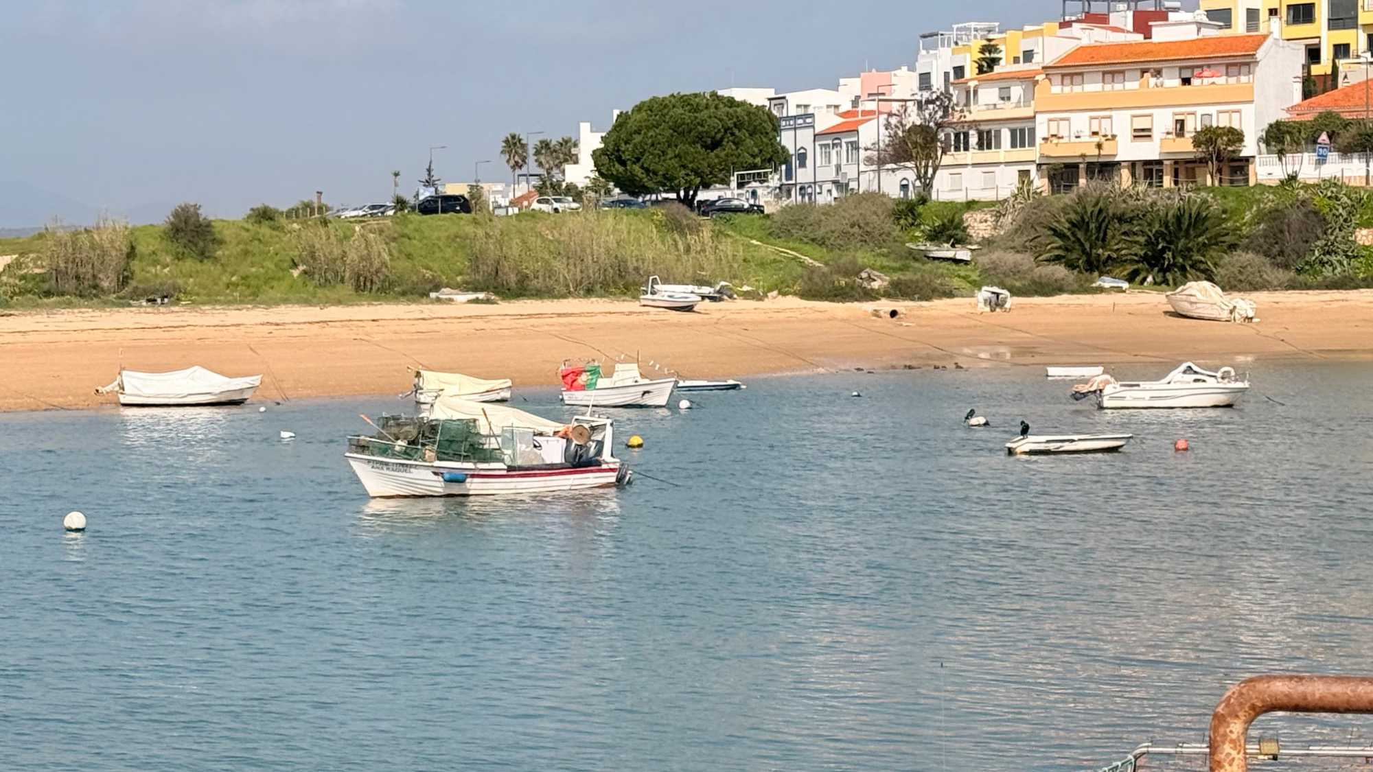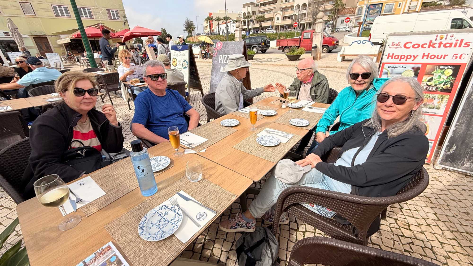 À travers les campagnes de l’Algarve, nous avons ensuite roulé parmi les collines verdoyantes, les vergers d’orangers et d’amandiers, jusqu’à Ferragudo. Petit village à l’embouchure de la rivière Arade, Ferragudo porte les traces d’un riche passé maritime : la pêche, les fortifications contre les pirates, et le fort de São João do Arade, toujours fier à l’entrée du port. Ses ruelles pavées, ses barques colorées et son atmosphère paisible nous ont enveloppés d’un charme authentique. C’est ici que nous avons partagé un dîner délicieux, fait de poissons frais et de saveurs locales, dans la douceur du soir et sous la brise marine, ponctué de rires et de conversations chaleureuses.