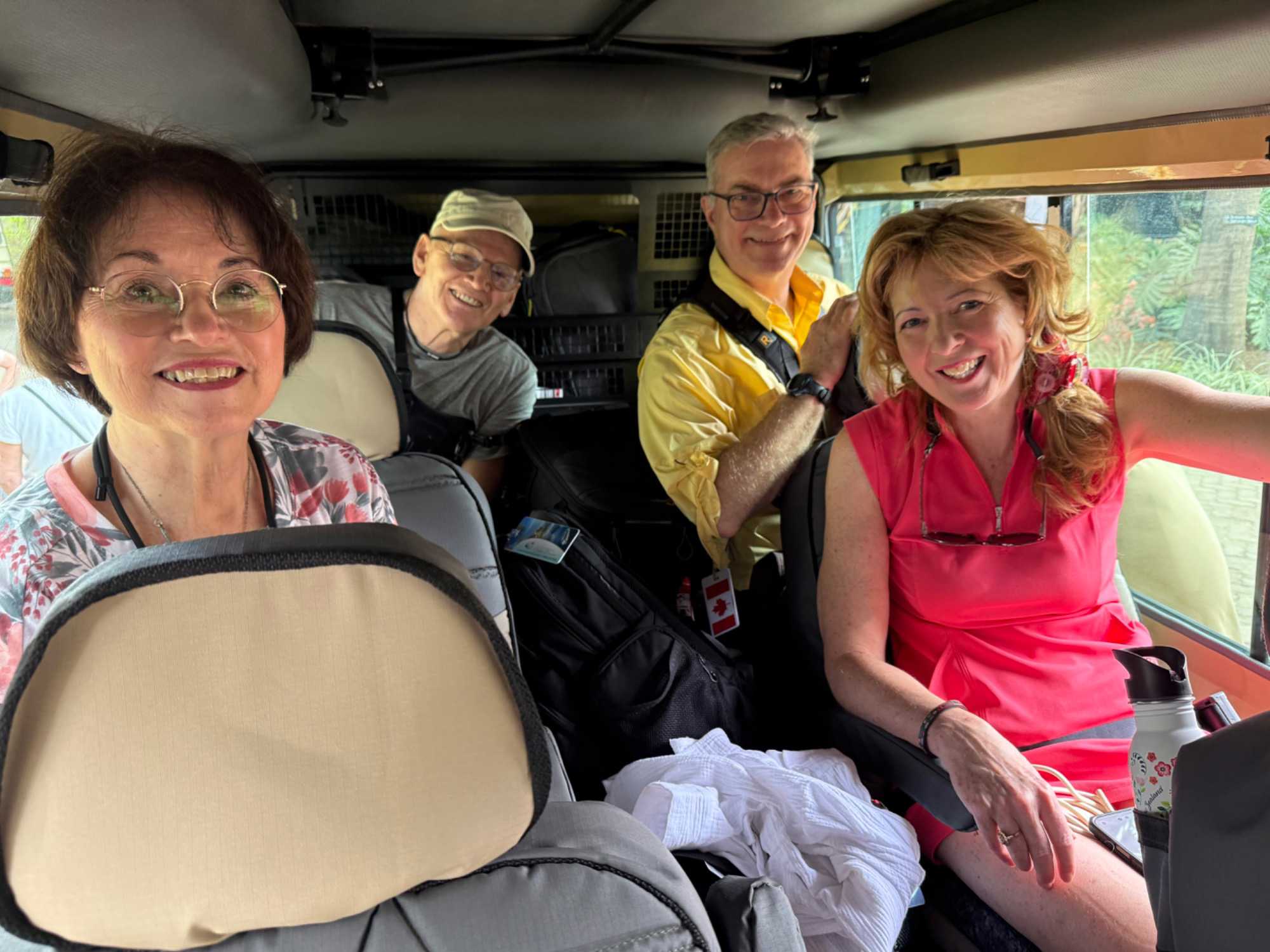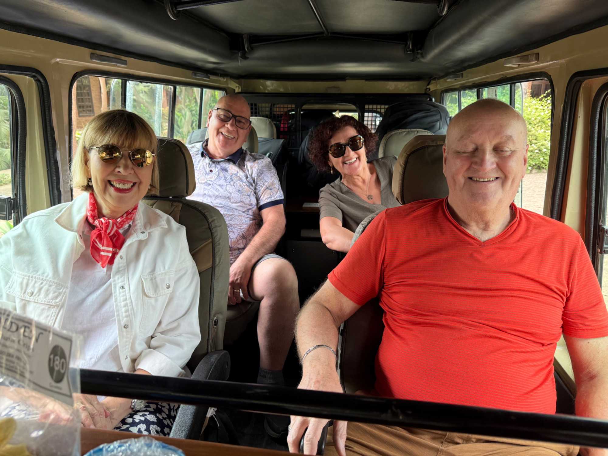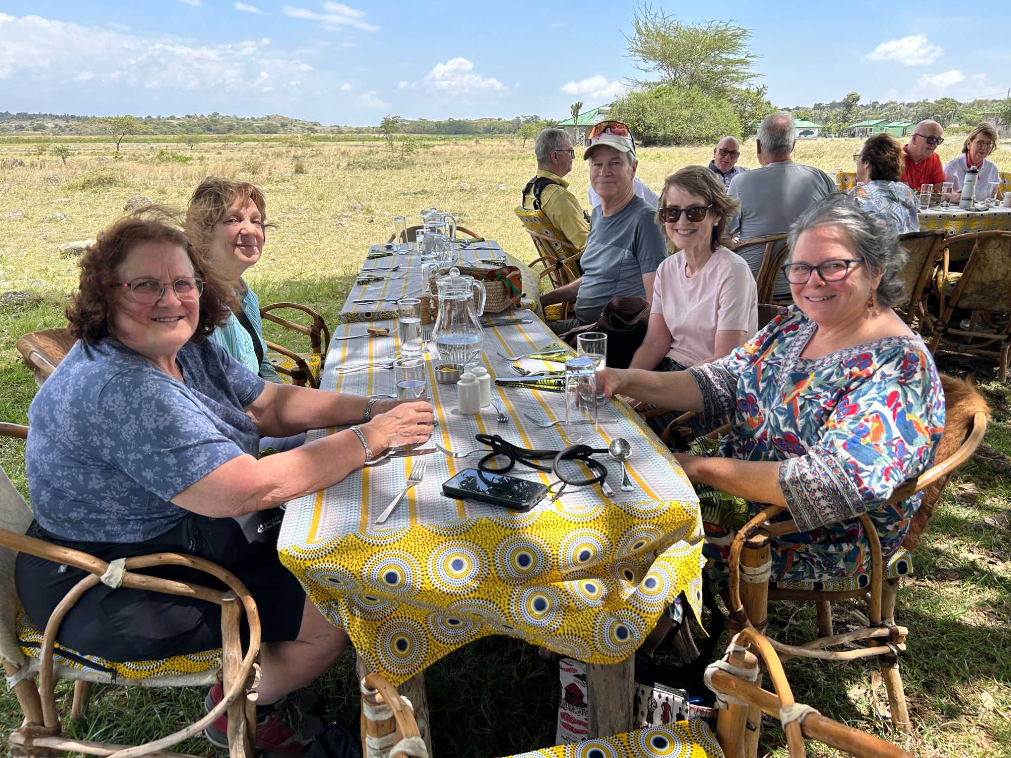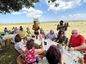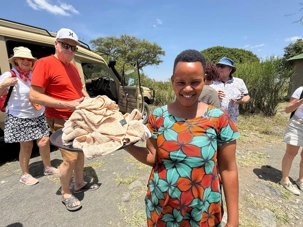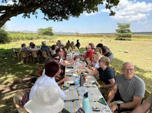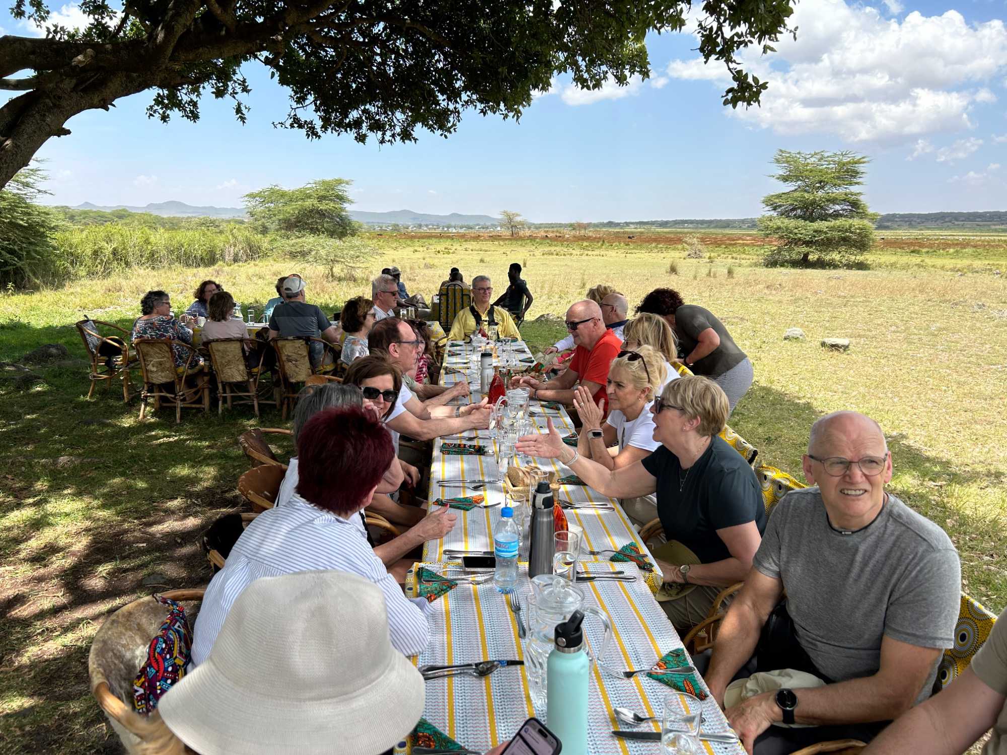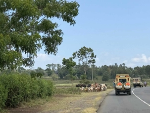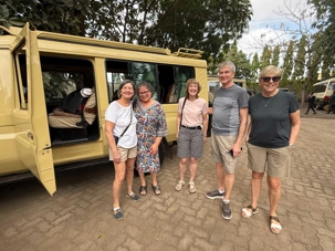 À 8 h 30, nous faisons connaissance avec nos guides-chauffeurs, ceux qui nous accompagneront tout au long du périple à bord de cinq Jeeps. Nous prenons le temps d’échanger, d’écouter, et surtout de nous projeter. Mandela, chef de l’équipe, nous présente avec passion les parcs nationaux que nous visiterons, les régions traversées et le plan de route pour les deux semaines à venir. Ce moment d’échange est précieux : on se sent déjà en confiance, prêts à partir pour cette grande aventure africaine.