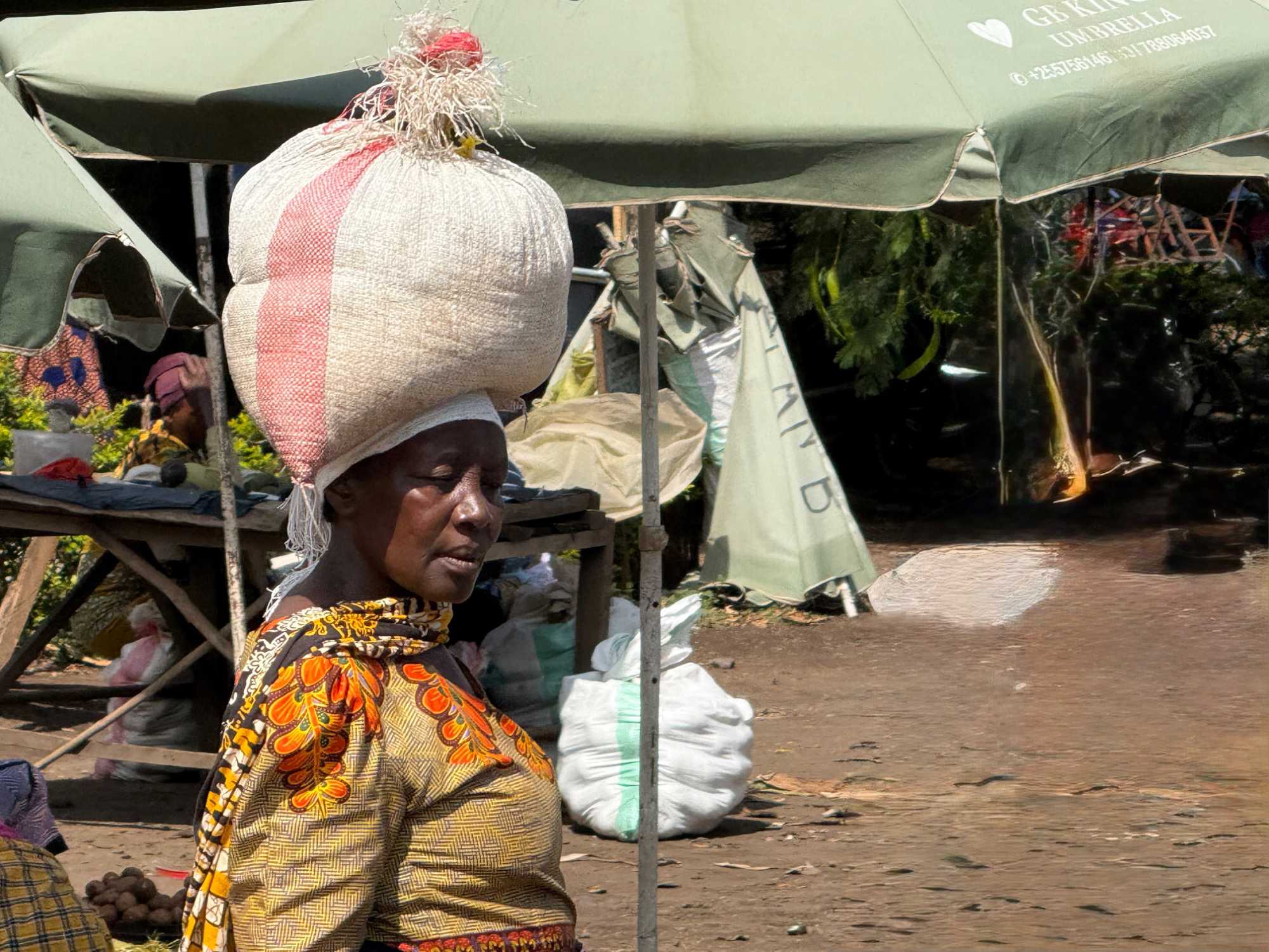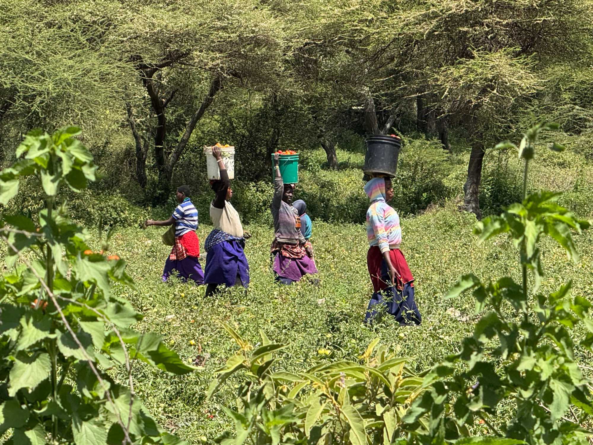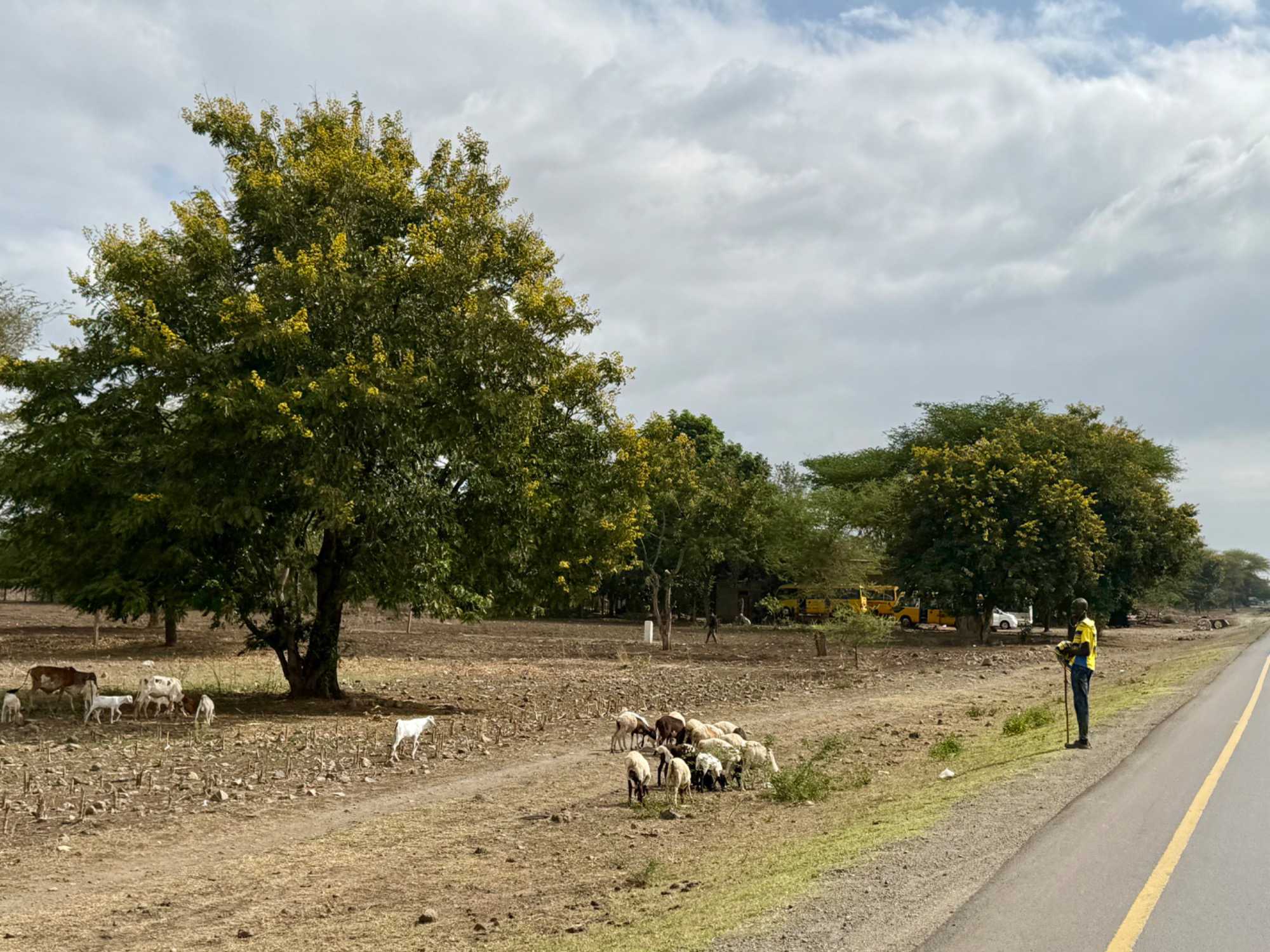 En quittant peu à peu les zones plus habitées, nous entrons sur les terres massaï. Sur le bord de la route, nous croisons des Massaïs surveillant leurs troupeaux de chèvres, de vaches et de bœufs. Cette relation étroite avec le bétail fait partie intégrante de leur culture et se transmet de génération en génération. Nous observons aussi des femmes transportant sur leur tête de lourdes charges, parfois des bols remplis de tomates fraîchement récoltées. Une scène qui témoigne d’une grande force, d’une élégance naturelle et d’un mode de vie profondément enraciné dans la tradition.