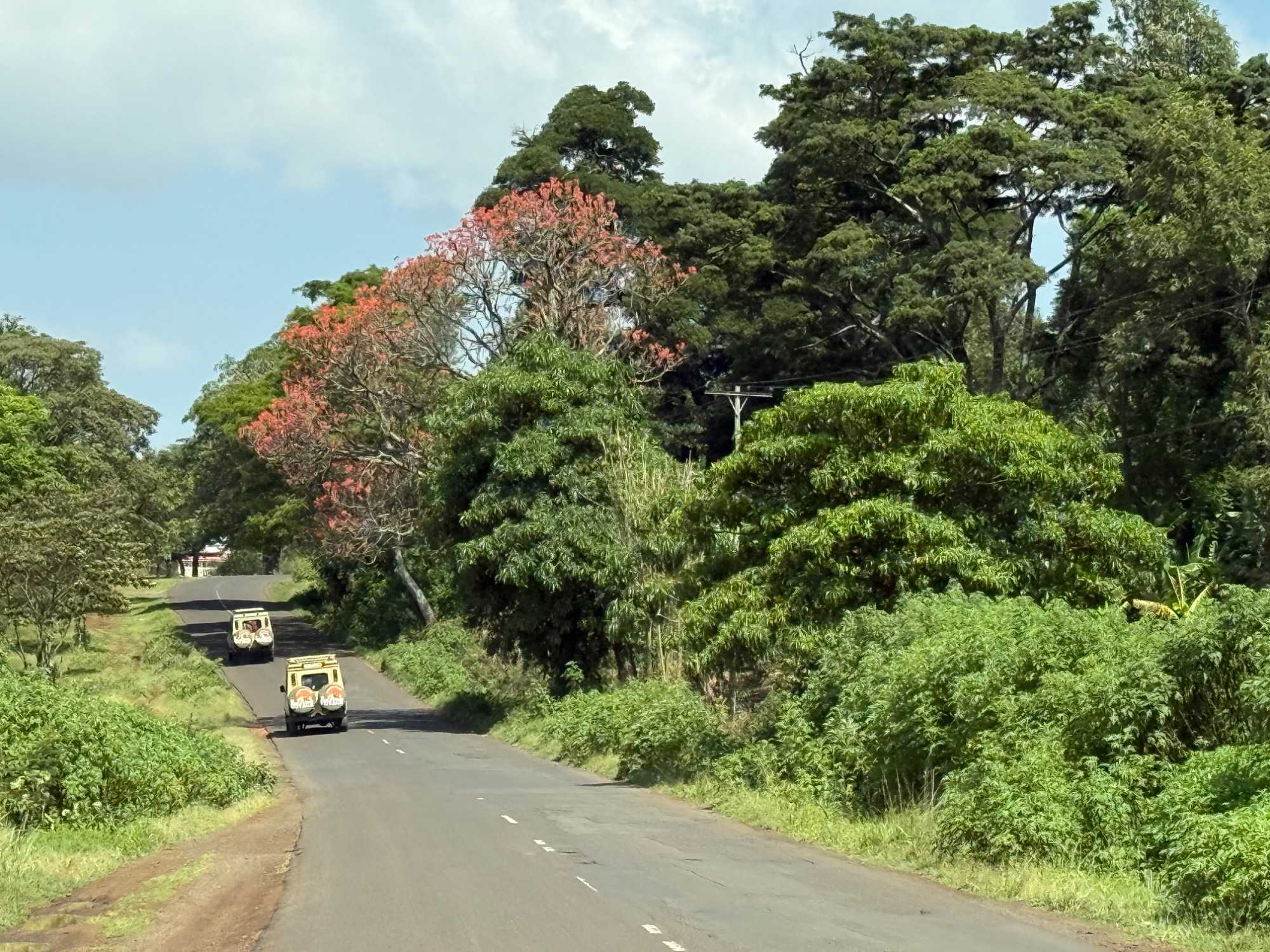 En chemin, nous roulons à une vitesse modérée, ce qui nous permet d’admirer les paysages et d’observer le quotidien des villages. Les marchés colorés attirent le regard, les étals débordent de produits locaux, et les Tanzaniens et Tanzaniennes s’affairent dans une ambiance vibrante. Je profite de chaque instant pour prendre des photos, tant les scènes sont belles et authentiques 📸.