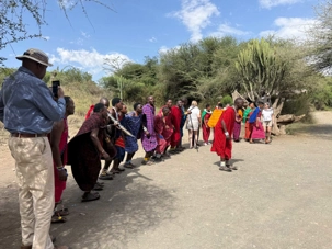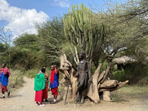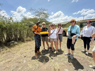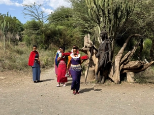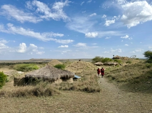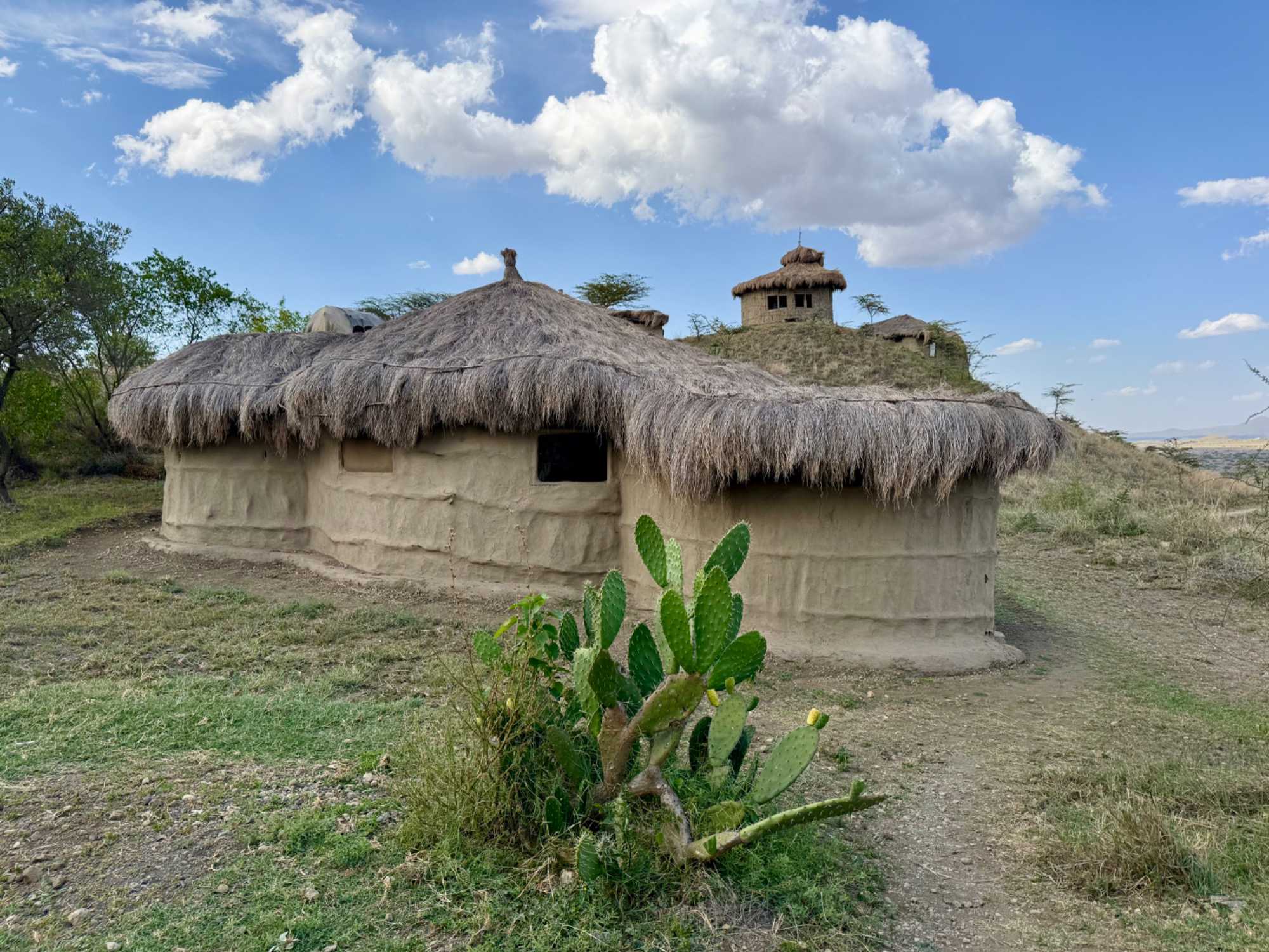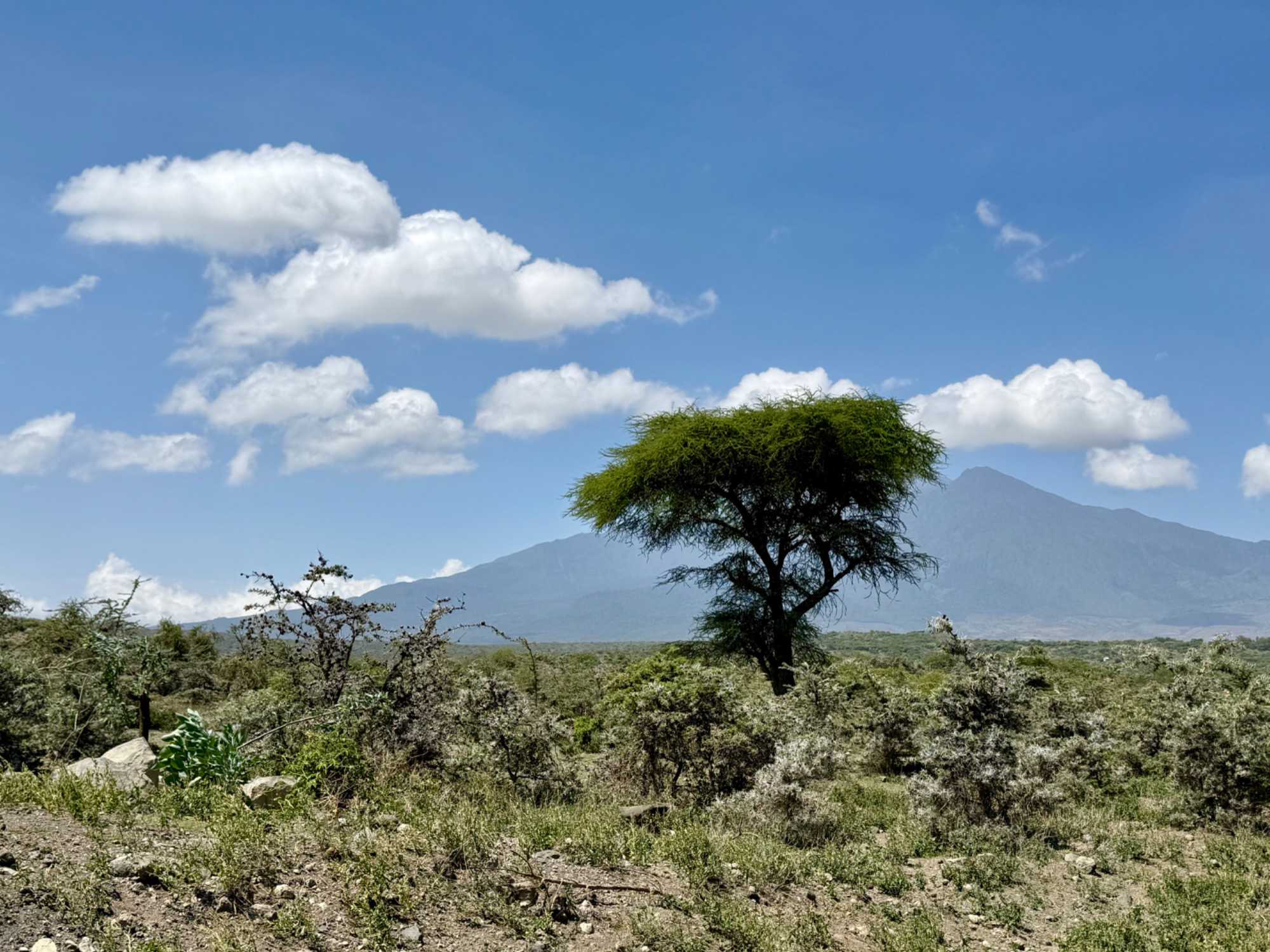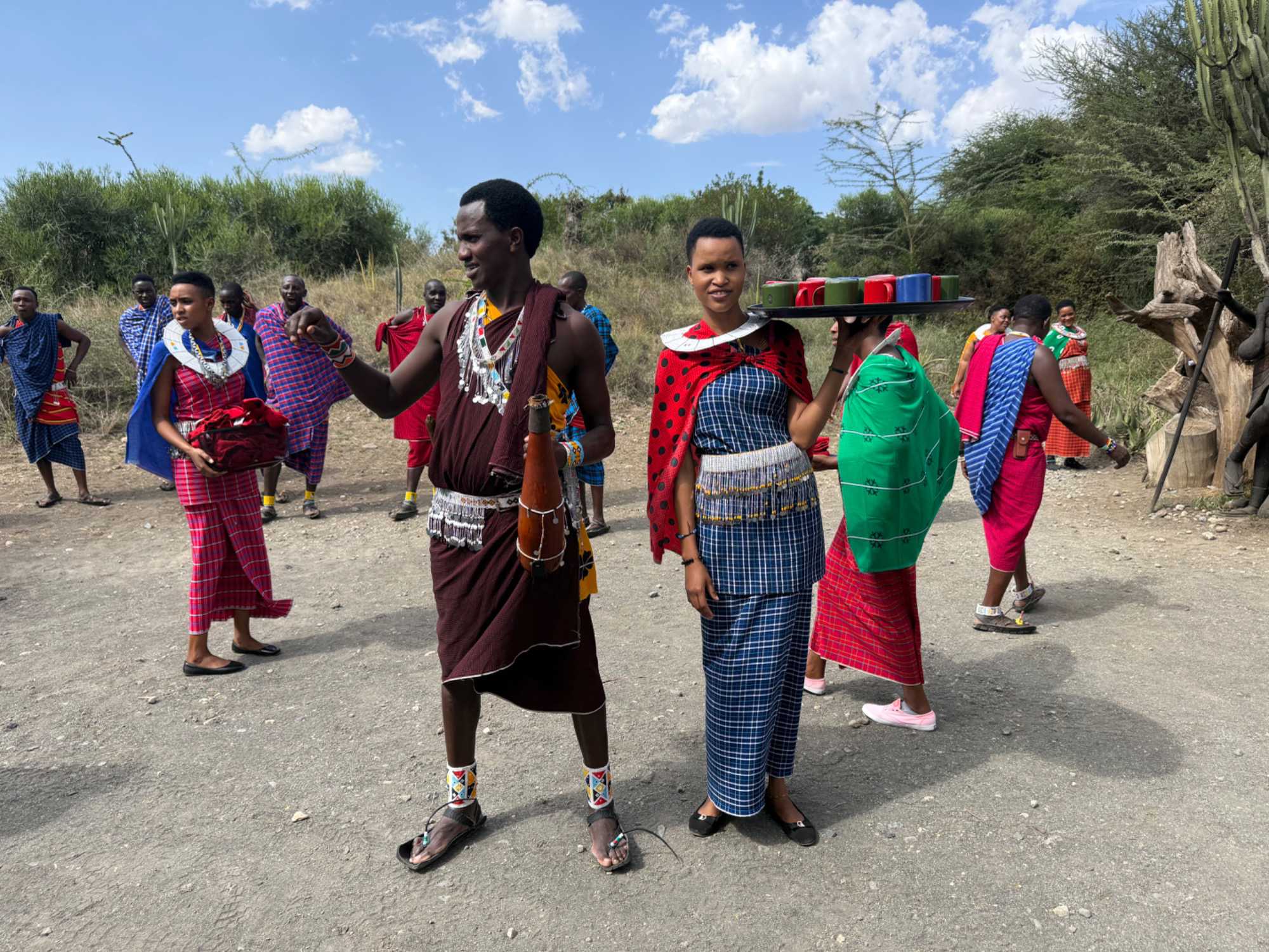 Nous quittons ensuite le Planet Lodge, notre hôtel de la veille, en direction des terres massaï. La route nous mène vers une région magnifique, offrant des points de vue sur le mont Meru et, par temps clair, sur le majestueux Kilimandjaro. Le trajet dure environ deux heures et devient rapidement une véritable immersion dans la vie tanzanienne.