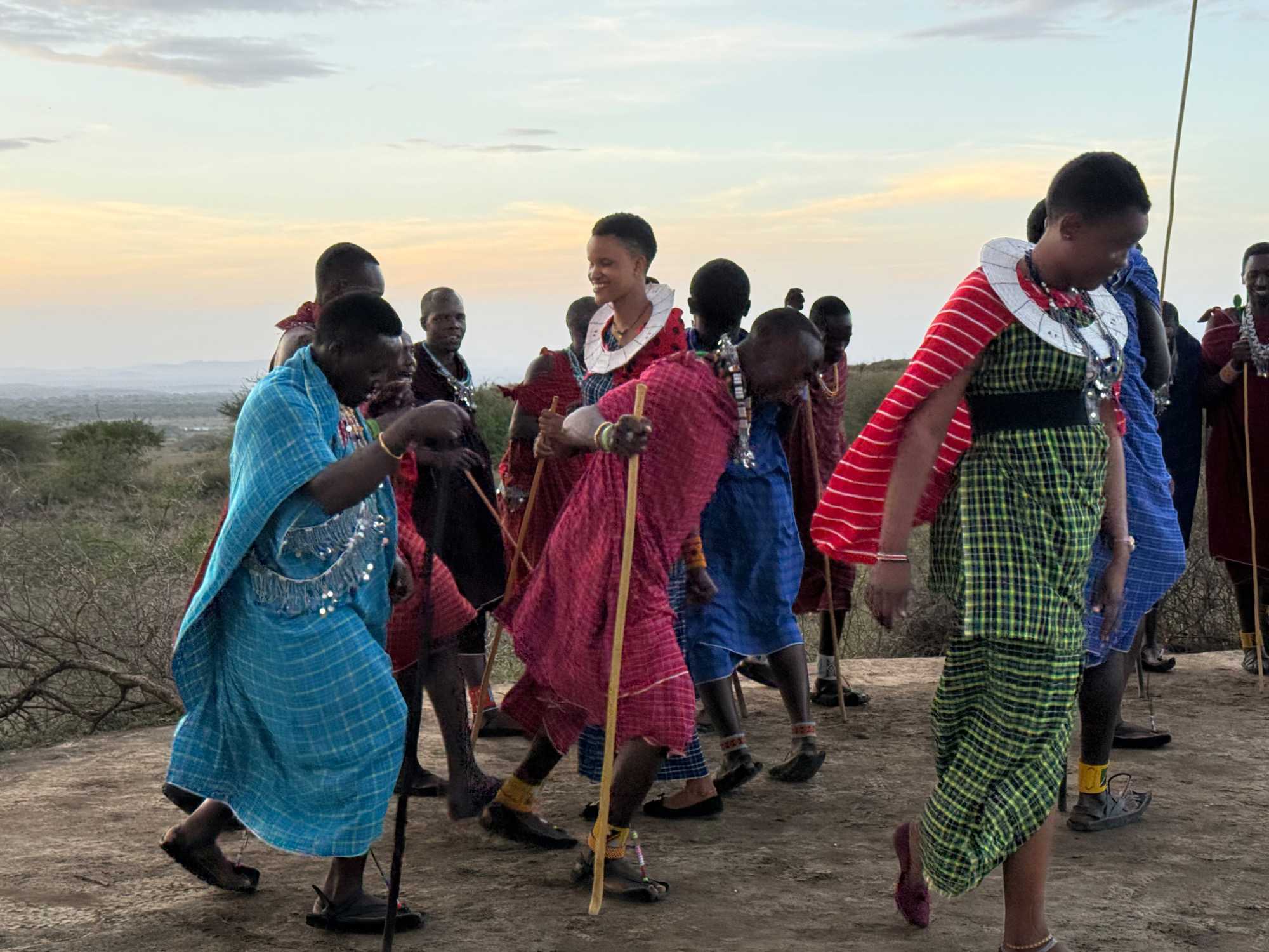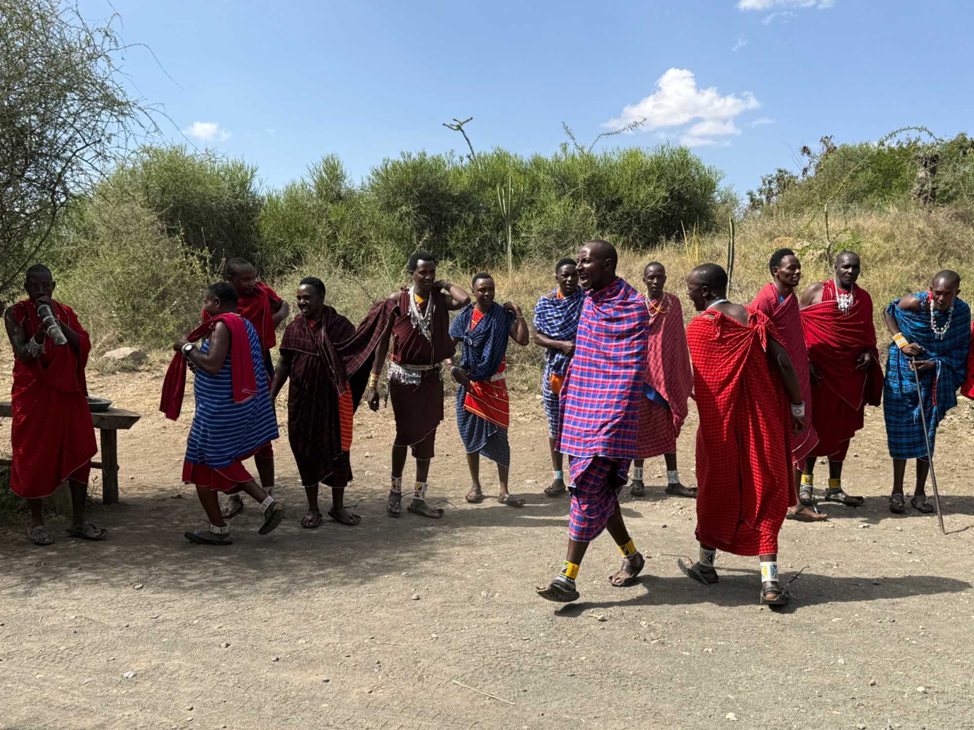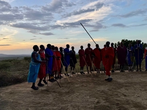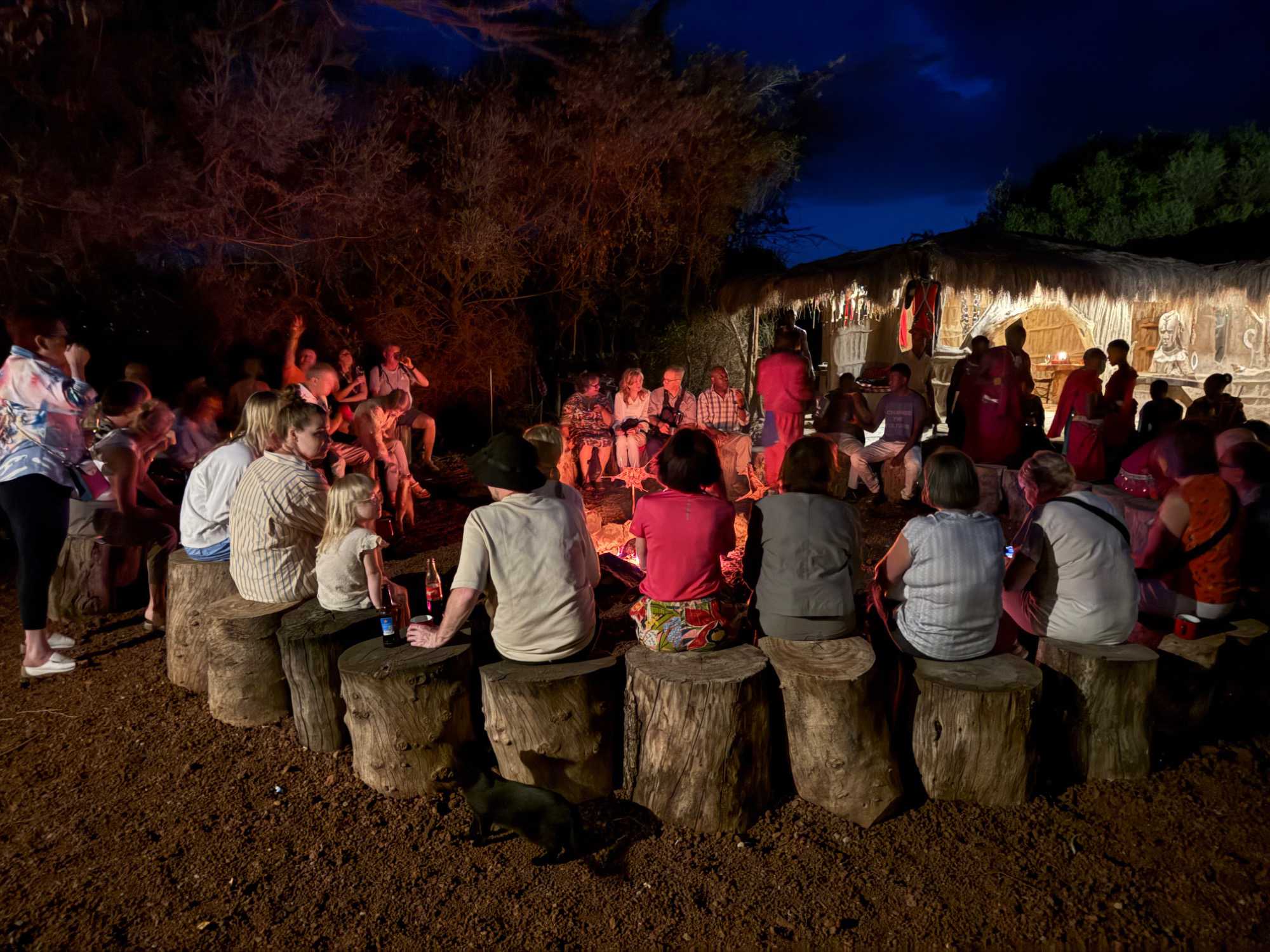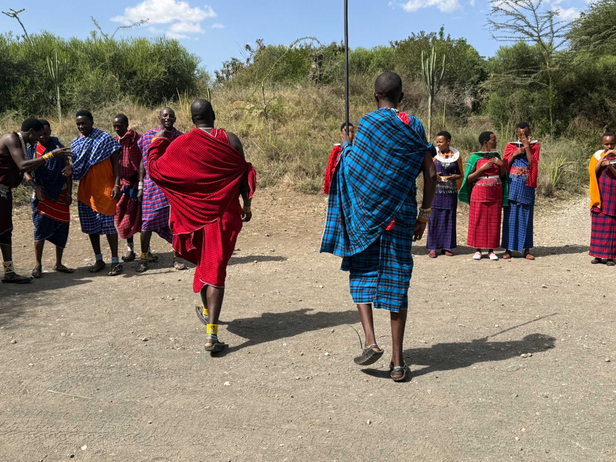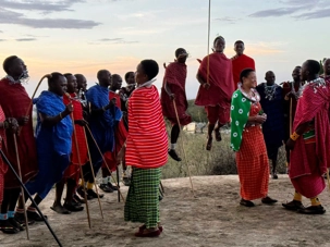 En fin de journée, les festivités commencent au coucher du soleil 🌅. Les danseurs massaï nous offrent une performance impressionnante, ponctuée de leurs fameux sauts spectaculaires, symboles de force et de fierté. J’ai la chance de capturer en photo ces instants où ils semblent littéralement s’élancer vers le ciel. Nous dansons avec eux, partageons des rires, puis nous nous retrouvons autour du feu pour goûter à certaines spécialités locales.