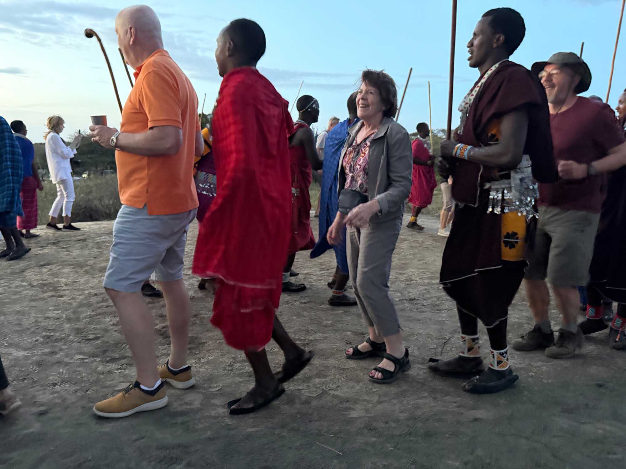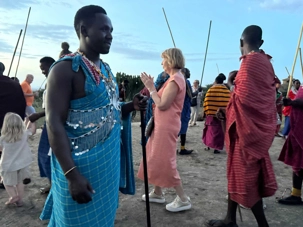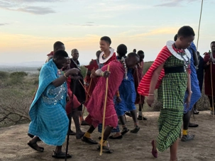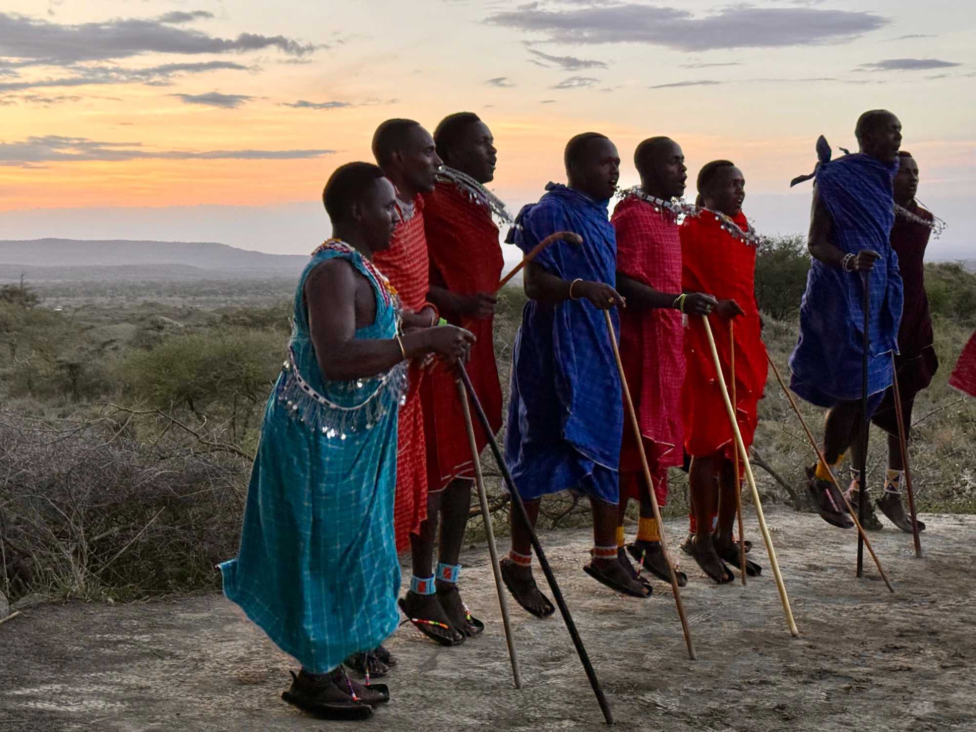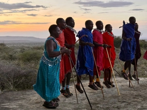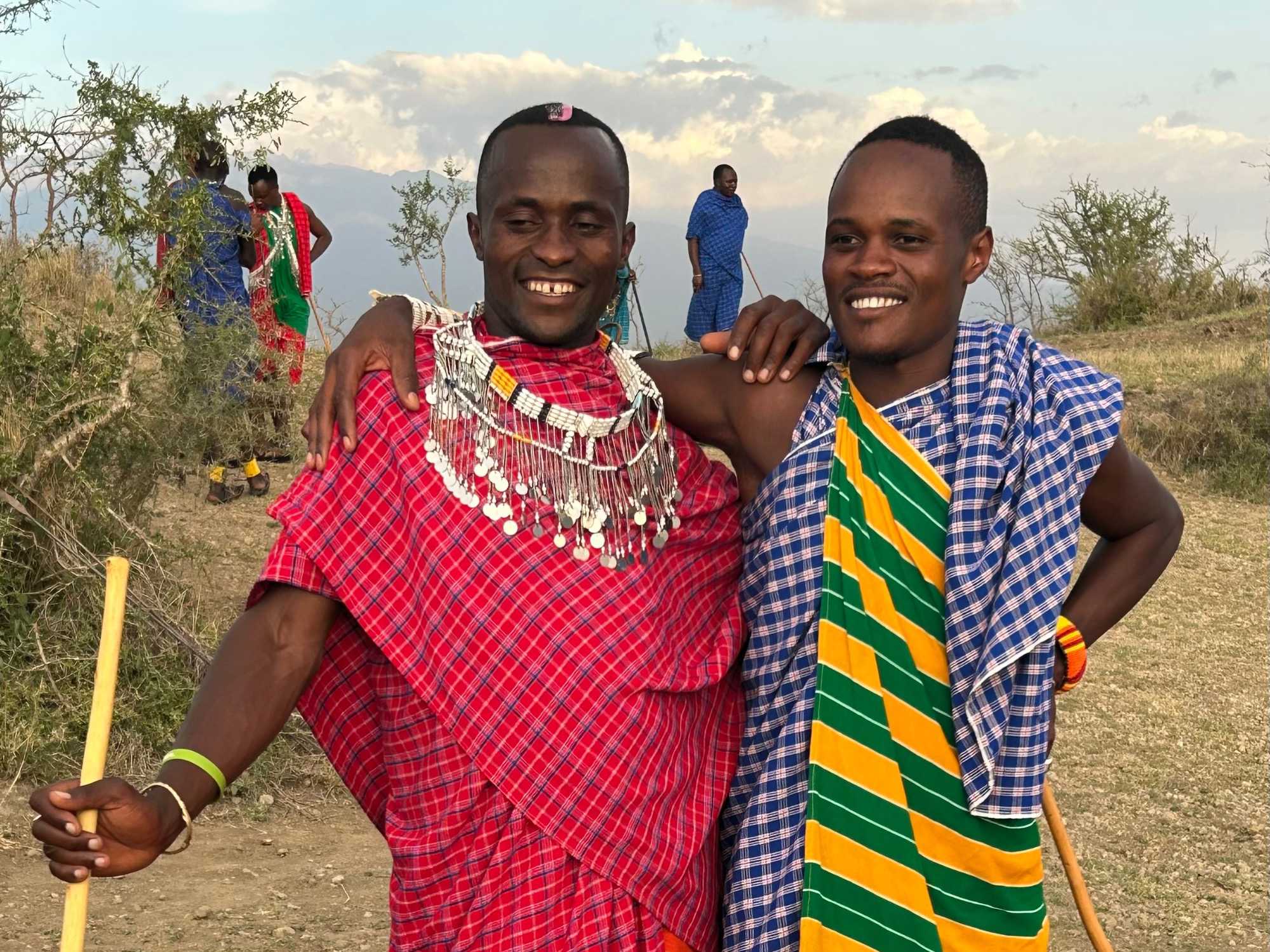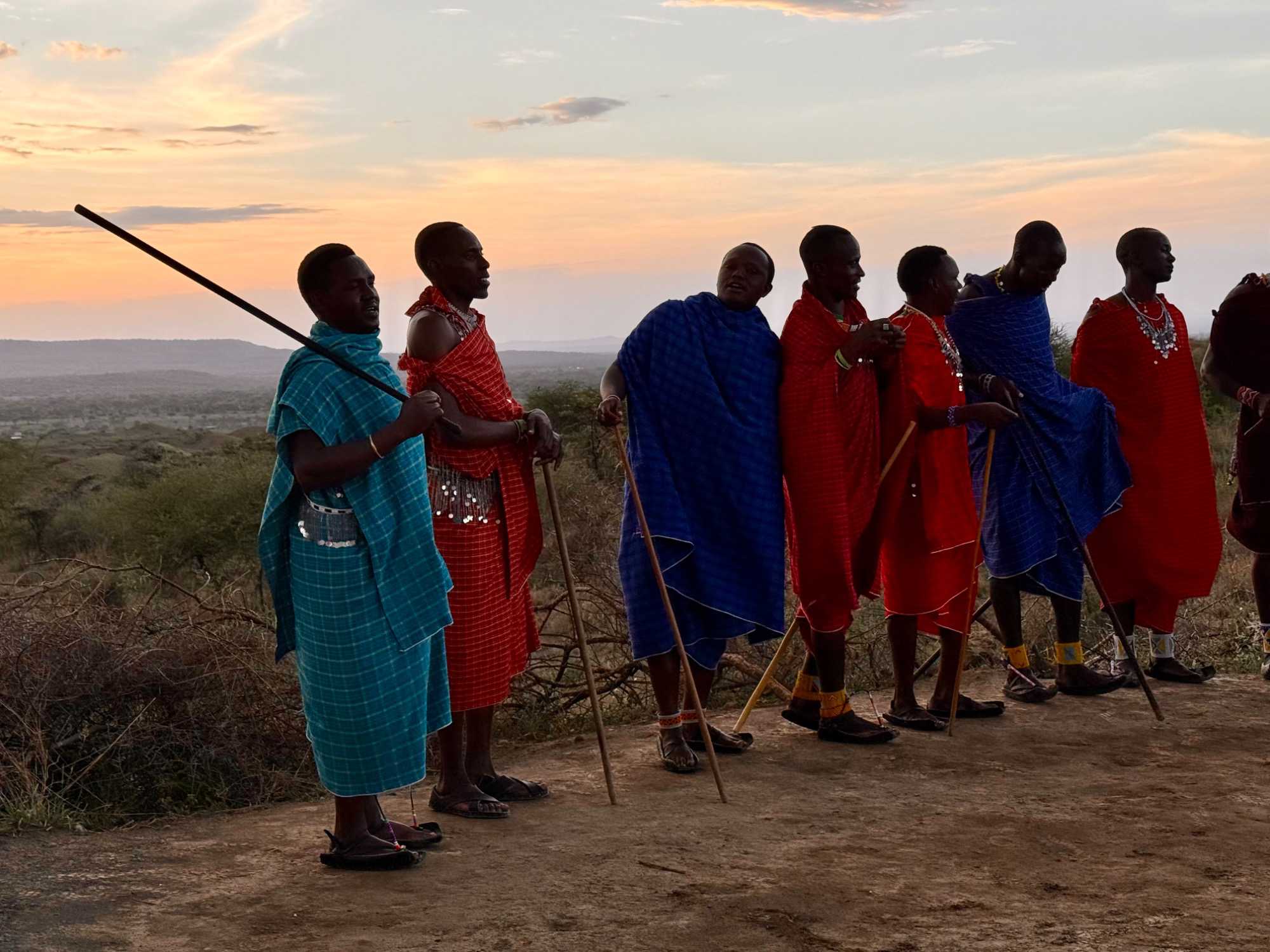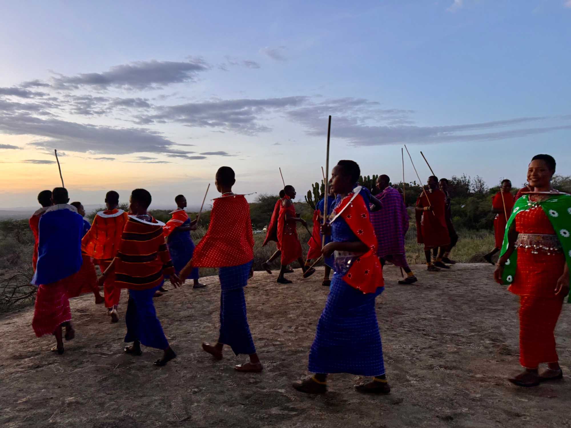 En fin de journée, les festivités commencent au coucher du soleil 🌅. Les danseurs massaï nous offrent une performance impressionnante, ponctuée de leurs fameux sauts spectaculaires, symboles de force et de fierté. J’ai la chance de capturer en photo ces instants où ils semblent littéralement s’élancer vers le ciel. Nous dansons avec eux, partageons des rires, puis nous nous retrouvons autour du feu pour goûter à certaines spécialités locales.