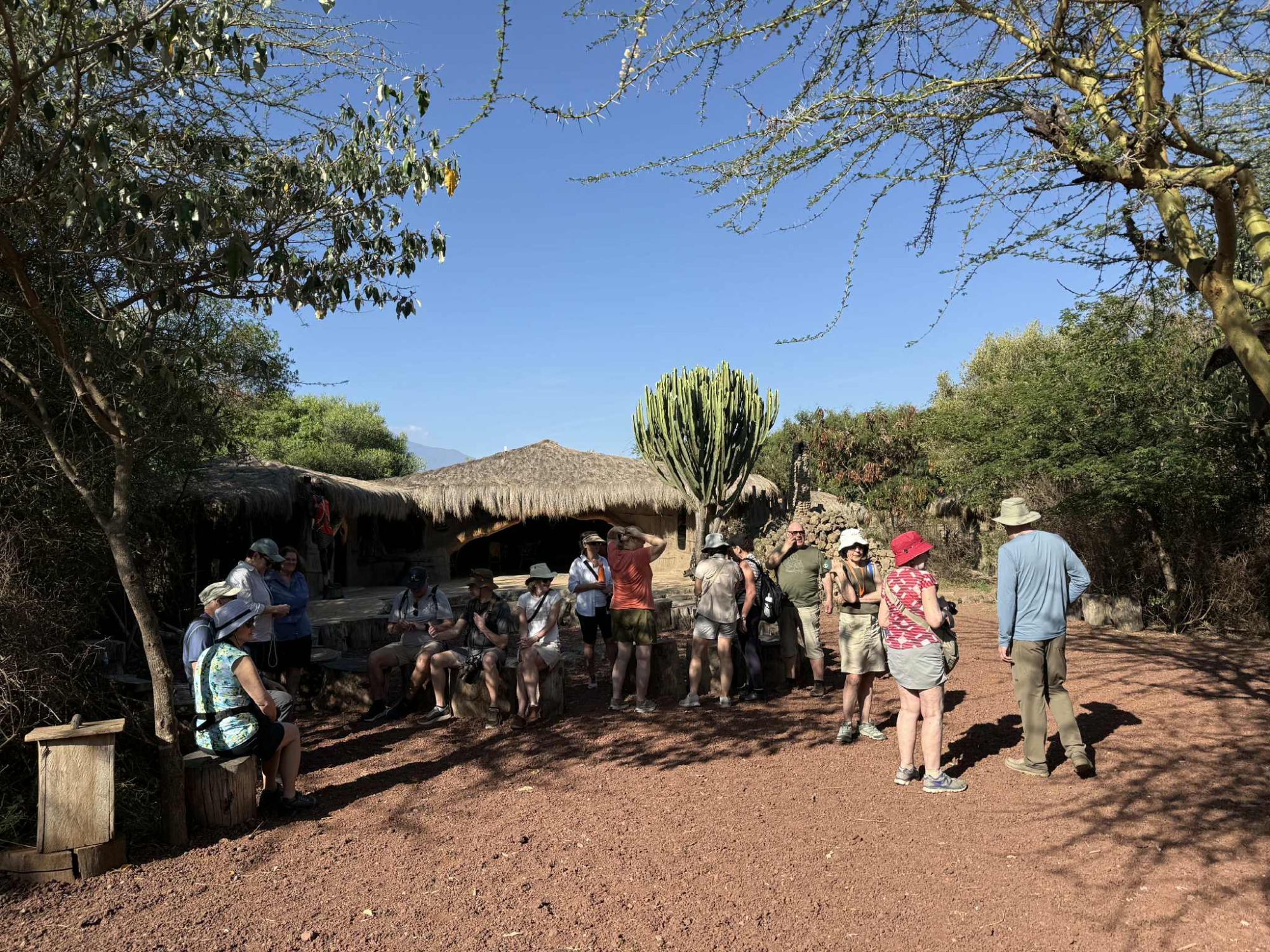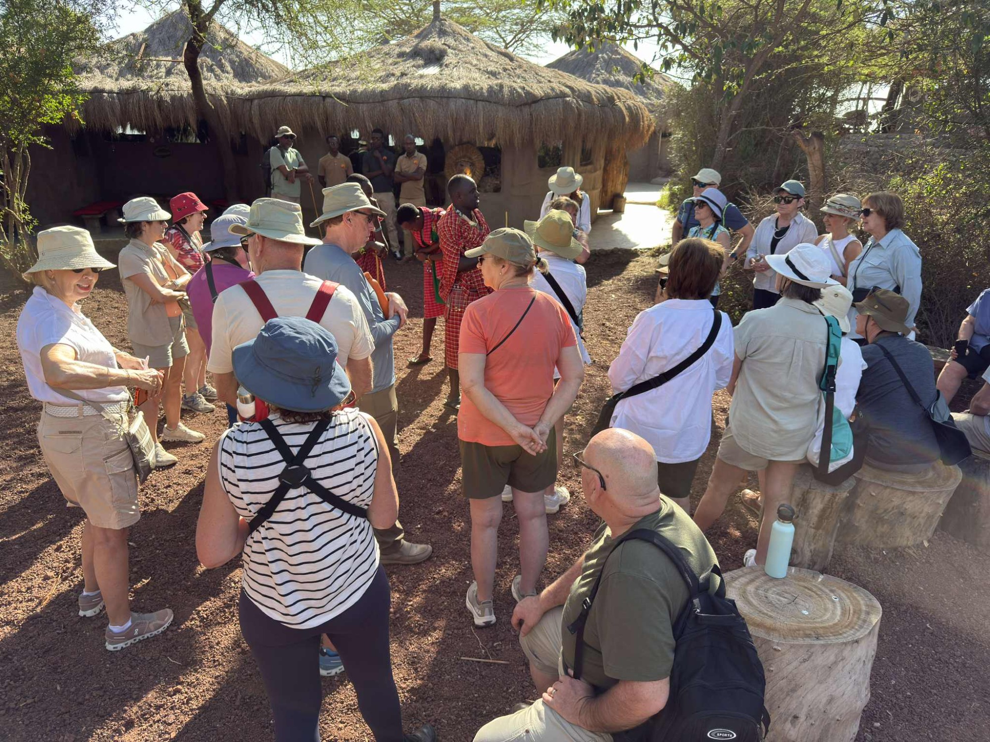 À 9 h, nous partons pour une marche en nature d’environ deux heures, accompagnés de deux Massaïs spécialistes de leur environnement. Cette randonnée est une véritable immersion. Ils nous parlent des plantes médicinales, des remèdes naturels, de leur façon de se soigner, de leur lien profond avec la terre. Leur savoir est impressionnant, transmis oralement depuis des générations. Nos guides assurent la traduction, permettant un échange riche et respectueux. C’est un moment de connexion profonde avec la nature et avec la culture massaï 🌿.