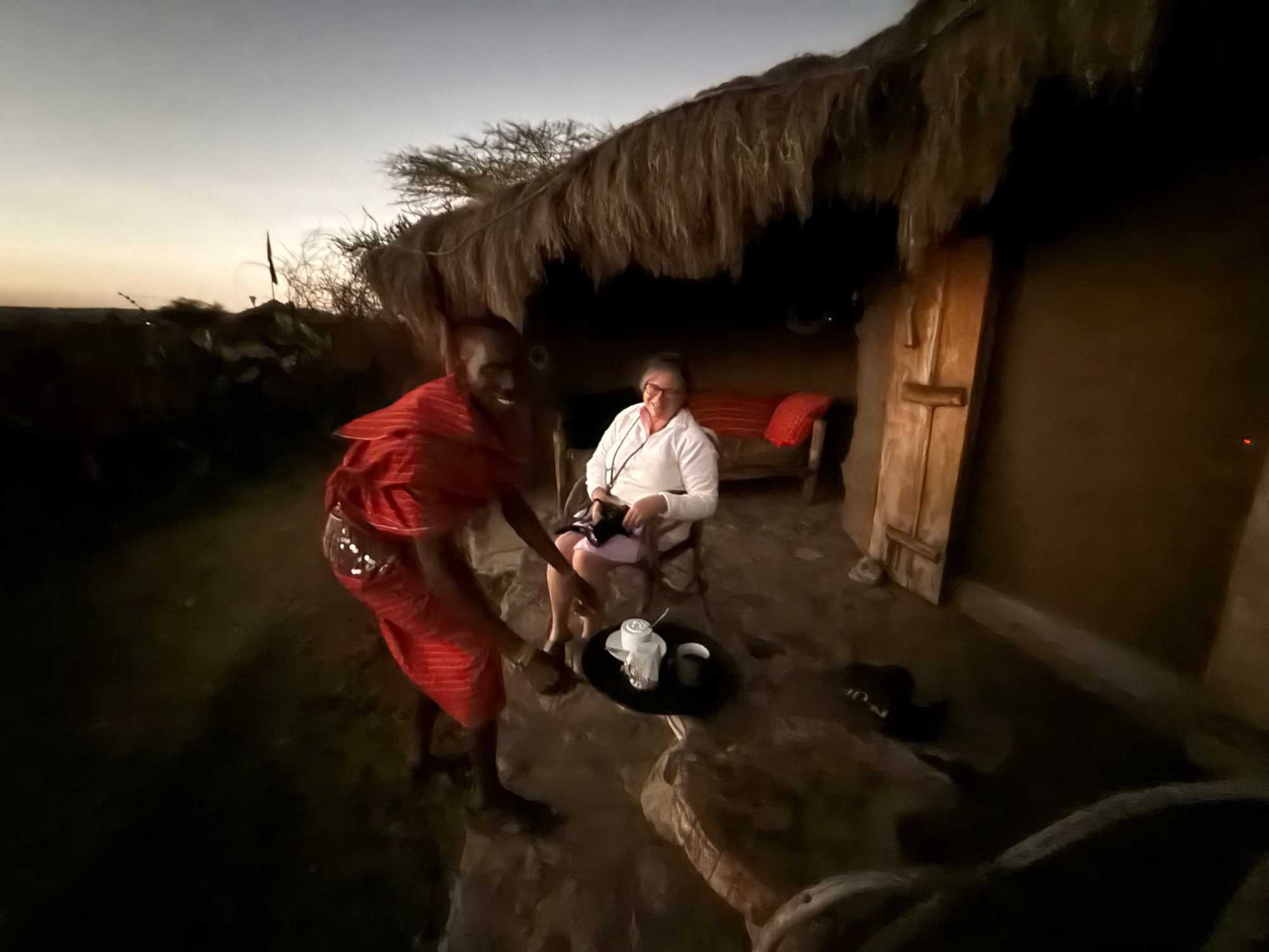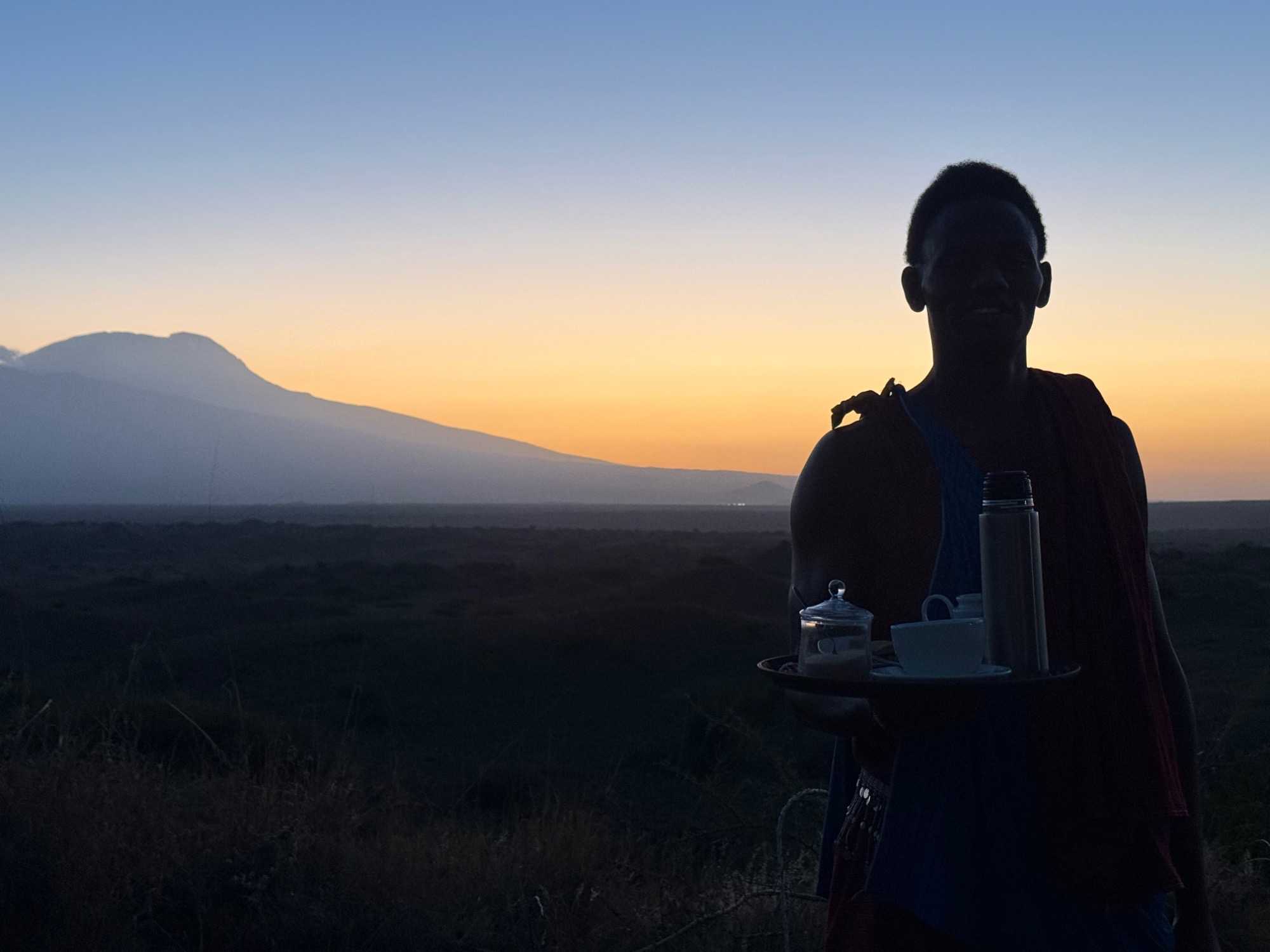 Pendant que nous profitons de ce moment suspendu, un charmant Massaï vient nous apporter du café chaud. Un geste simple, empreint de gentillesse, qui rend l’instant encore plus précieux ☕.