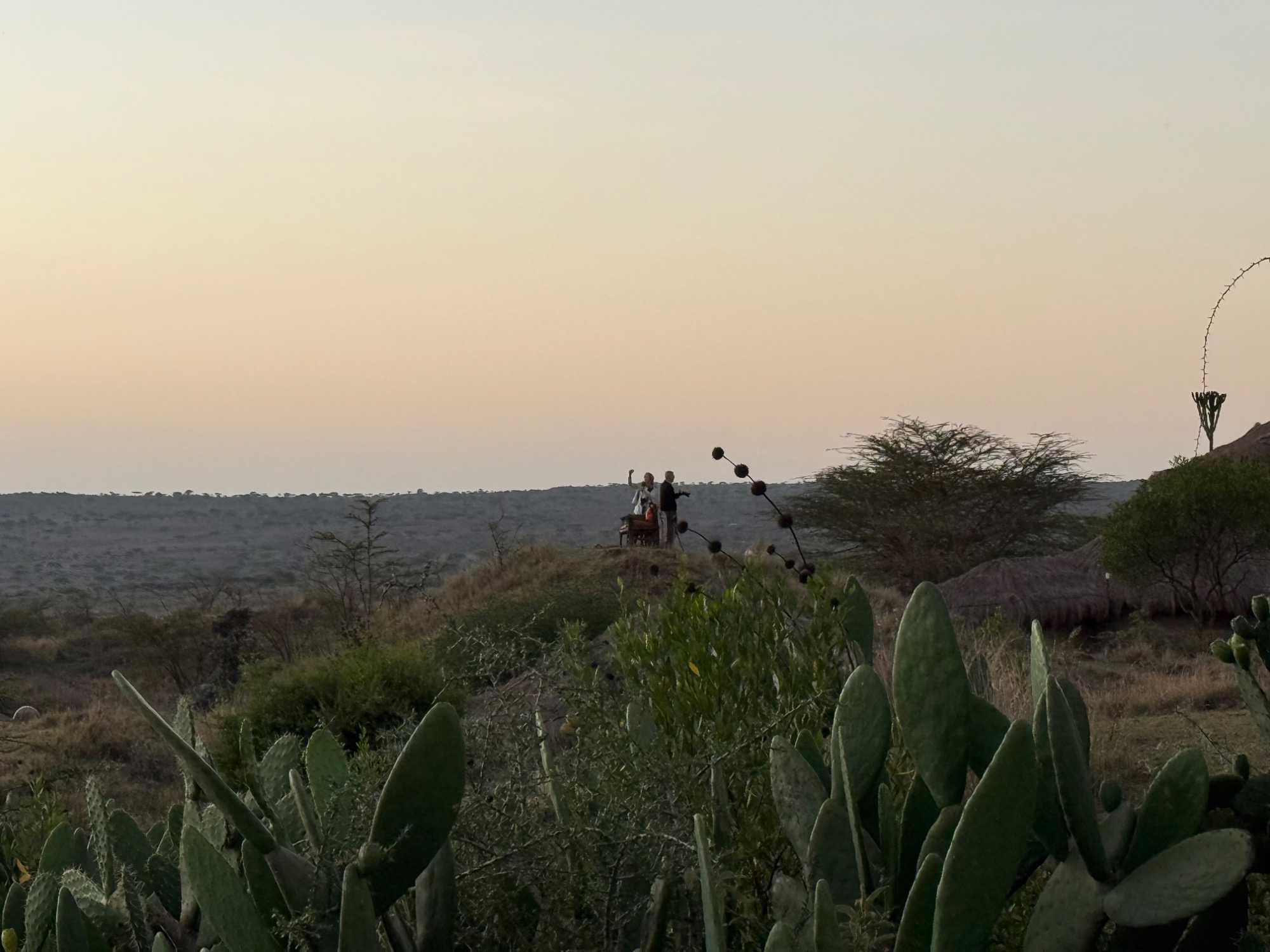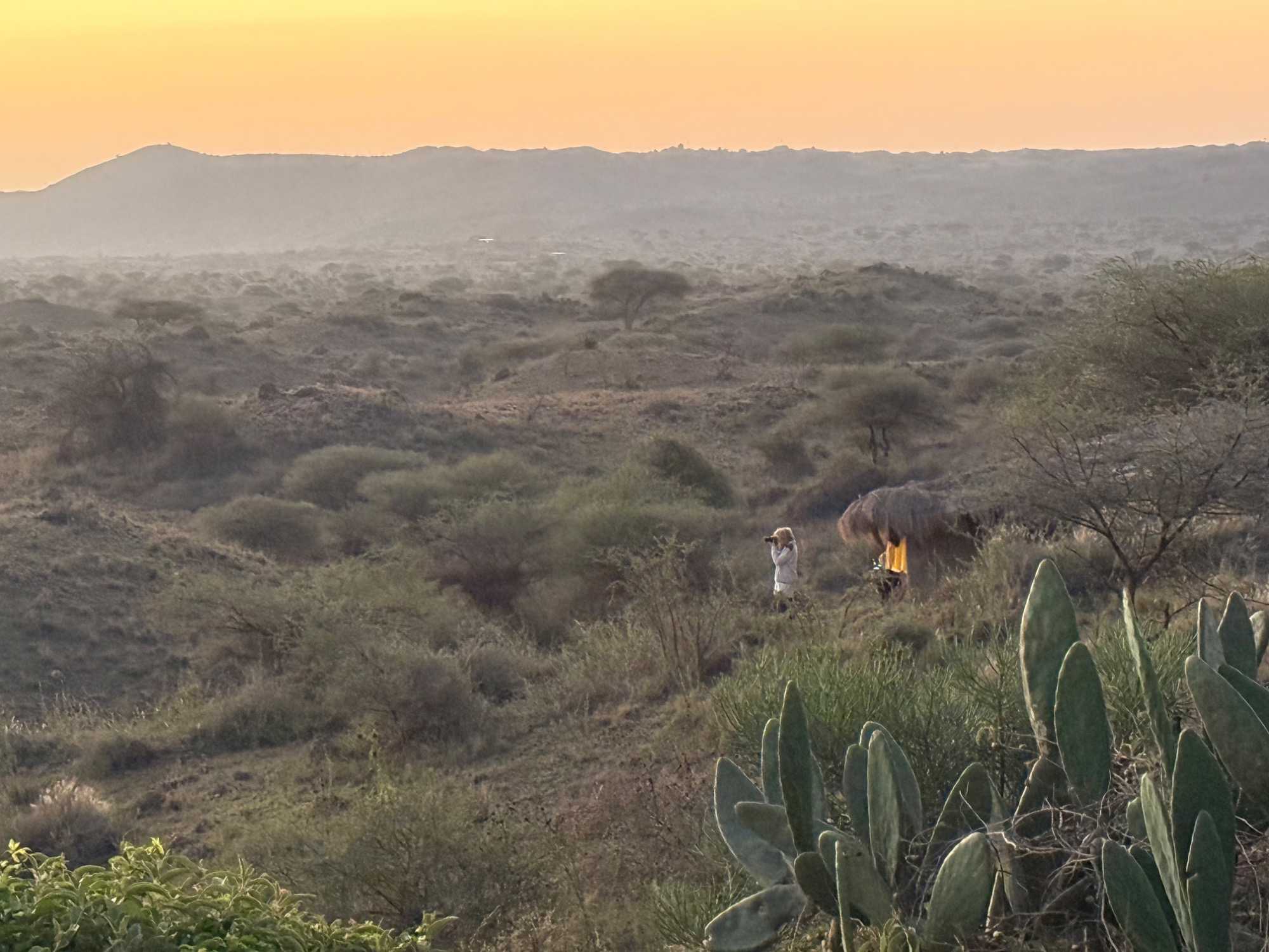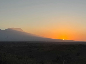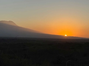 Dès l’aube, vers 5 h 30 – 6 h, nous sommes déjà éveillés, impatients d’assister au lever du soleil. Depuis nos villas, la vue est spectaculaire : la savane s’étend devant nous et, en toile de fond, les montagnes se dévoilent lentement. Les couleurs changent minute après minute, passant des teintes rosées à l’or du matin. Le mont Meru se dresse fièrement devant nous, majestueux et apaisant 🌄.