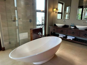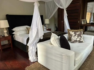 Quel contraste ! Situé en pleine nature, entouré de végétation luxuriante, on oublie complètement que nous sommes en ville. Le lodge est luxueux, composé de magnifiques villas privées très bien aménagées. Après notre immersion sur les terres massaï — que nous avions surnommée avec affection le « Club Med Massaï » — l’arrivée ici fait sourire 😊.