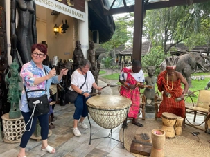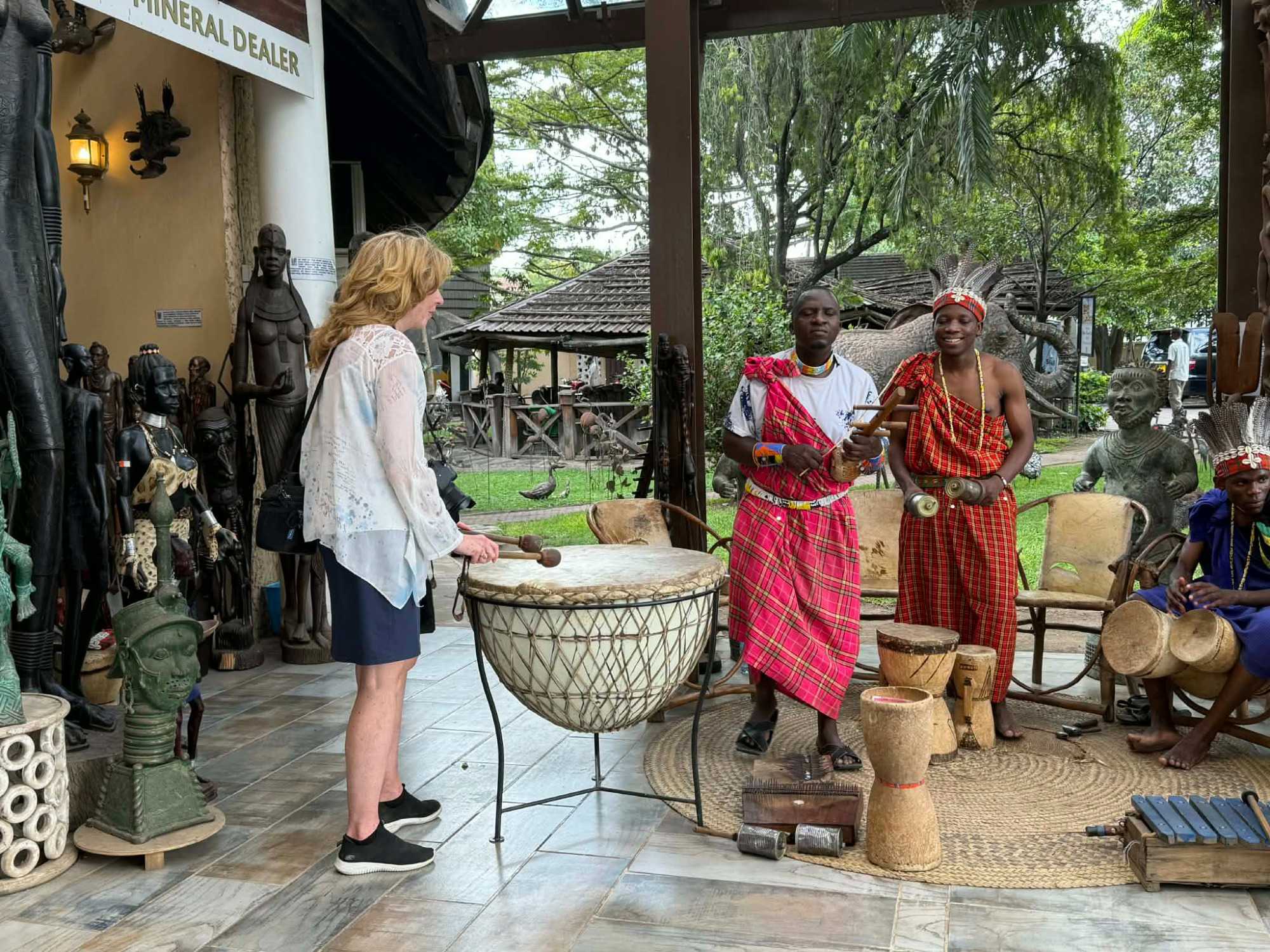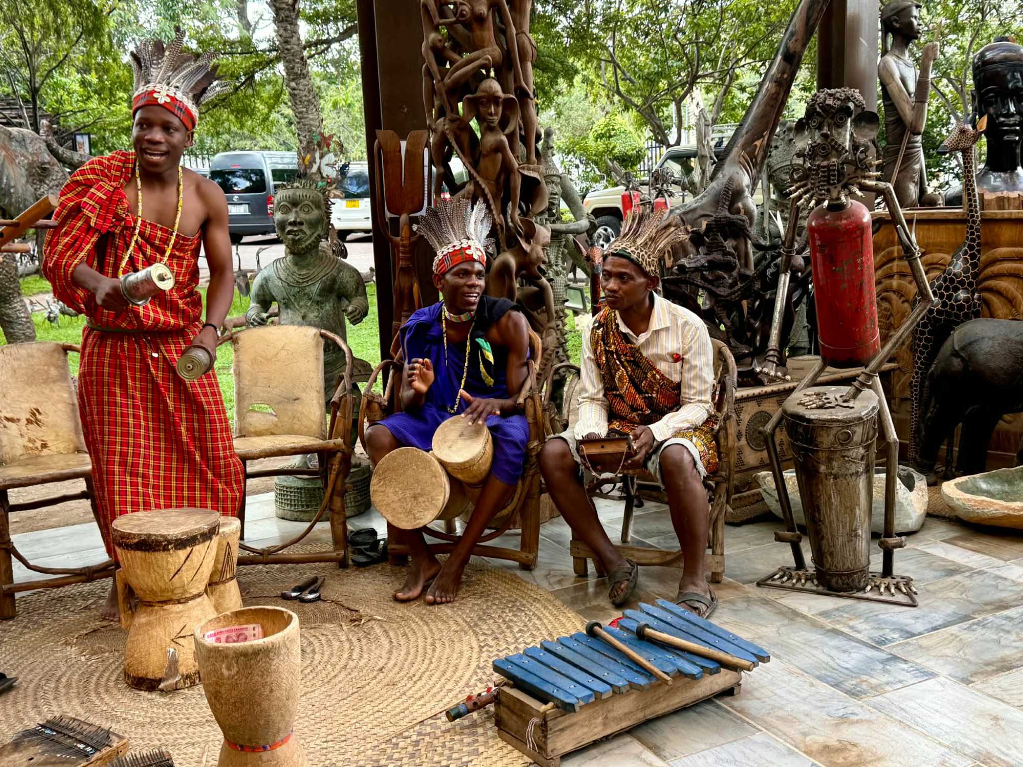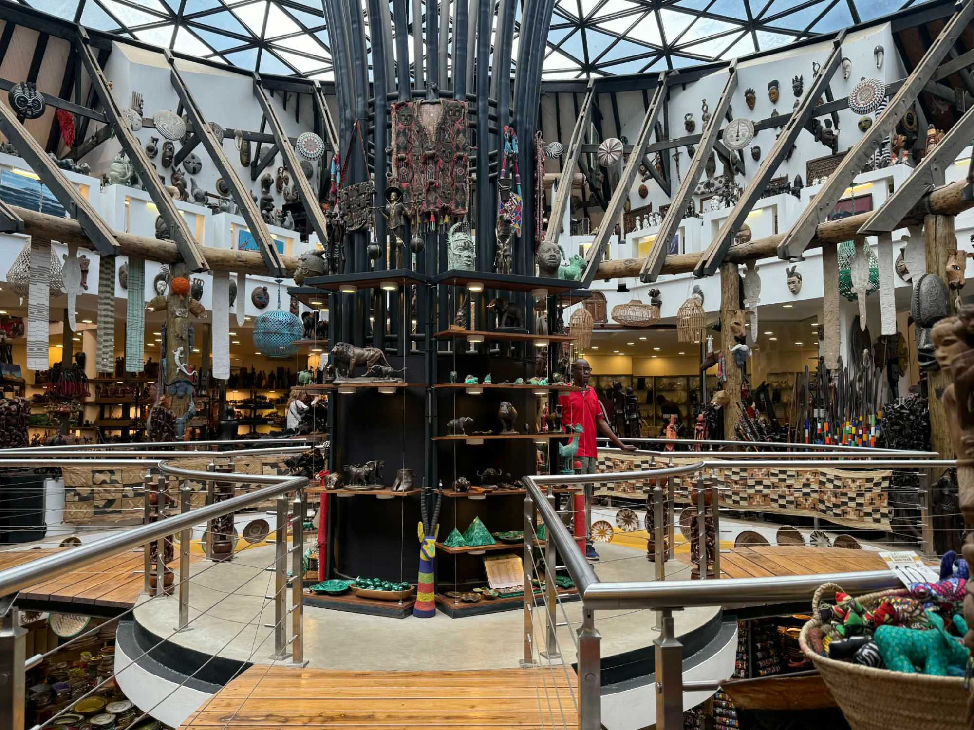 En après-midi, nous faisons une halte dans un vaste espace regroupant de l’art africain sur deux étages : sculptures, peintures, objets traditionnels. Tout l’art du continent sous un même toit. Nous prenons le temps d’admirer ces pièces magnifiques et de faire quelques achats.