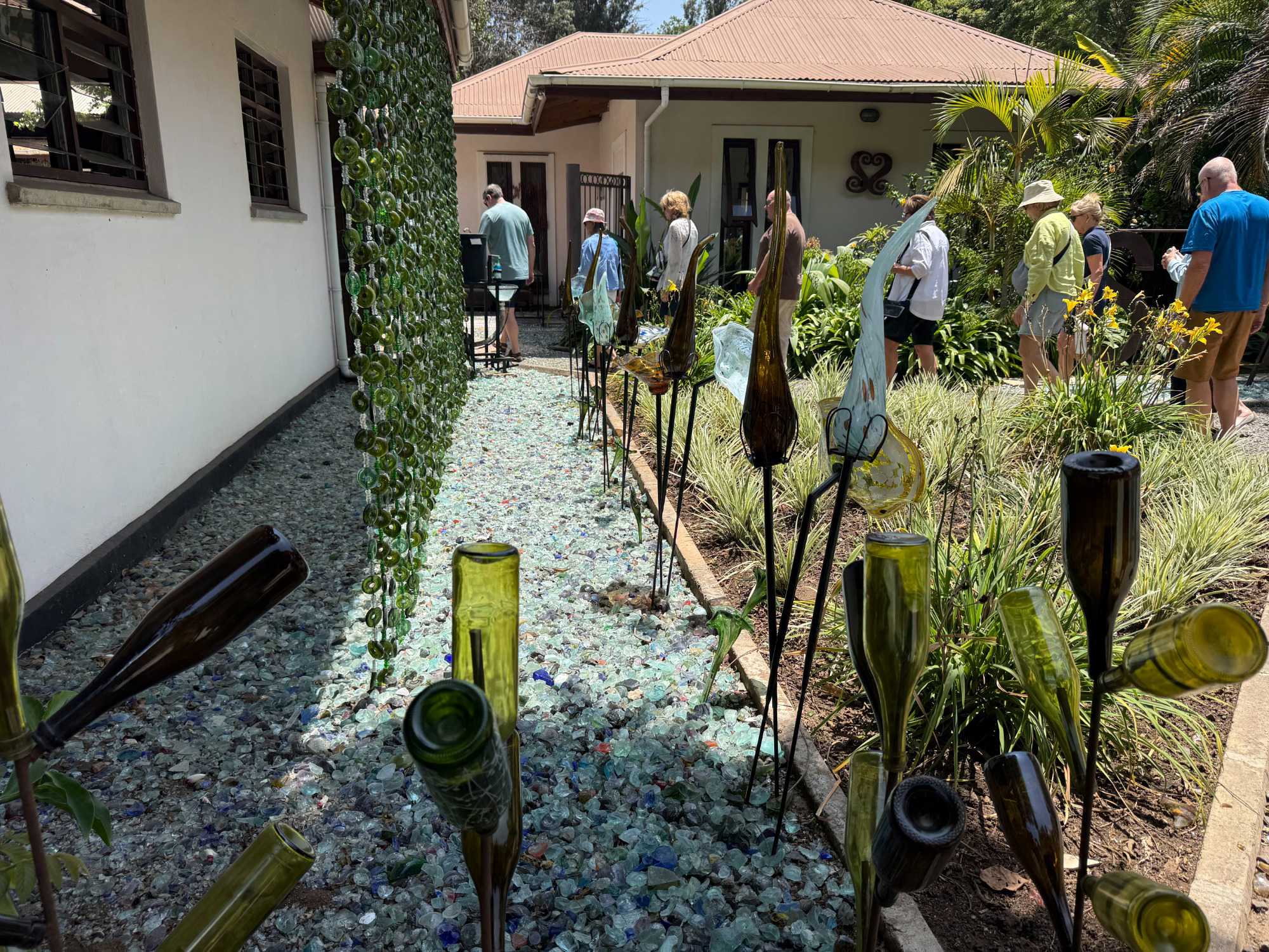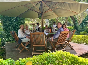La visite se termine dans un magnifique jardin où nous partageons un excellent buffet. Les tables sont joliment dressées, le cadre est idyllique. Un petit verre de rosé, une bonne bière, un repas savoureux… un moment de pur bonheur partagé 🍷.