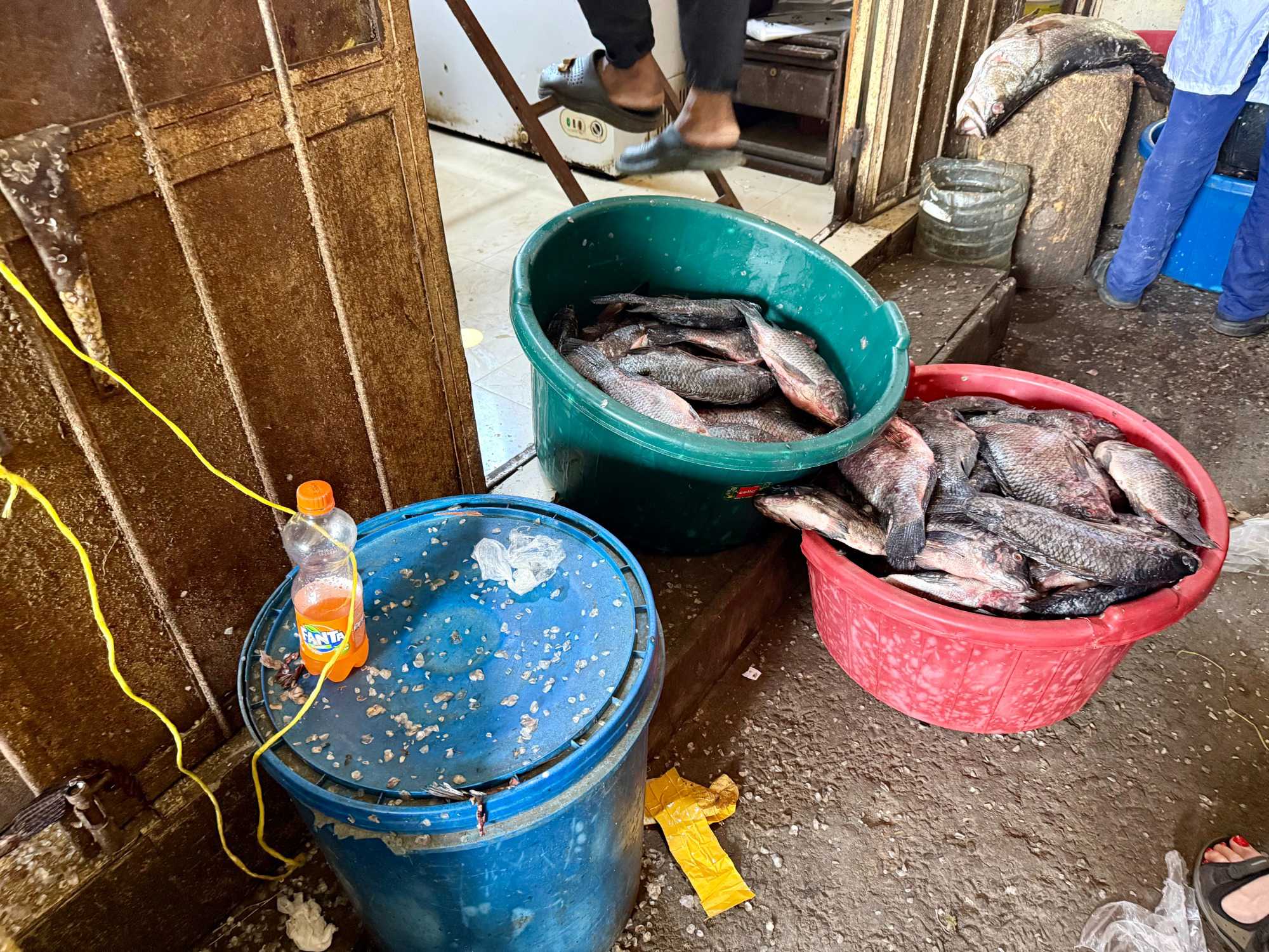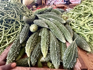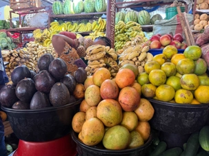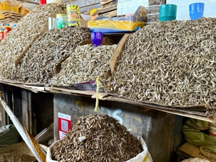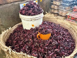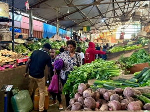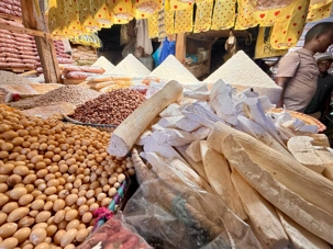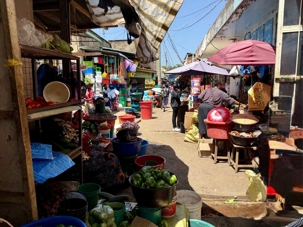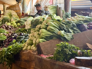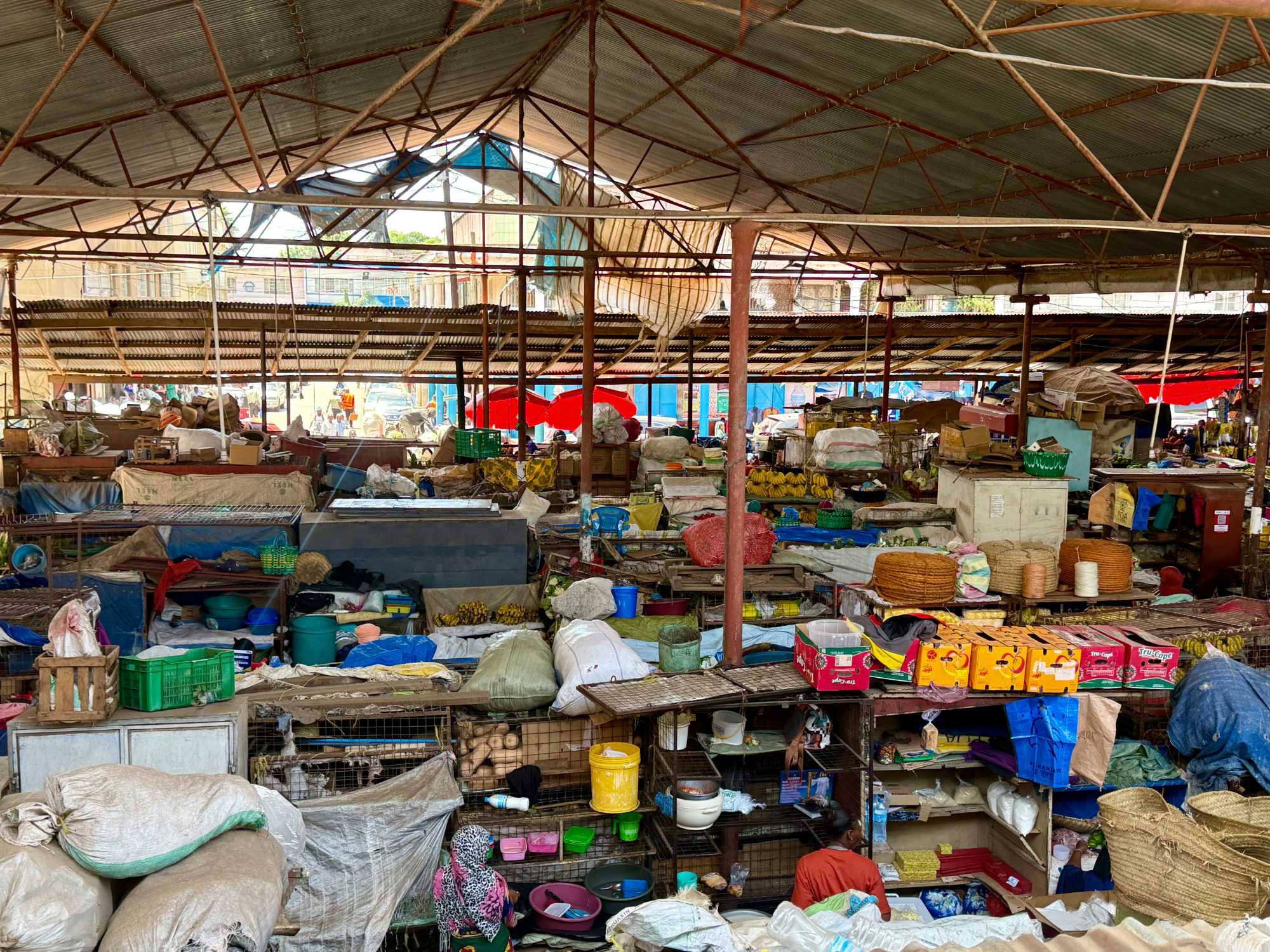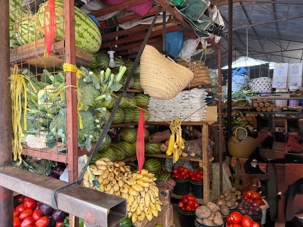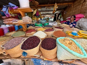 Nous sommes attendus par trois guides locaux qui divisent notre groupe afin de nous offrir une immersion plus intime dans un marché local. Ici, c’est le cœur du quotidien. Les habitants viennent s’approvisionner en fruits, légumes, épices et produits frais.