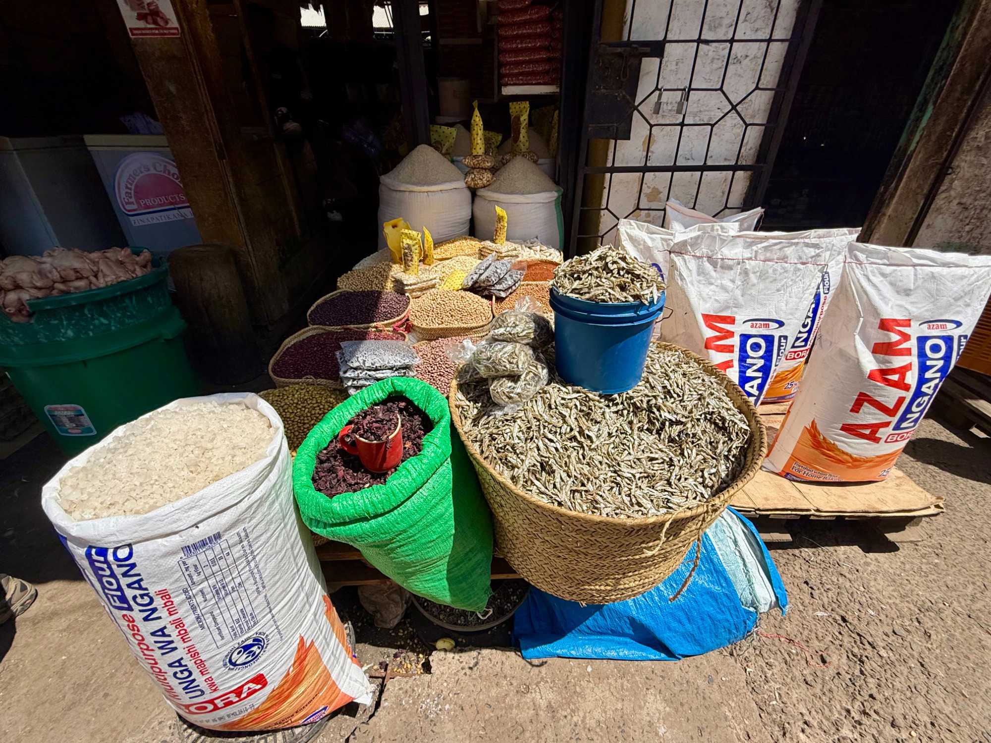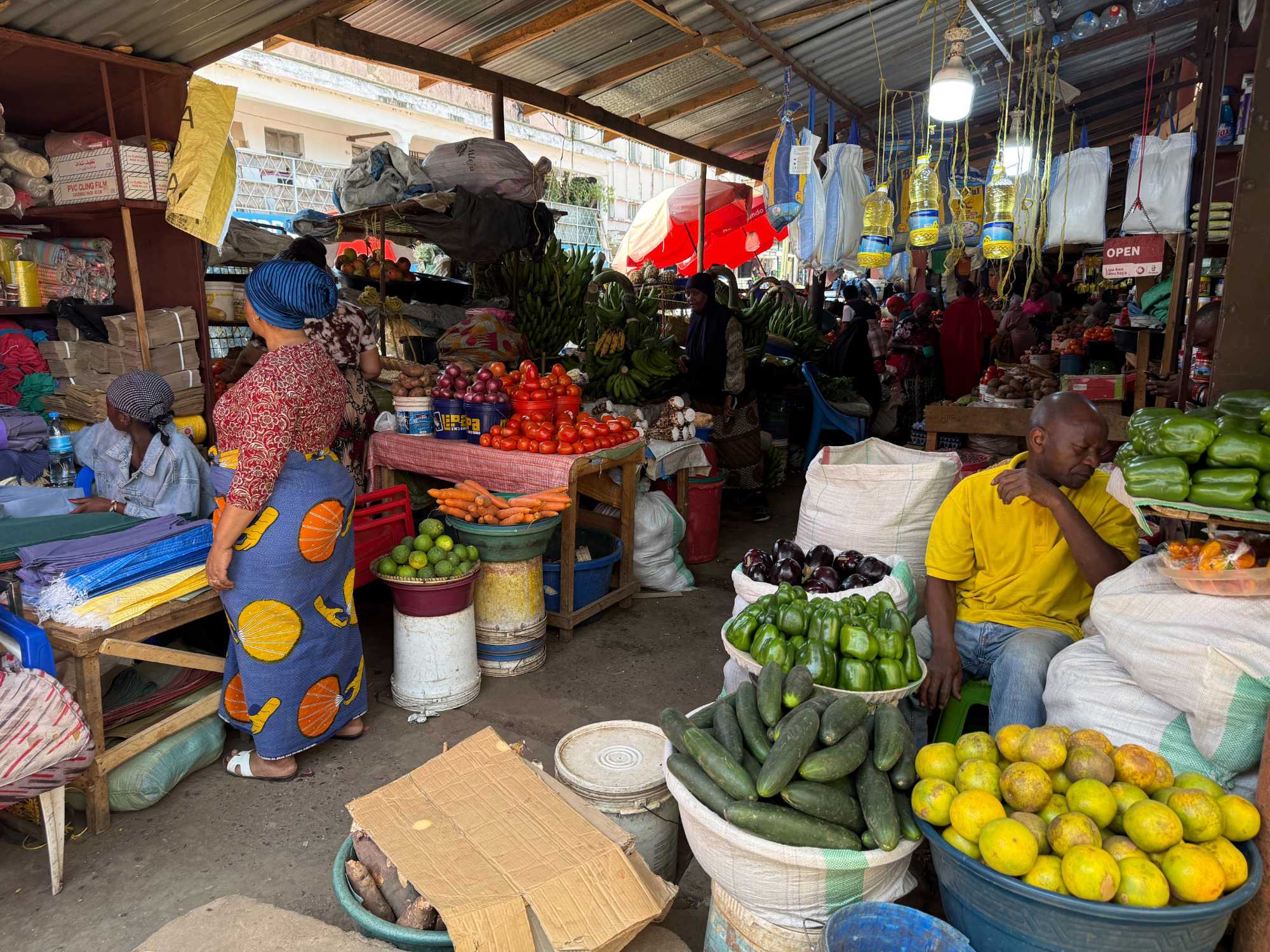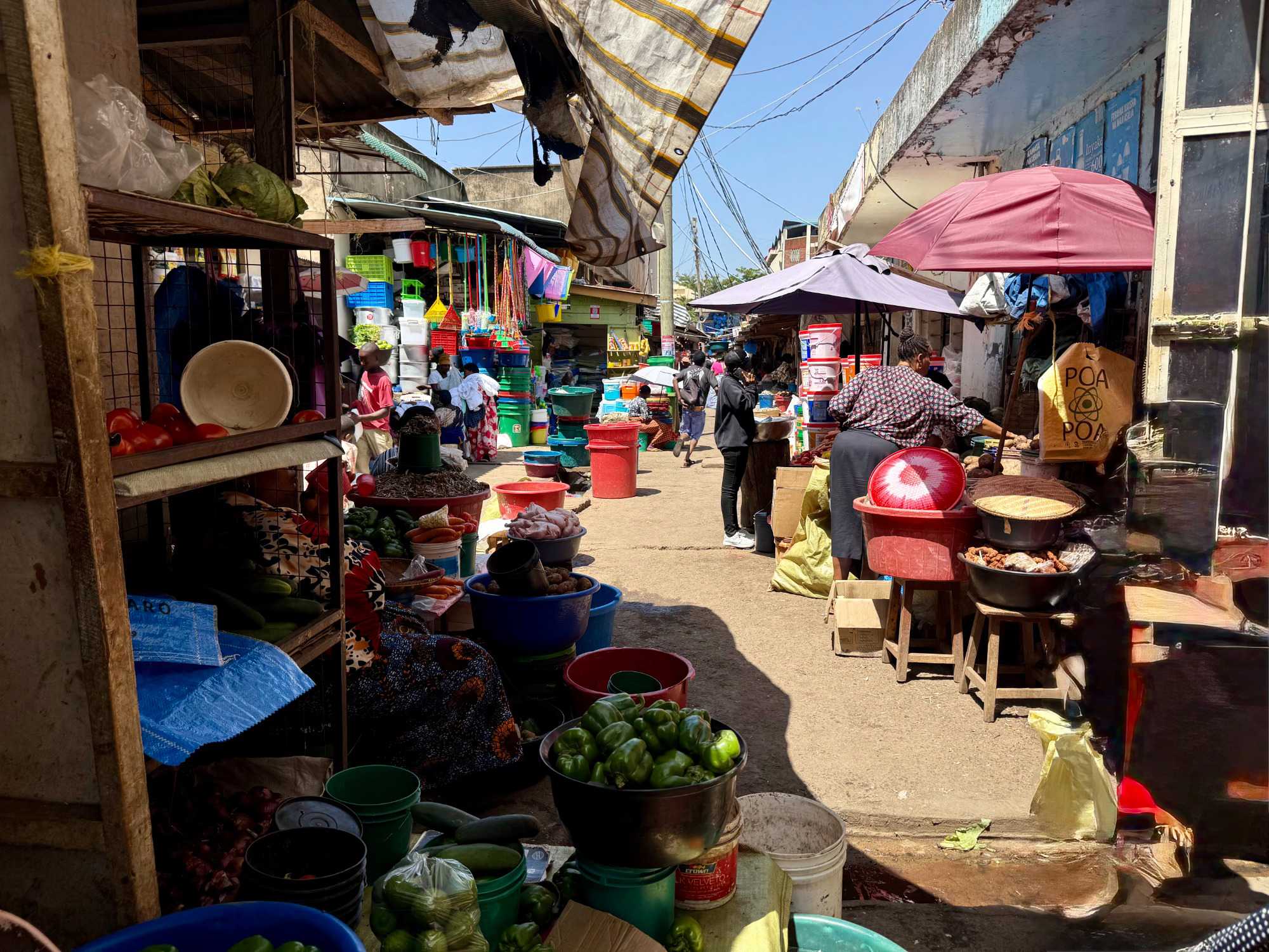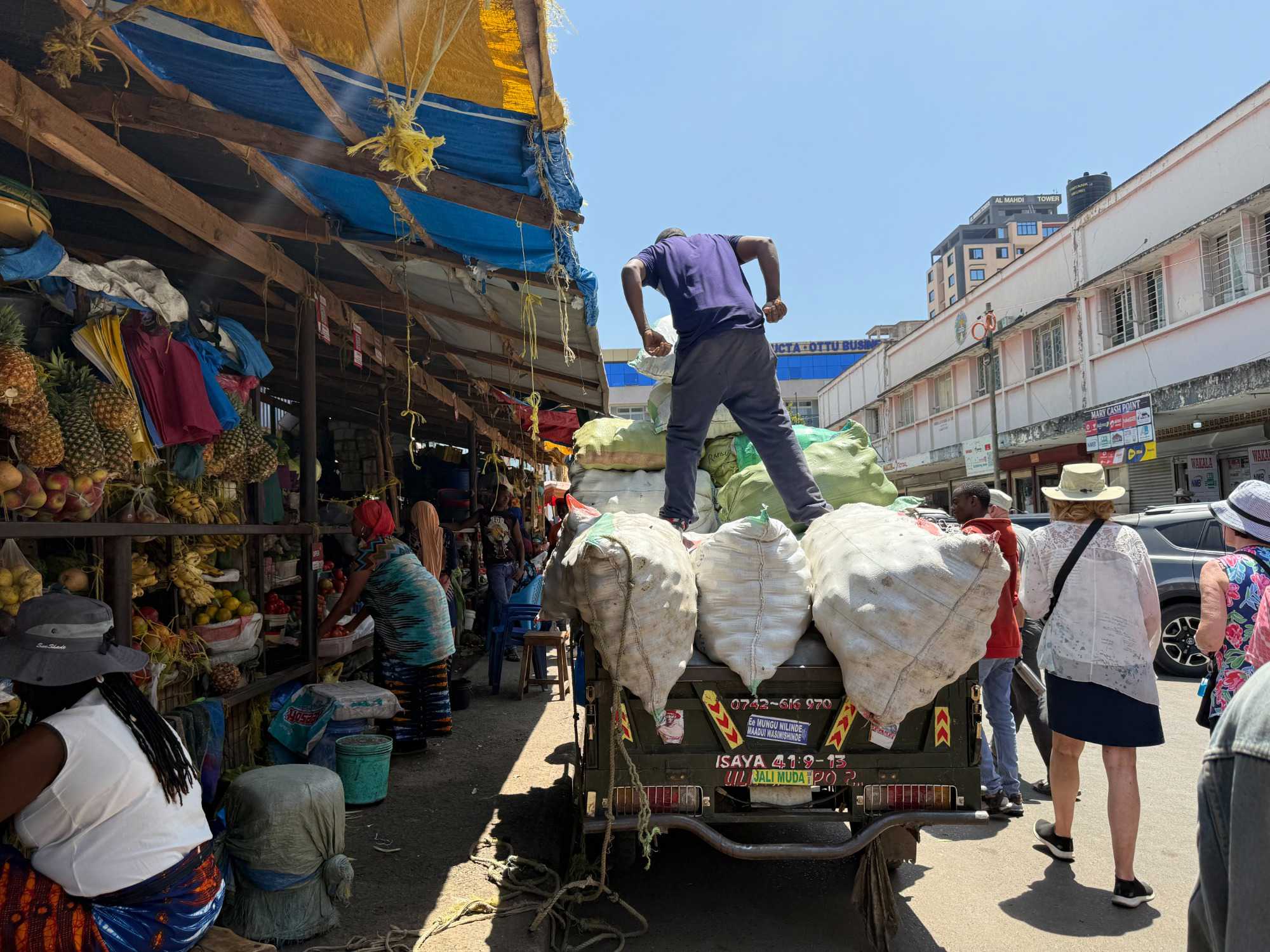 Nous parcourons les allées étroites et animées. Les vendeurs nous saluent d’un chaleureux « Jambo ! ». Les étals débordent de couleurs : mangues, avocats, bananes, piments, épices parfumées. Nous découvrons les ingrédients de base de la cuisine tanzanienne et échangeons avec des commerçants tout sourire. Une immersion vivante et authentique 🌶️🥭.