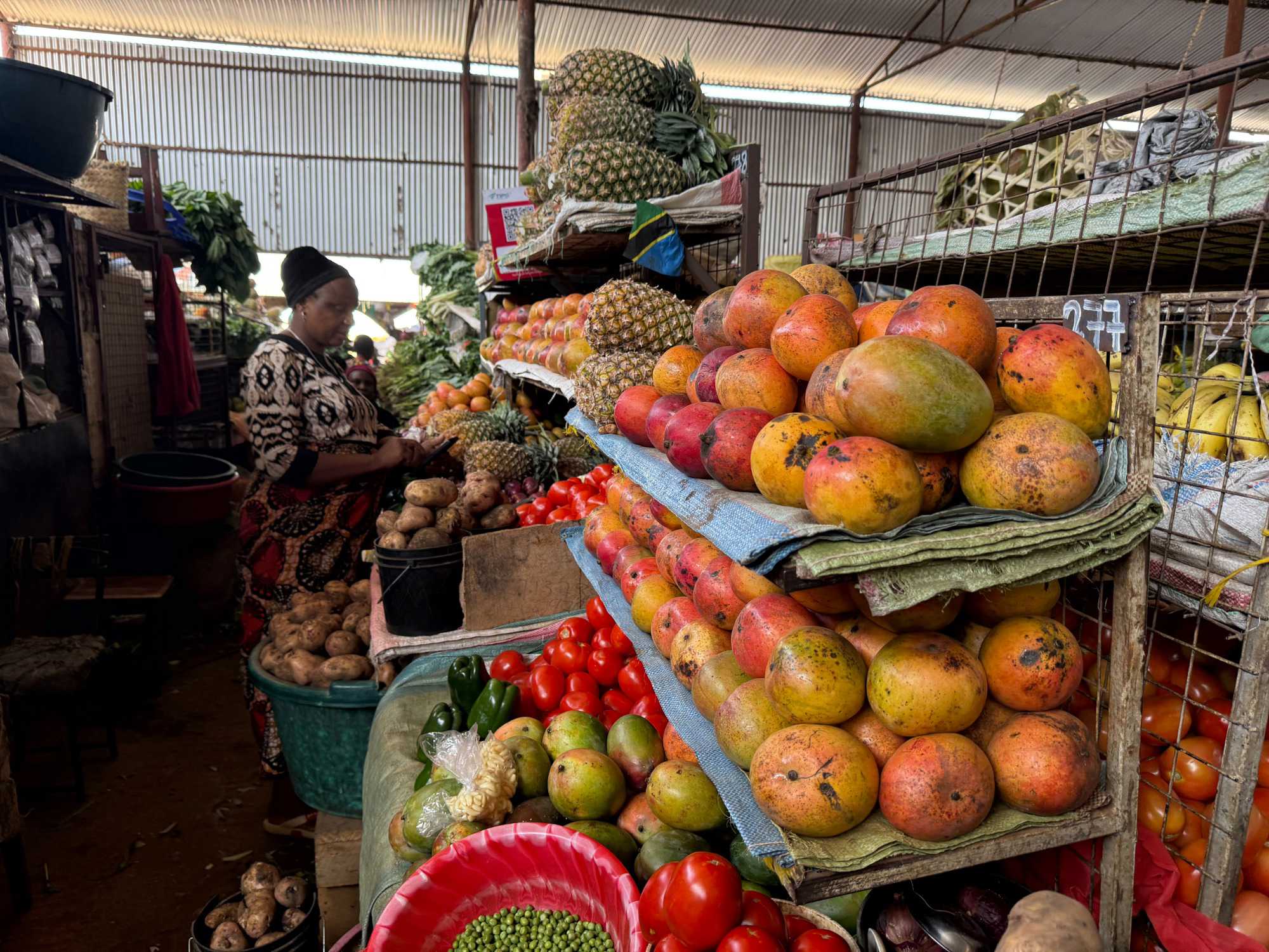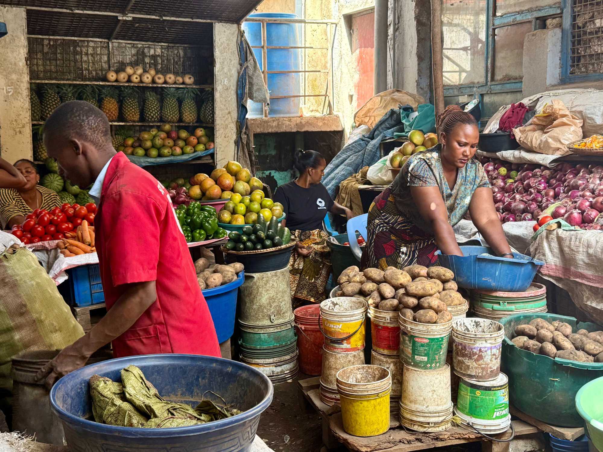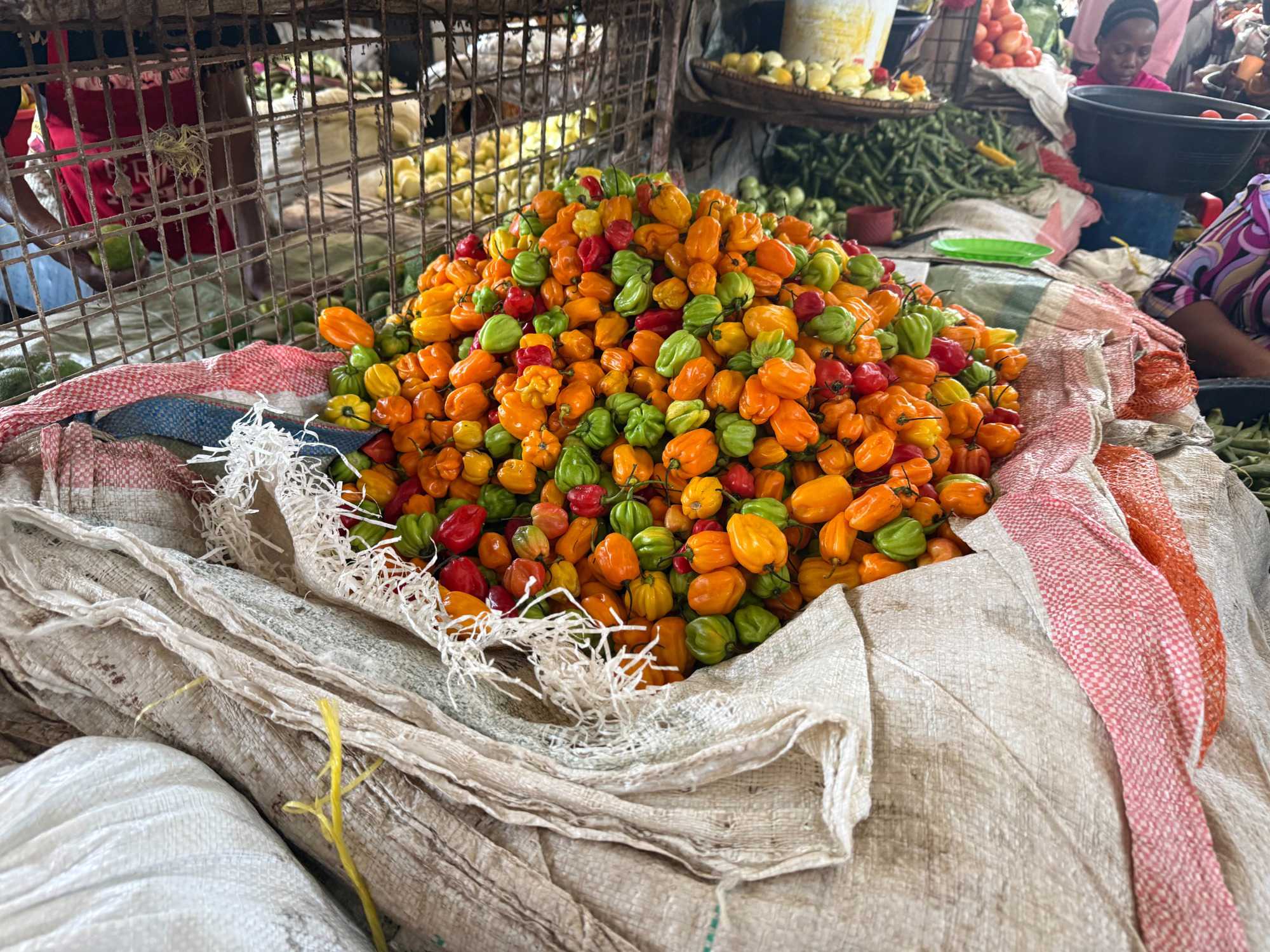 Nous parcourons les allées étroites et animées. Les vendeurs nous saluent d’un chaleureux « Jambo ! ». Les étals débordent de couleurs : mangues, avocats, bananes, piments, épices parfumées. Nous découvrons les ingrédients de base de la cuisine tanzanienne et échangeons avec des commerçants tout sourire. Une immersion vivante et authentique 🌶️🥭.