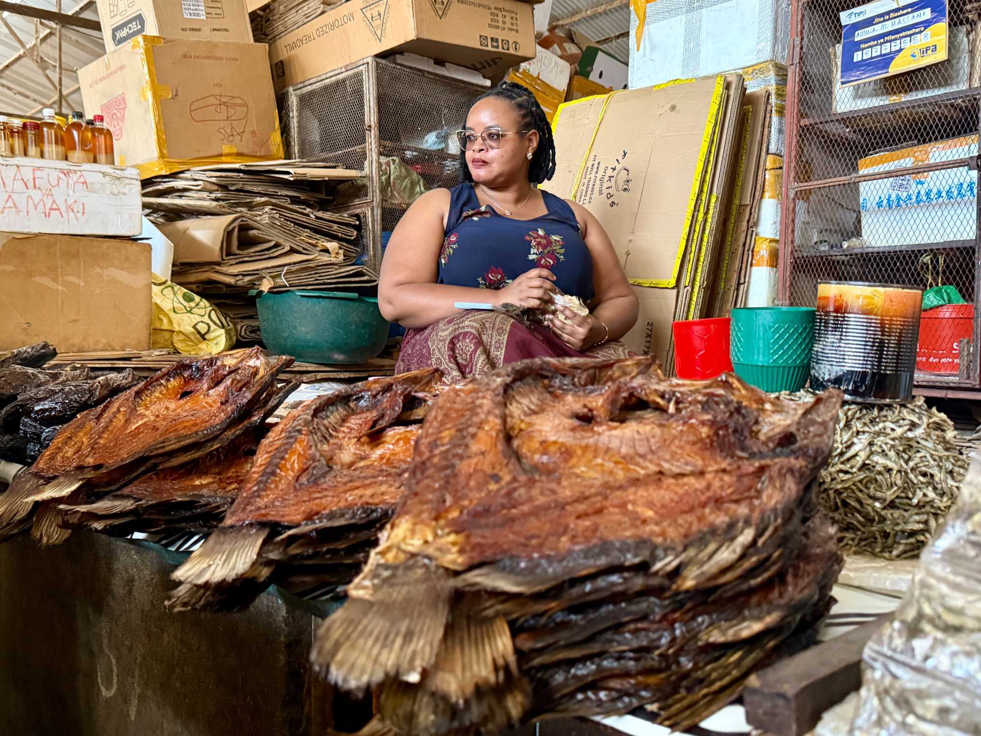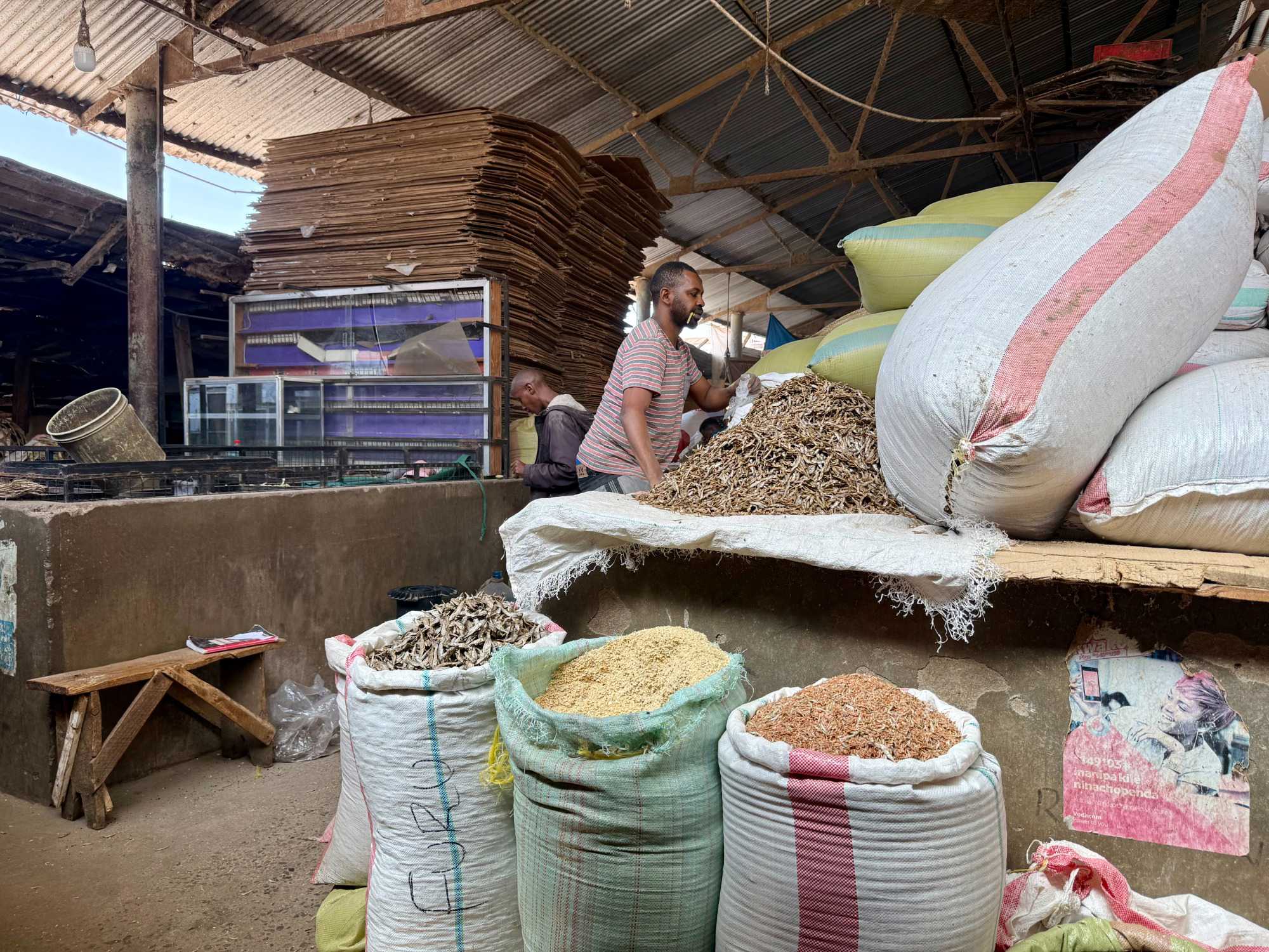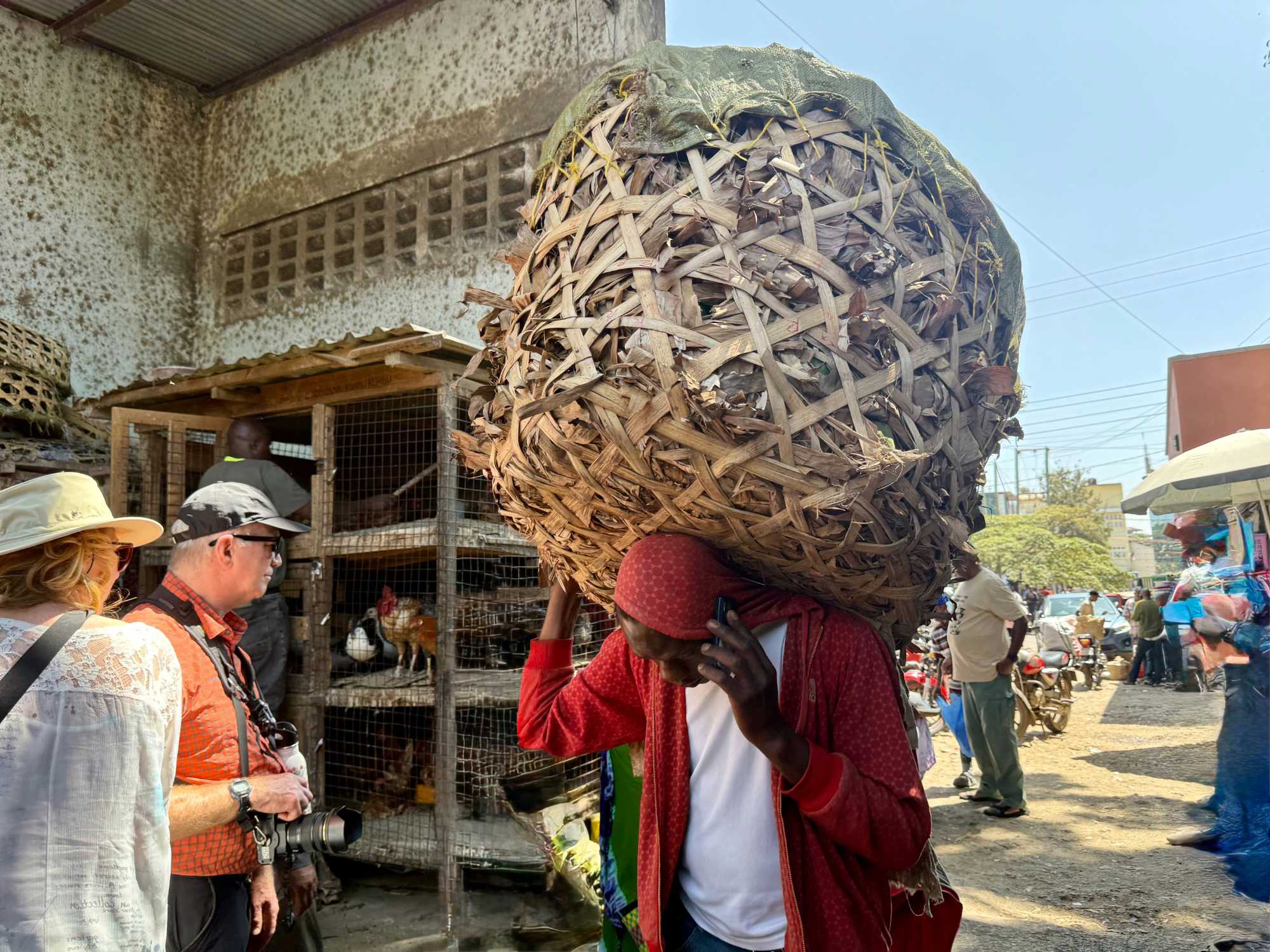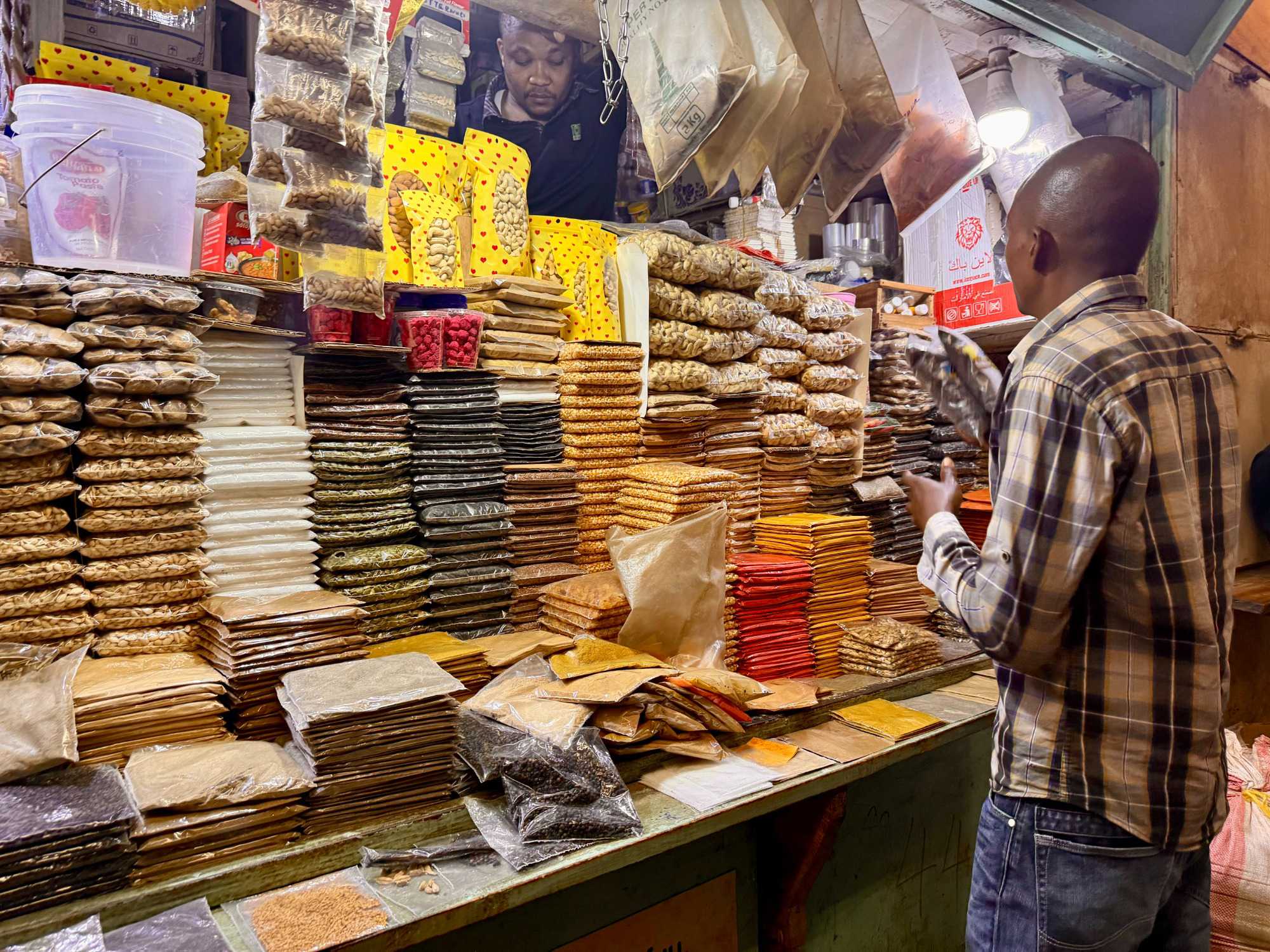 Nous parcourons les allées étroites et animées. Les vendeurs nous saluent d’un chaleureux « Jambo ! ». Les étals débordent de couleurs : mangues, avocats, bananes, piments, épices parfumées. Nous découvrons les ingrédients de base de la cuisine tanzanienne et échangeons avec des commerçants tout sourire. Une immersion vivante et authentique 🌶️🥭.