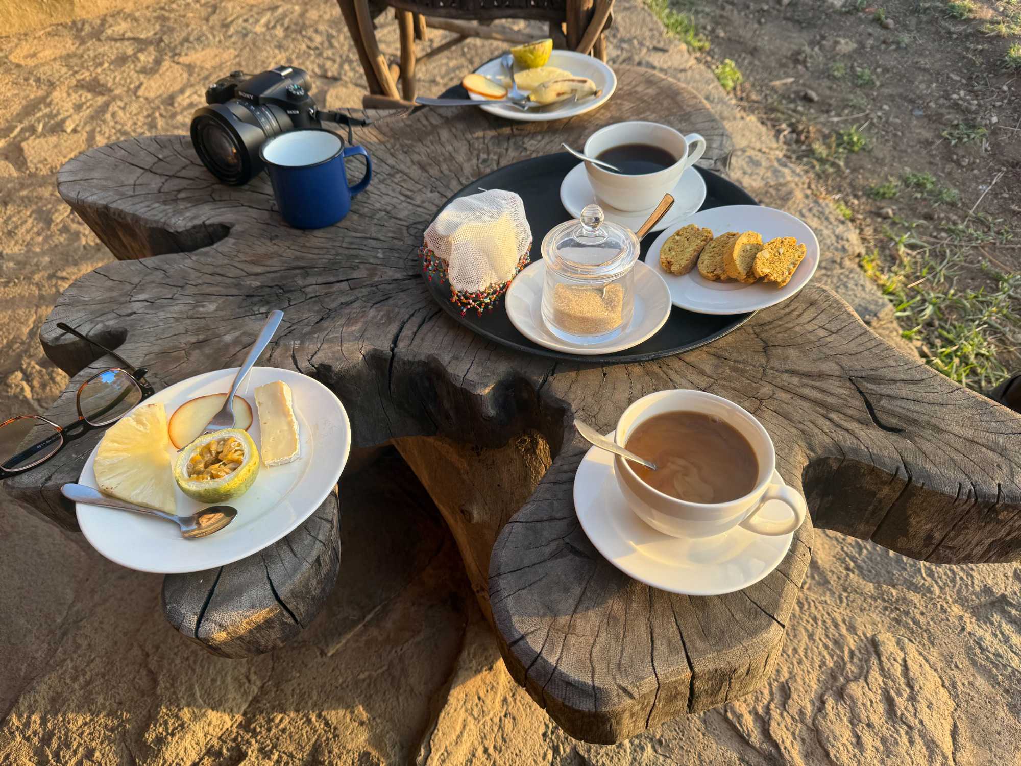 Après ce lever de soleil inoubliable, nous partageons un excellent petit déjeuner avec ces vues grandioses en toile de fond. Puis vient le moment de faire nos bagages. Nous devons quitter ce petit paradis où nous avons déposé nos valises pour deux nuits exceptionnelles.