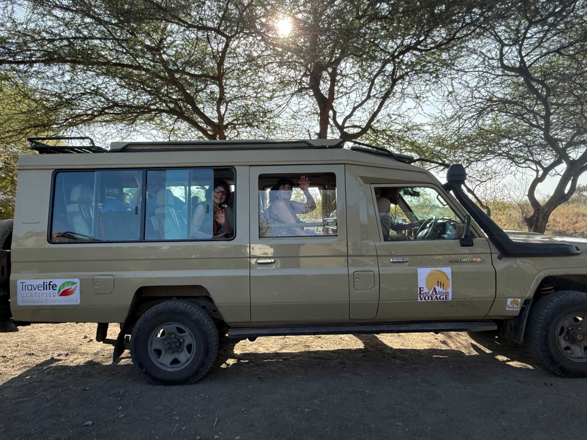 À 8 h 30, nous sommes prêts. Vérification des valises, installation dans nos cinq Jeeps, et nous voilà en route vers Arusha.