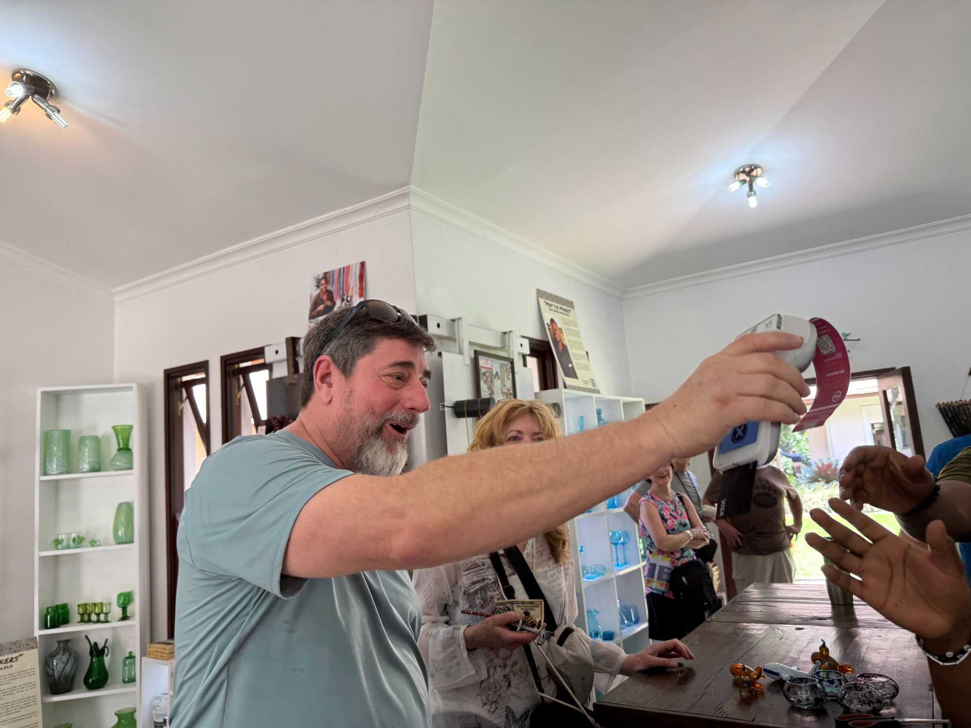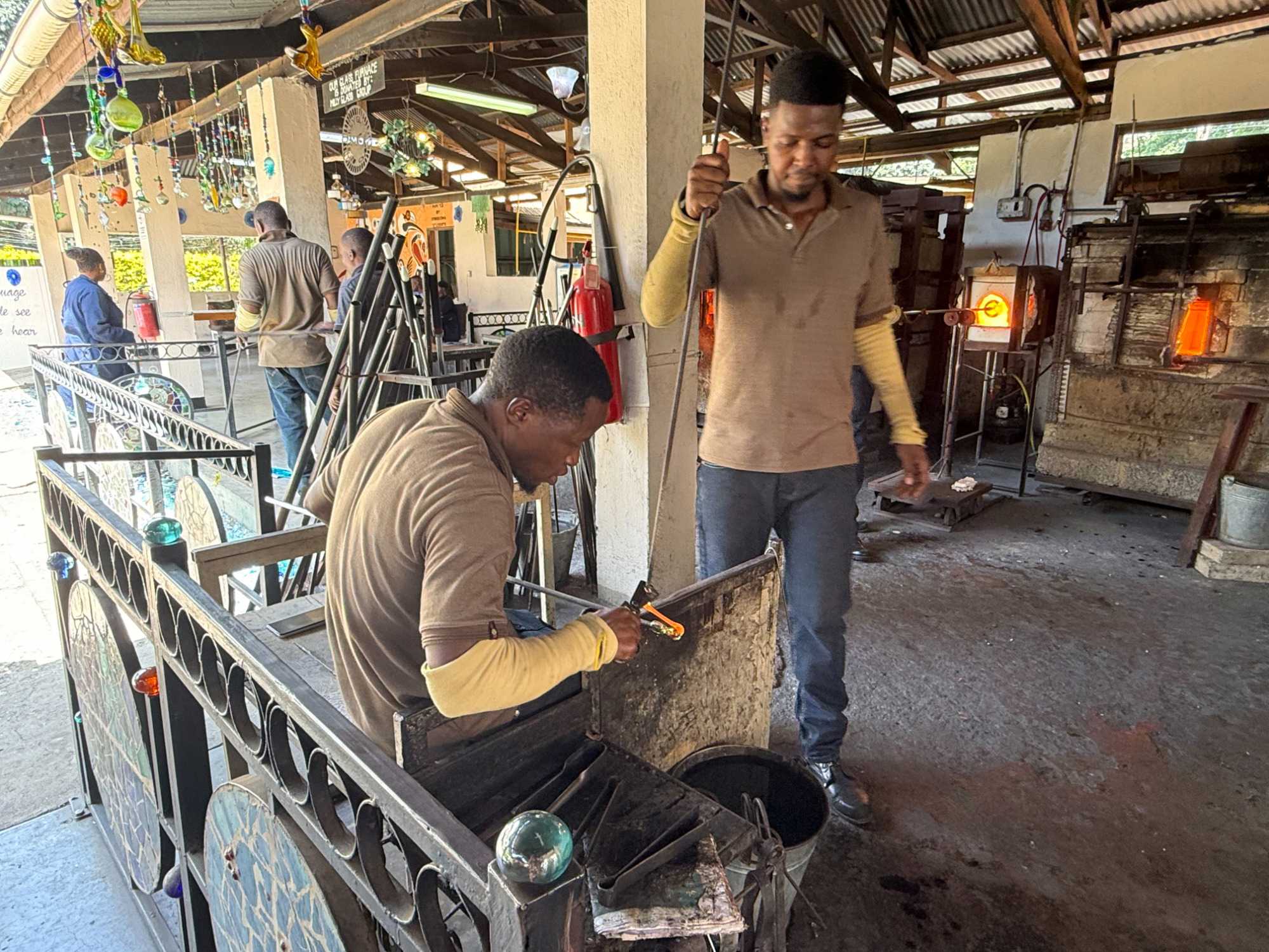 Dans un pays où l’aide gouvernementale est limitée, cet endroit fait une réelle différence. Nous visitons les ateliers : verre soufflé, bijoux, tissage, couture. Les artisans travaillent avec fierté et minutie. Les métiers à tisser me rappellent même certains souvenirs d’enfance.