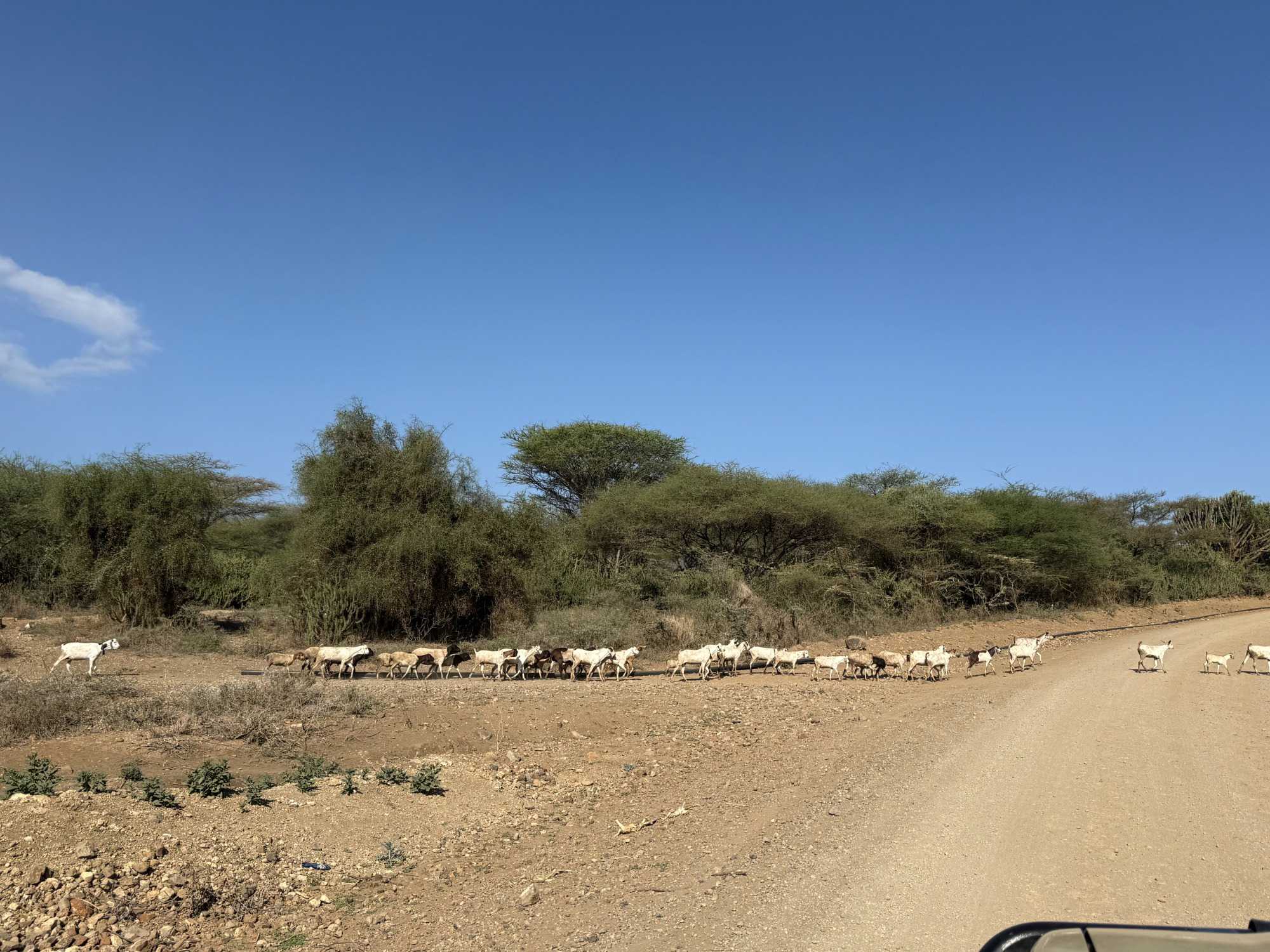 Sur le chemin, les paysages ruraux défilent une dernière fois : des bergers guidant leurs troupeaux de chèvres, des Massaïs marchant fièrement le long de la route, des agriculteurs dans leurs champs de tomates. Nous voyons la vie active des terres massaï, authentique et vibrante 🚙.