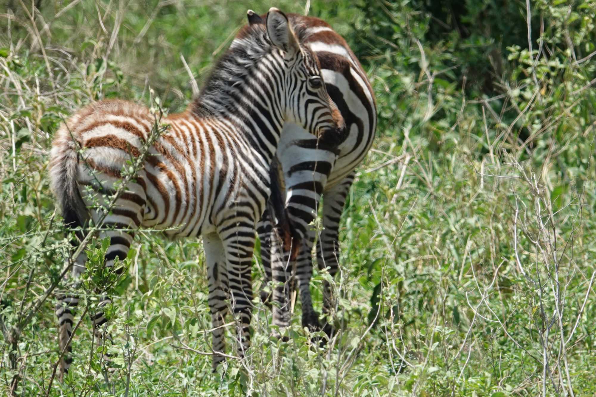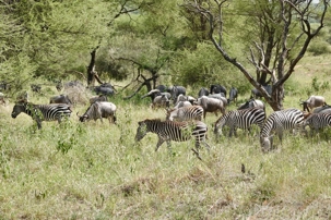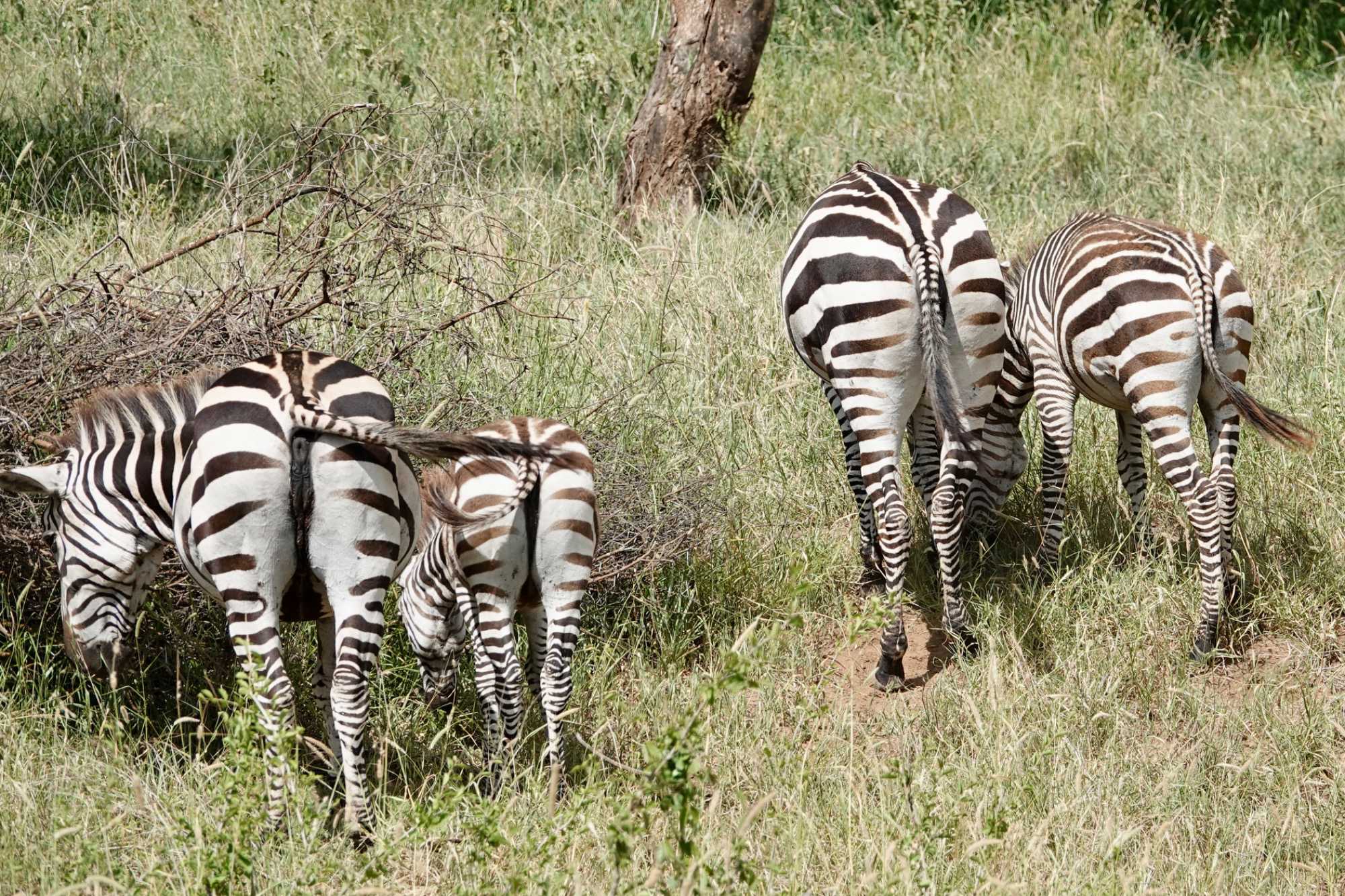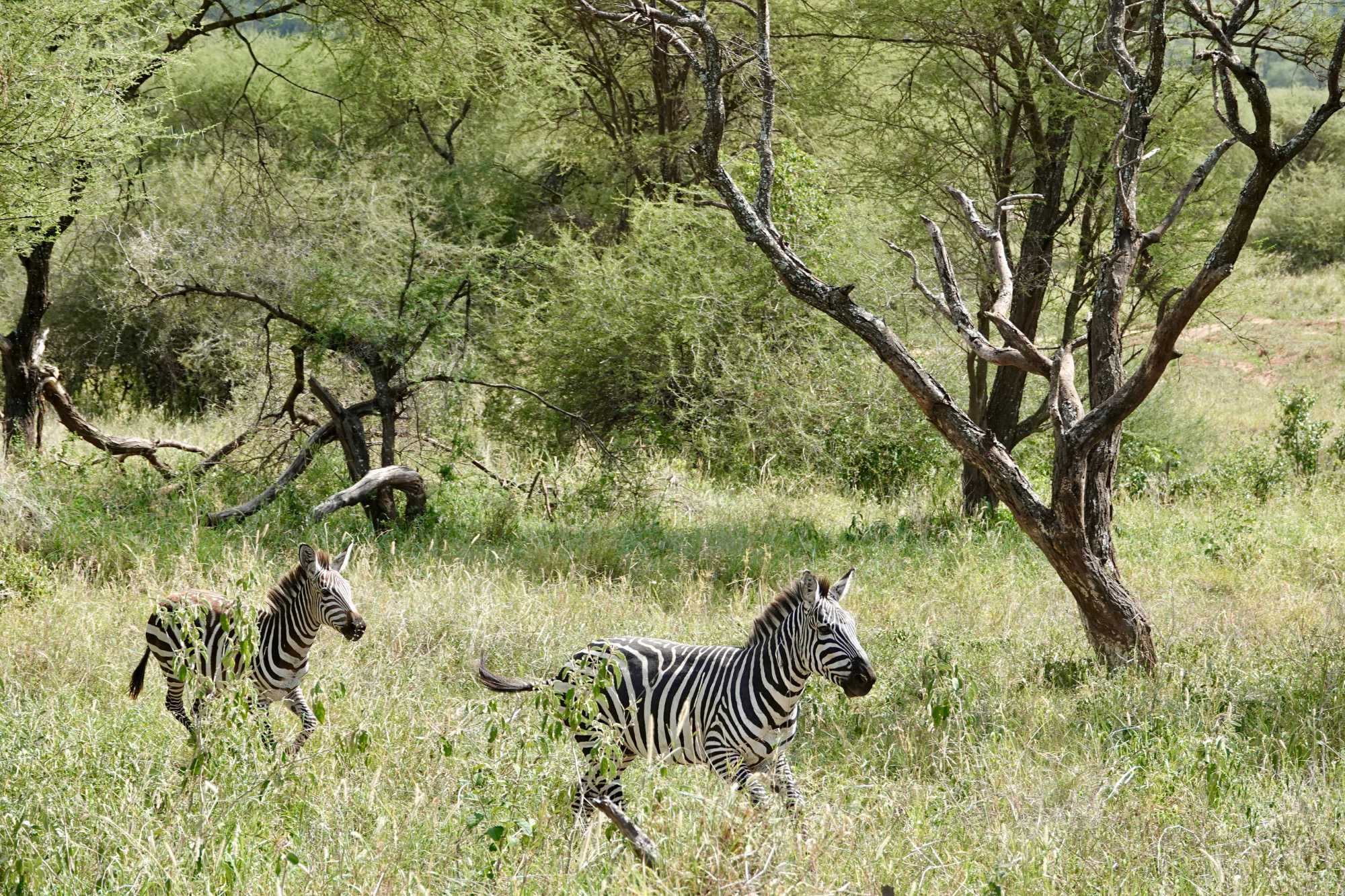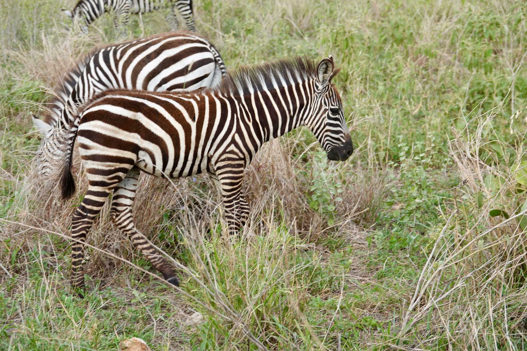 Très rapidement, les premiers animaux apparaissent. Je pourrais presque surnommer cette journée la journée des zèbres 🦓. Des troupeaux partout, à perte de vue, avec de nombreux bébés. Les voyageurs sont ravis. Les zèbres sont toujours un coup de cœur : leurs rayures, leurs déplacements en groupe, leur grâce naturelle.