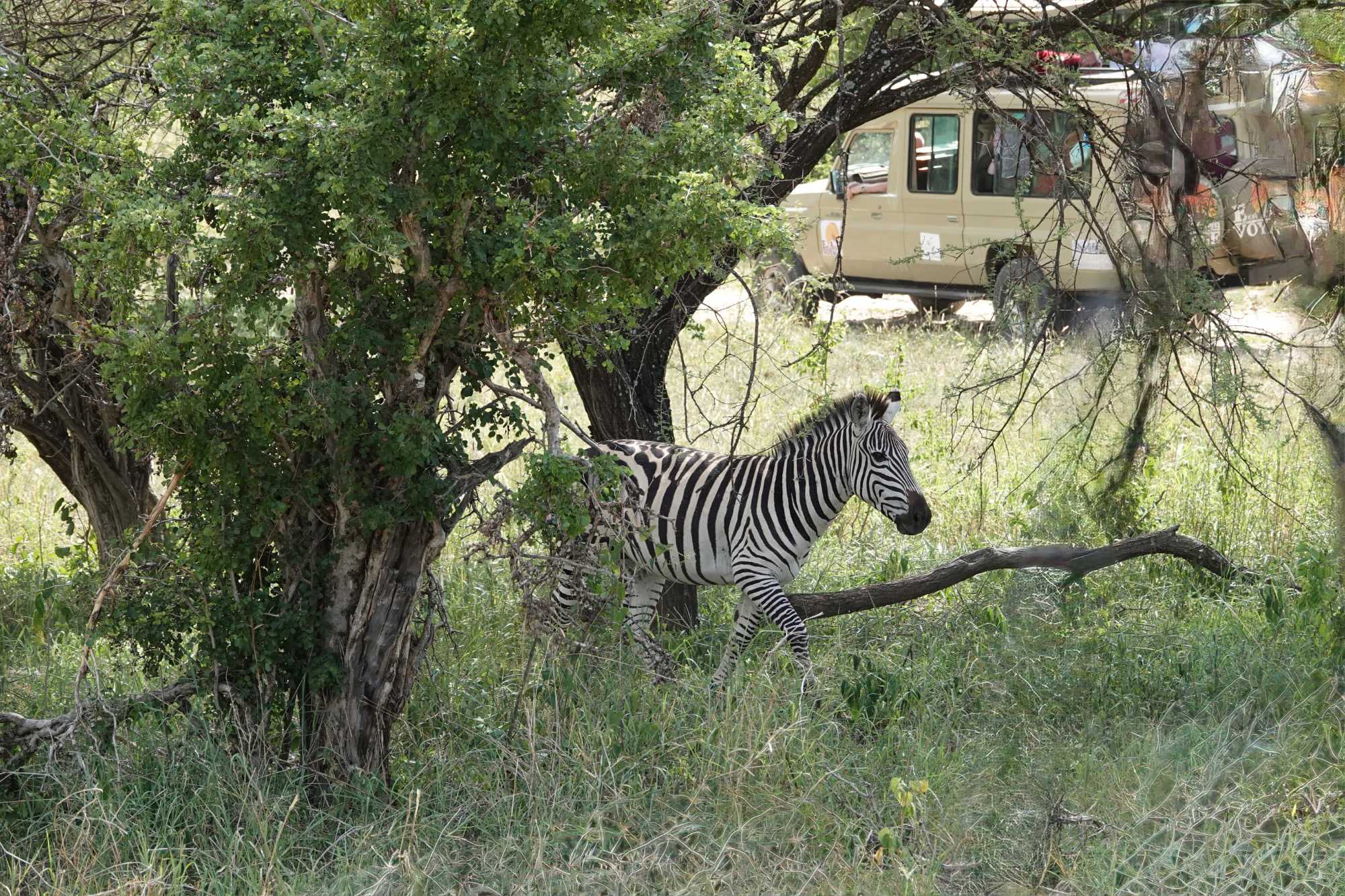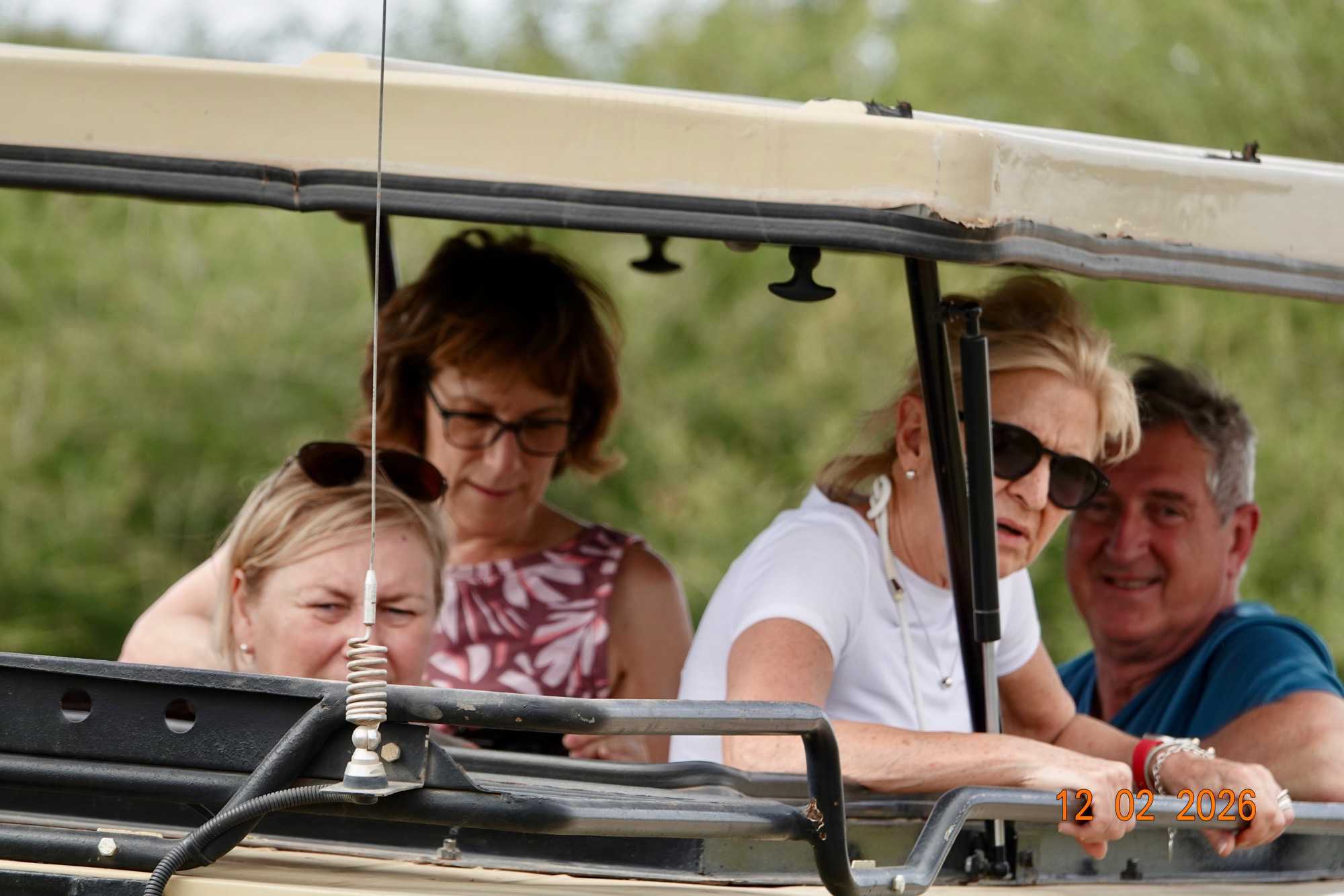 Nous avons environ deux heures de route avant d’atteindre l’entrée du parc, même si, avec les arrêts et les contrôles, le trajet total s’étire un peu plus longtemps. L’excitation monte à bord des Jeeps.