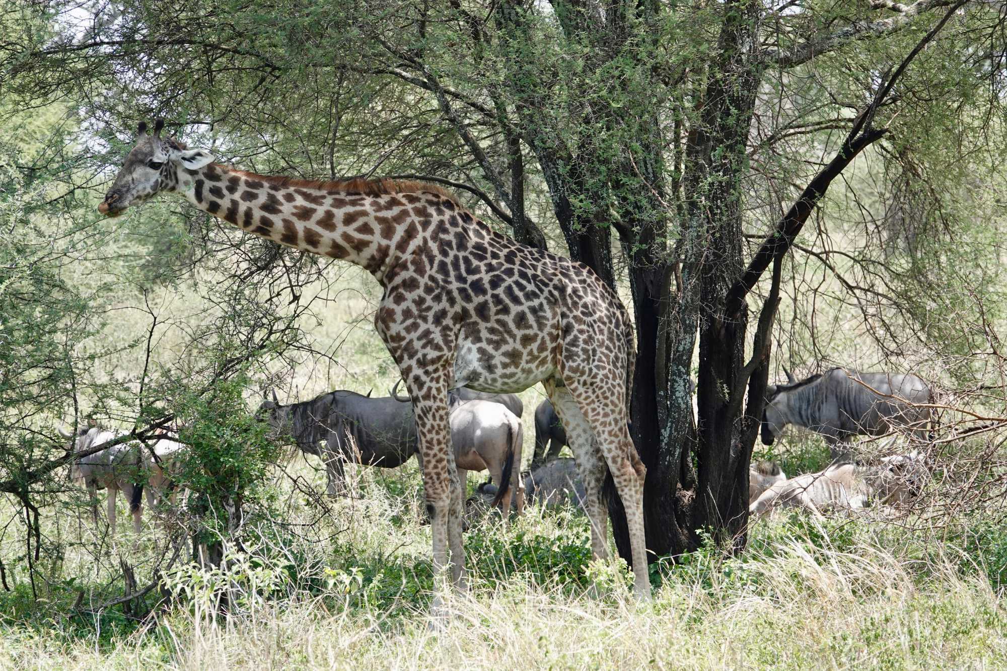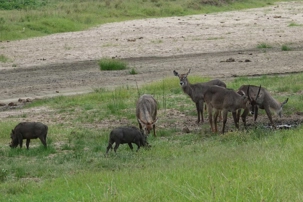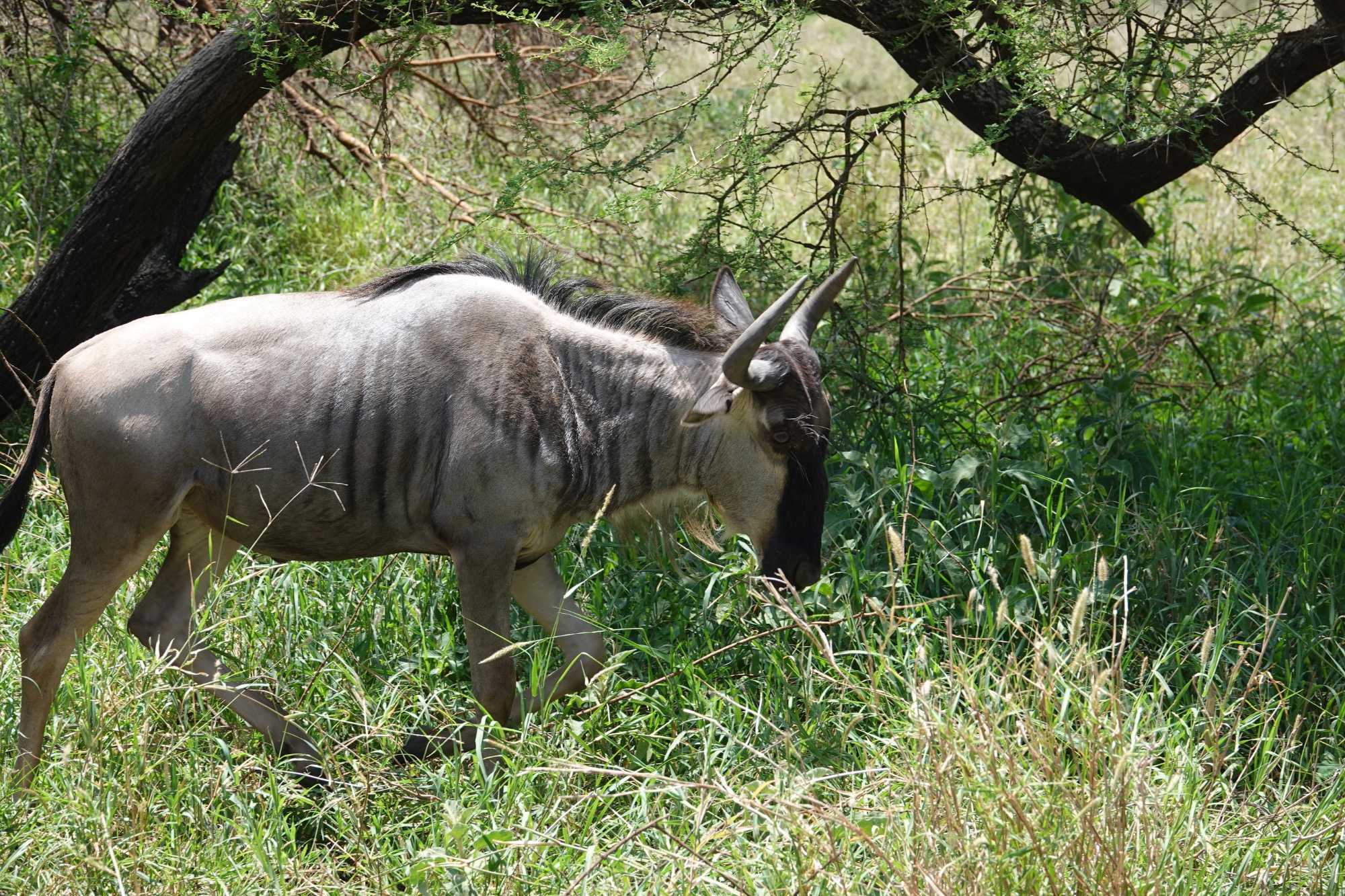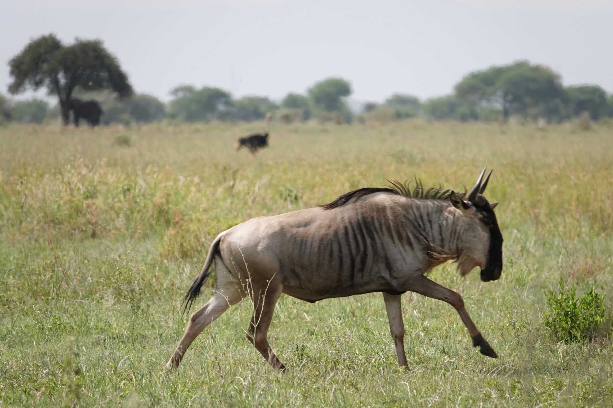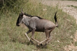 Nous observons aussi des antilopes, des girafes élégantes, des gnous, et de nombreux petits phacochères qui trottinent la queue droite, comme des antennes. L’Afrique se dévoile doucement.