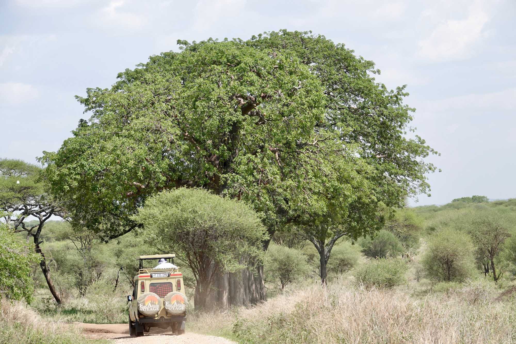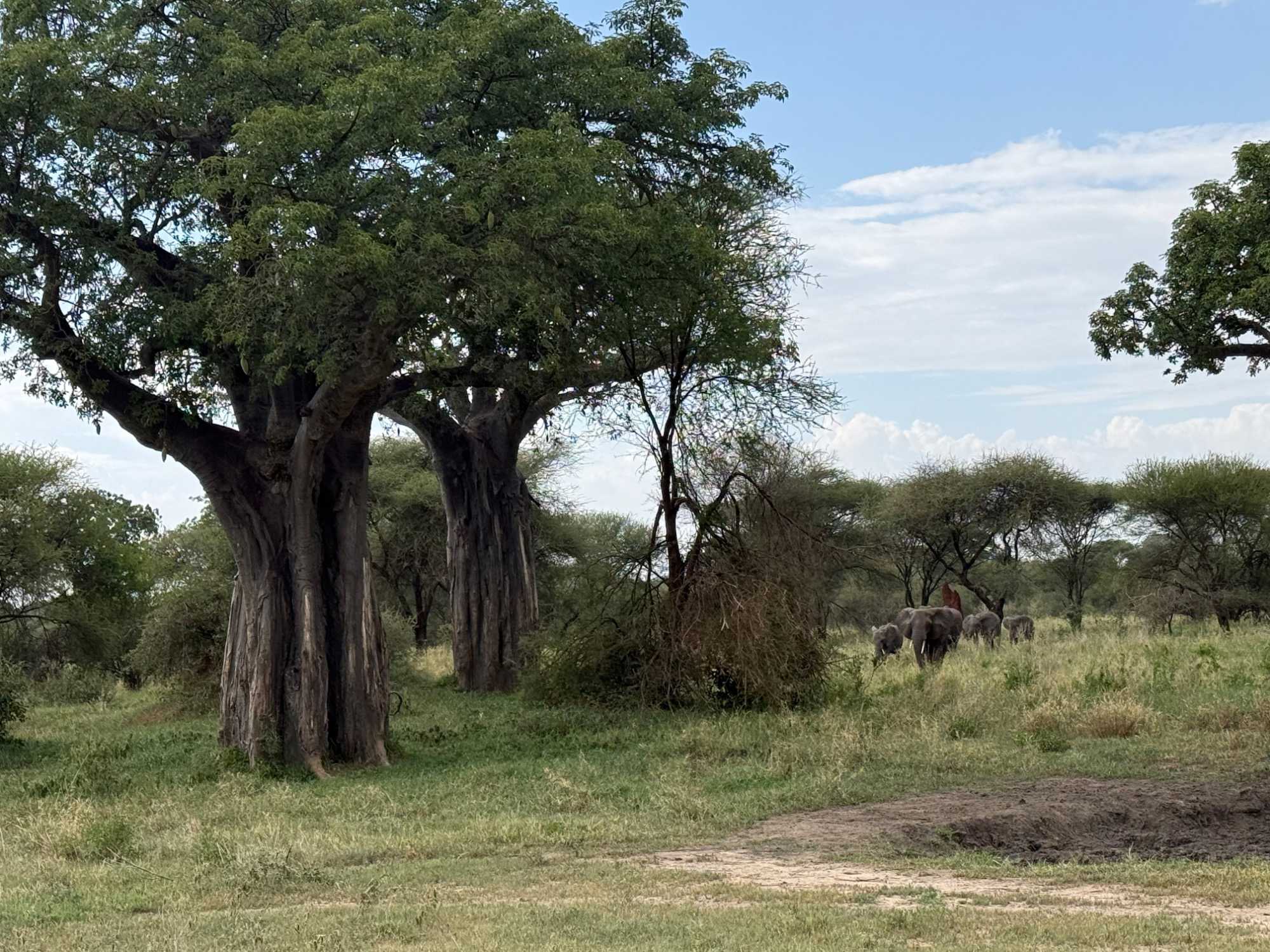 Tout au long de la journée, un autre élément nous impressionne : les paysages. Les baobabs, gigantesques, presque sculpturaux, dominent la savane. Ces arbres millénaires sont emblématiques de Tarangire. Leurs troncs massifs et leurs silhouettes uniques donnent au parc une atmosphère presque mystique.