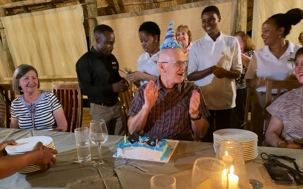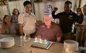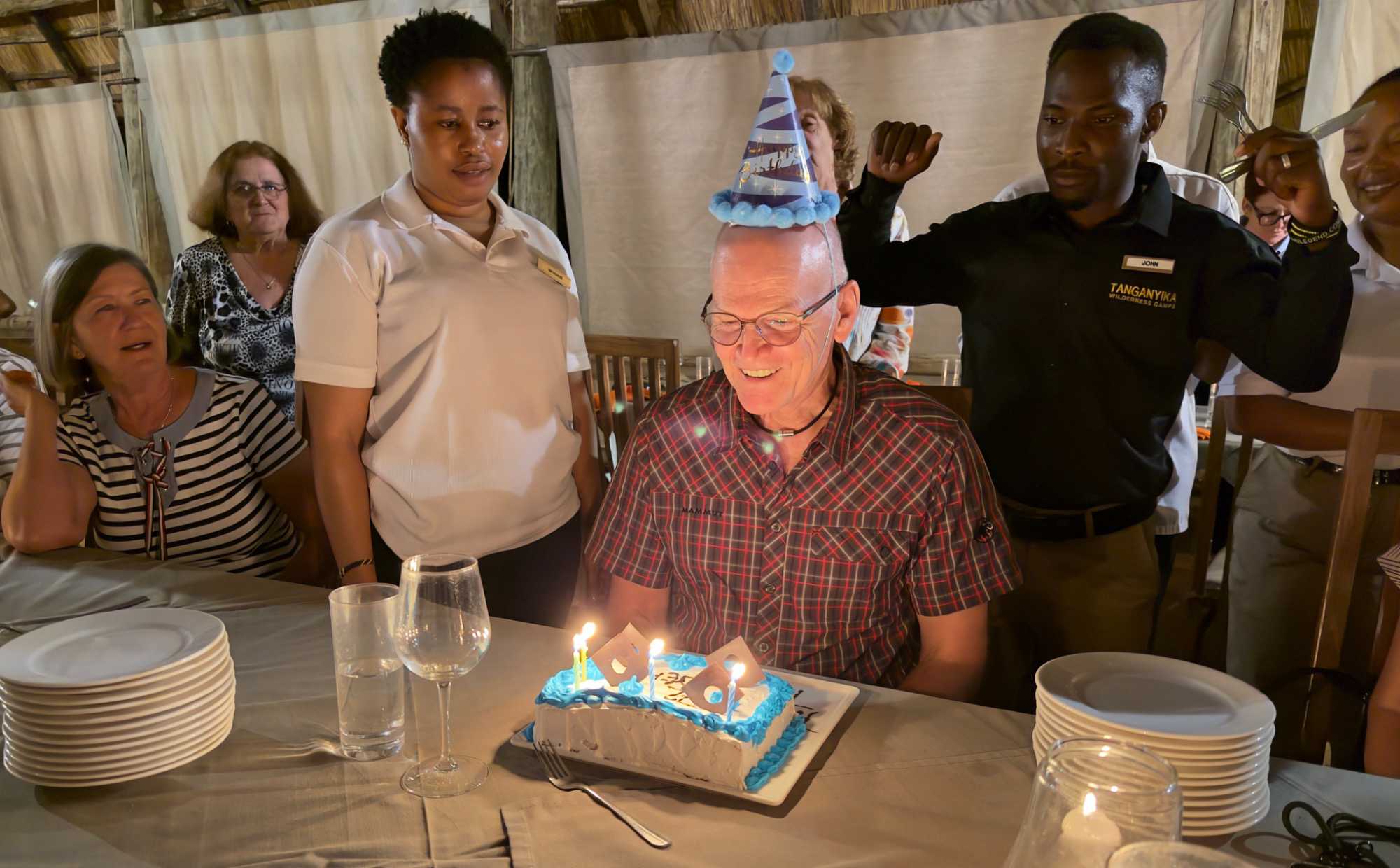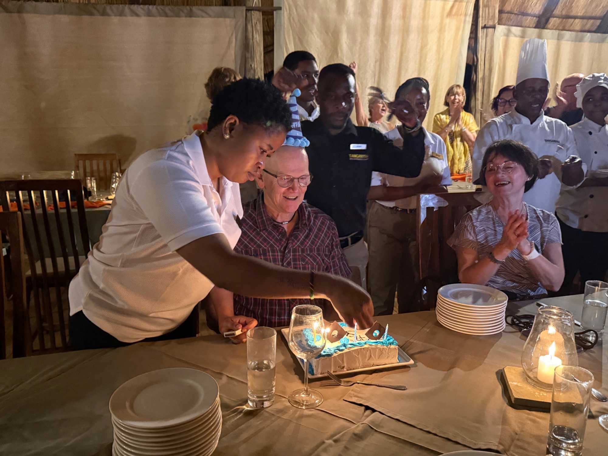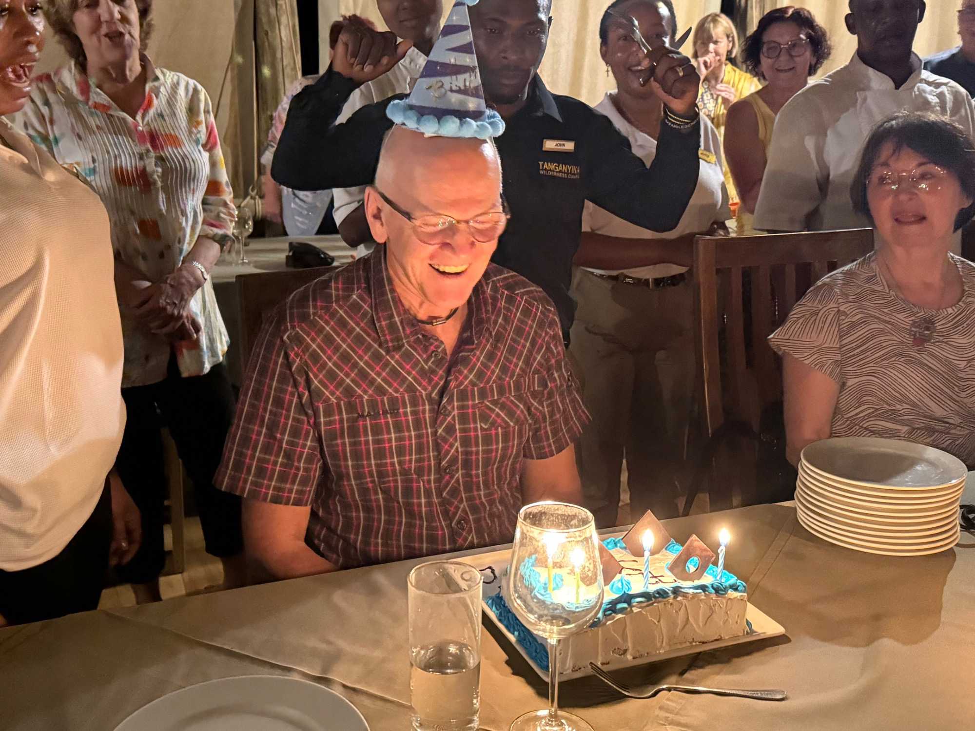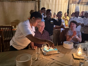 Avec la complicité de notre fournisseur ici en Tanzanie, nous avions discrètement organisé une petite surprise pour notre jubilé du jour : Michel, qui fête son anniversaire.