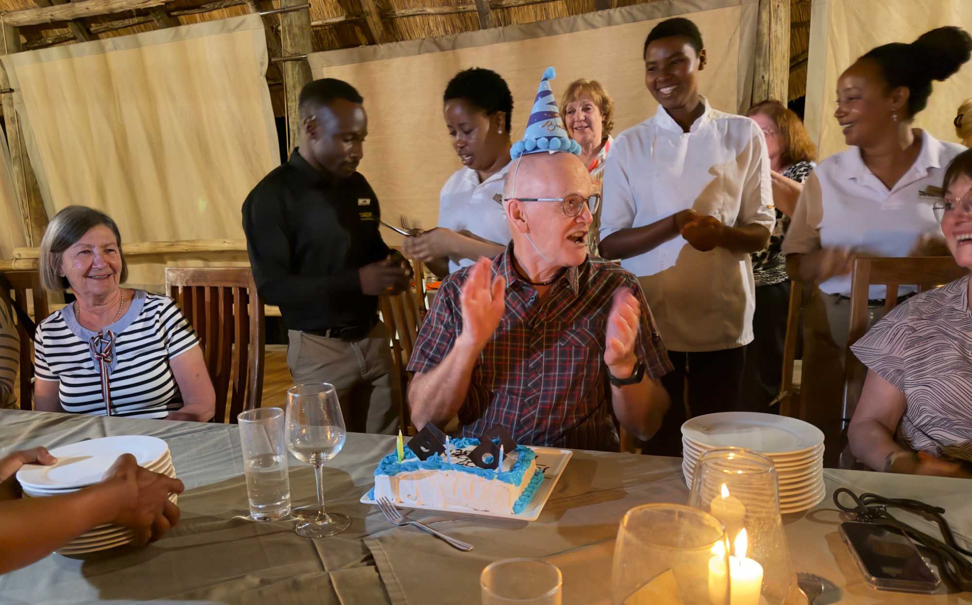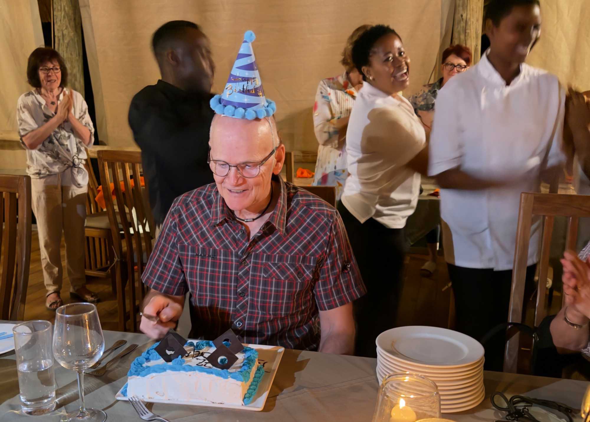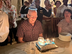 Je crois que Lise s’est empressée, après la fête, de lui envoyer des photos et les vidéos que j’ai prises de cette surprise africaine, afin de rassurer leur petite-fille : son grand-papa n’était pas seul… il était entouré, chanté et célébré comme il se doit 🥰.