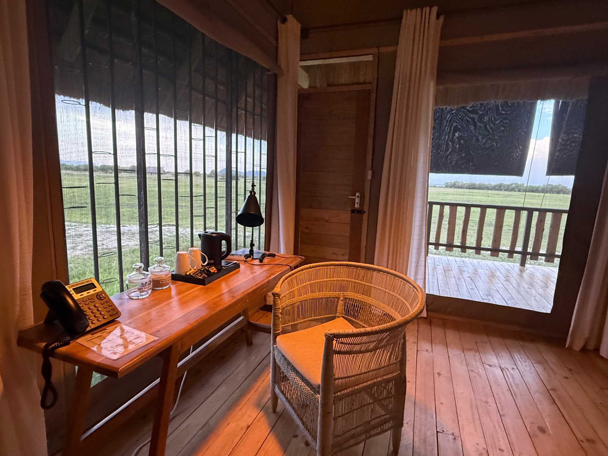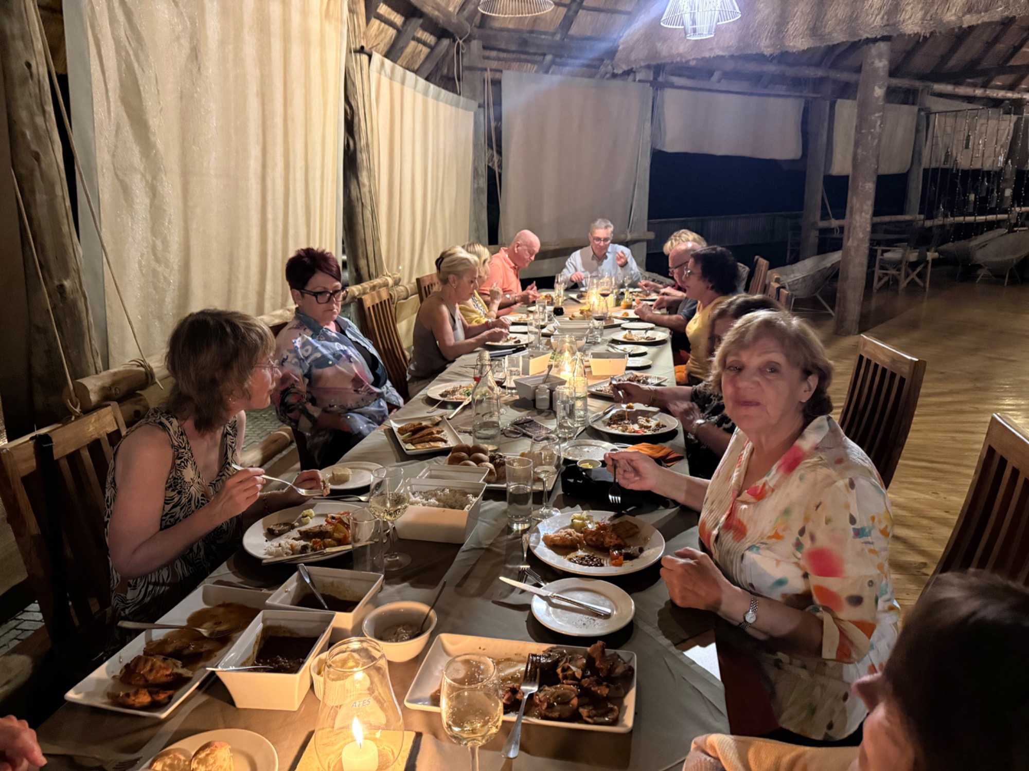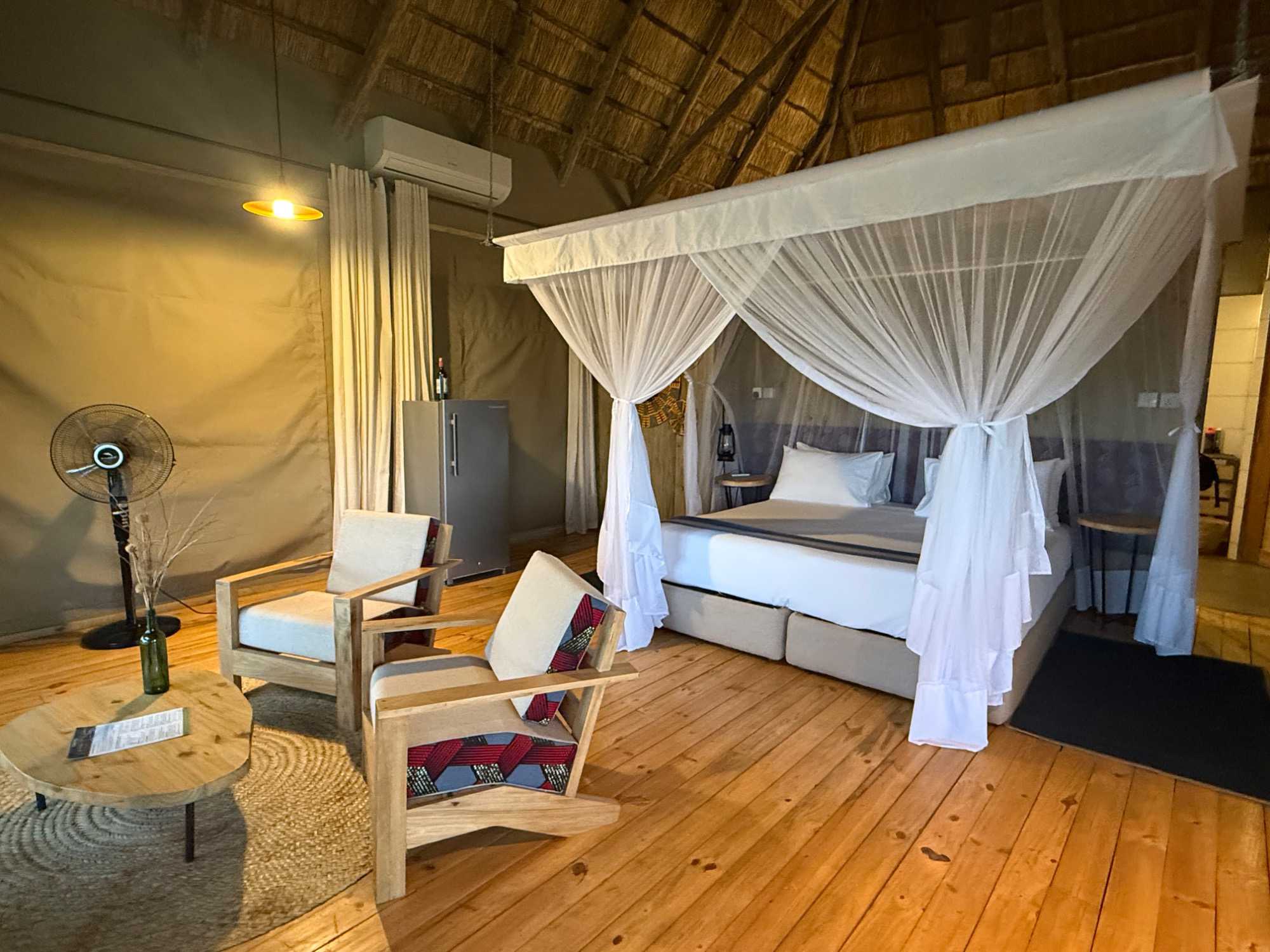 Le lodge est récent, élégant, et le majestueux baobab trône fièrement au cœur de la réception et de la salle à manger. Nous nous installons dans nos magnifiques villas privées, puis nous nous retrouvons pour le souper.