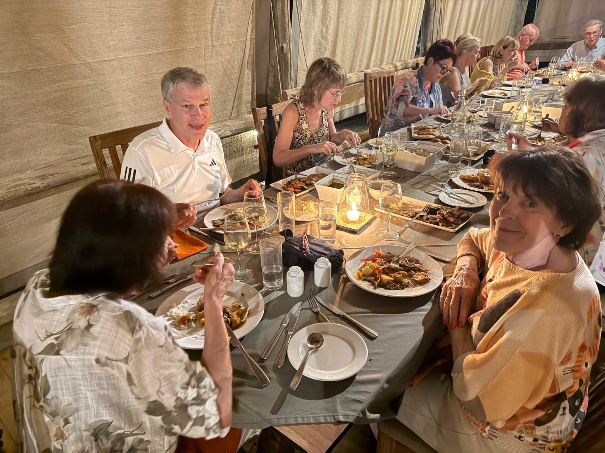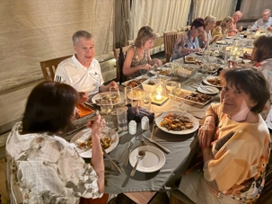 Ce soir-là, le repas est servi sous une formule conviviale et chaleureuse : des plats déposés au centre de la table, à partager. Une vraie ambiance de famille. Nous goûtons, nous échangeons, nous rions. Après une journée comme celle-ci, tout semble encore meilleur.