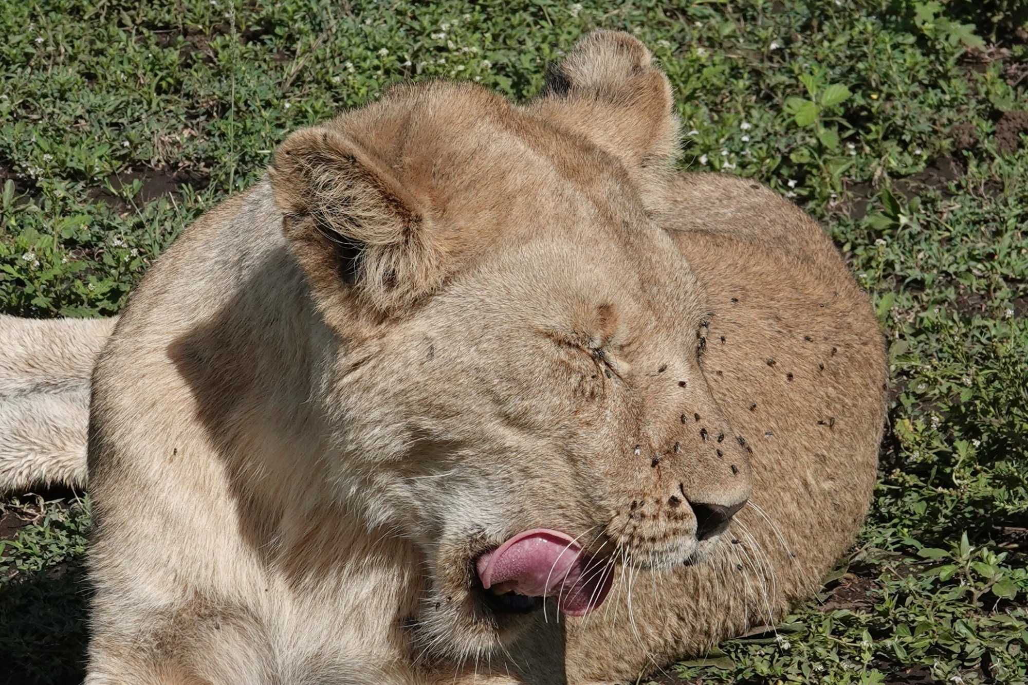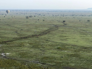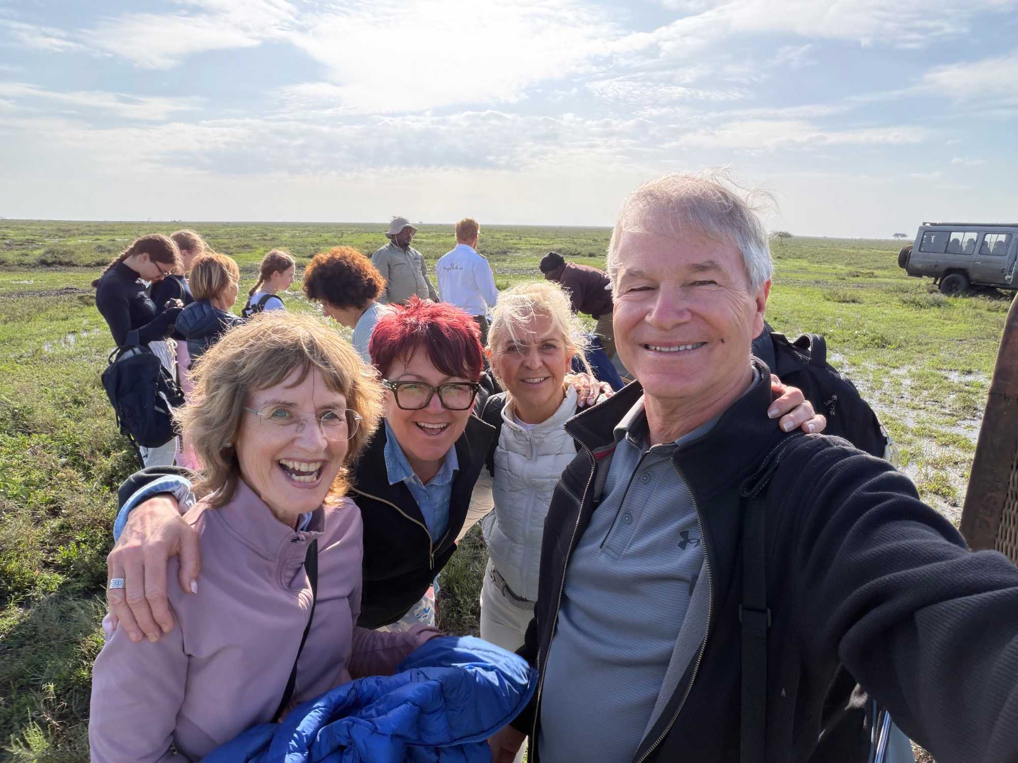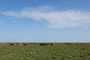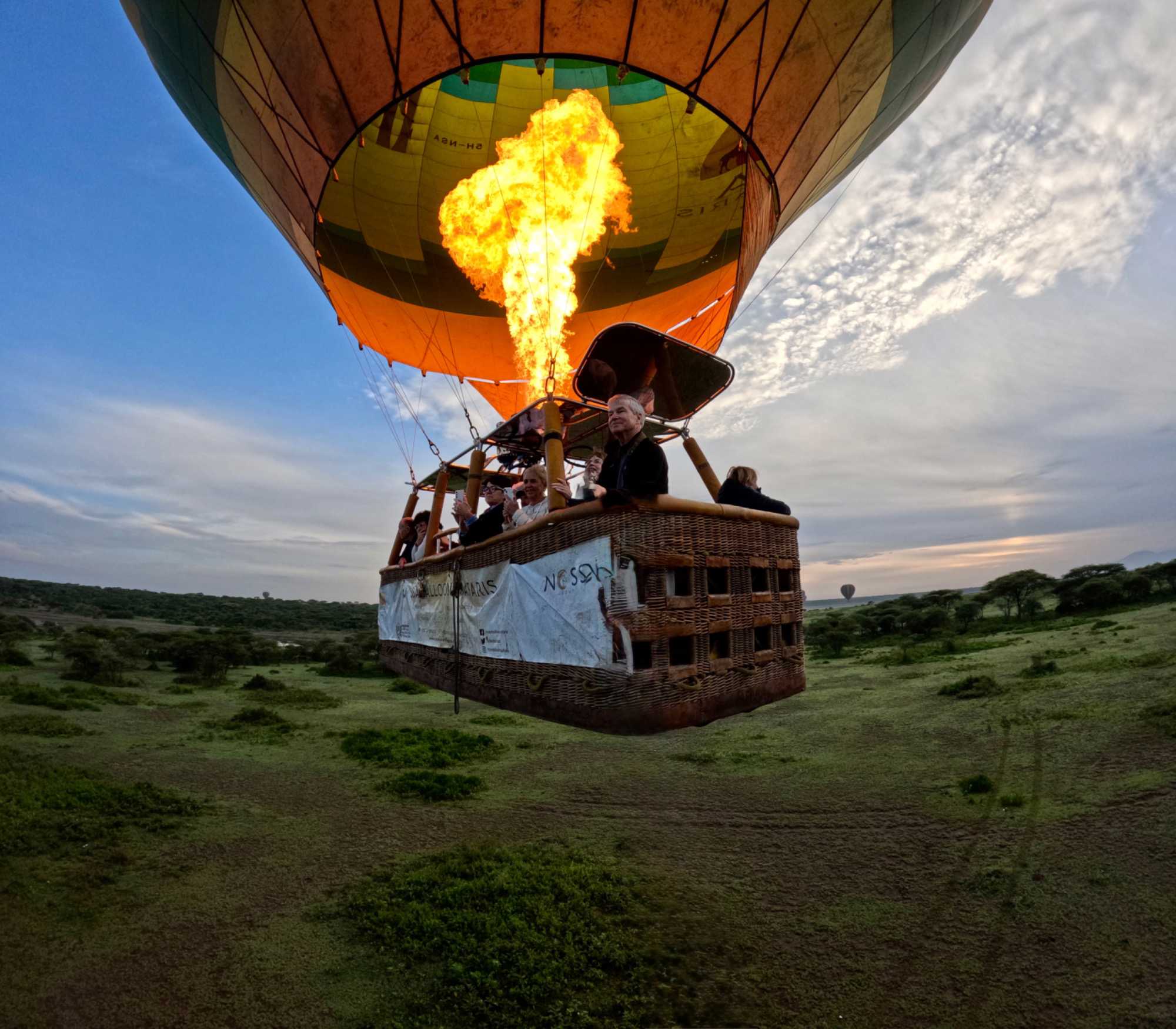 En ce beau matin du 18 février, la journée débute différemment pour certains membres du groupe. Quatre de nos voyageurs ont choisi de vivre l’expérience unique de la montgolfière au-dessus des plaines de Ndutu. Leur réveil a été bien plus matinal que le nôtre. Avant même les premières lueurs complètes du jour, ils partaient vers leur site de décollage afin d’admirer la grande migration vue du ciel. Imaginer ces milliers de gnous et de zèbres, ces silhouettes d’arbres acacias, ces taches sombres d’animaux sauvages se dessinant dans la lumière dorée du lever du soleil… quelle expérience exceptionnelle.