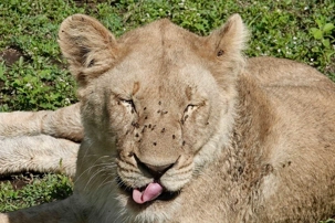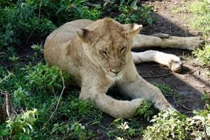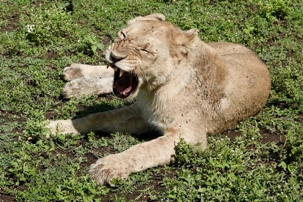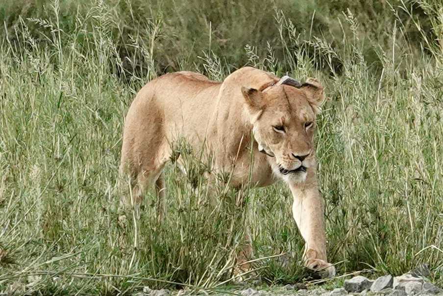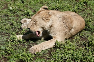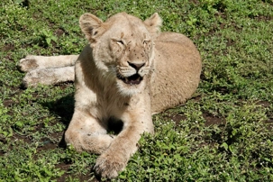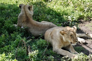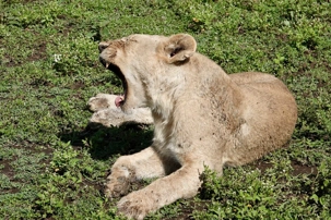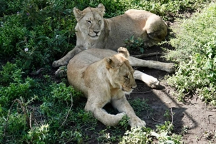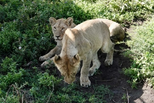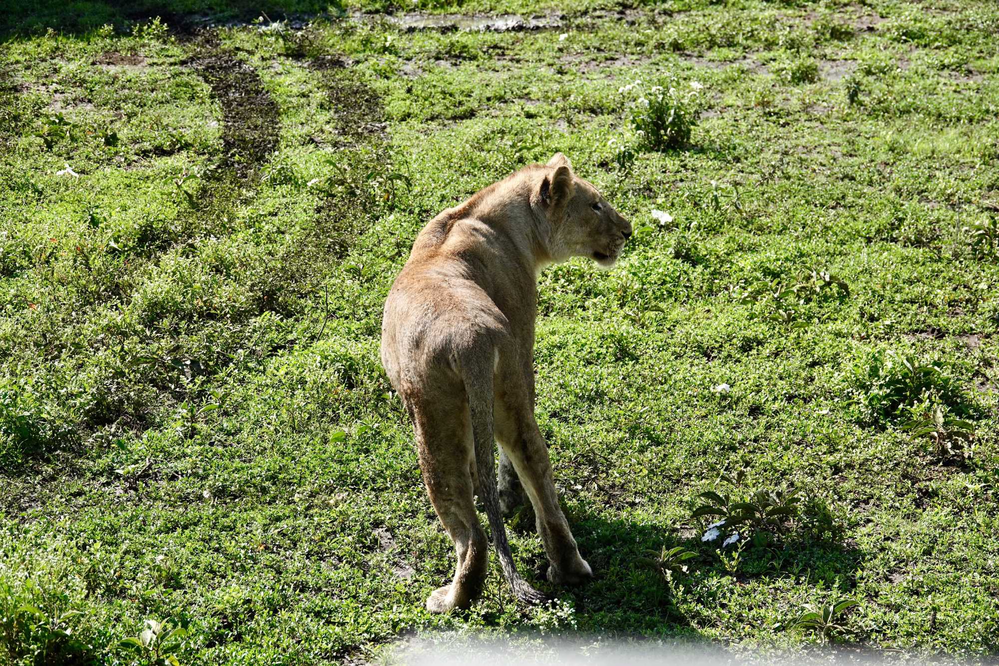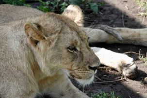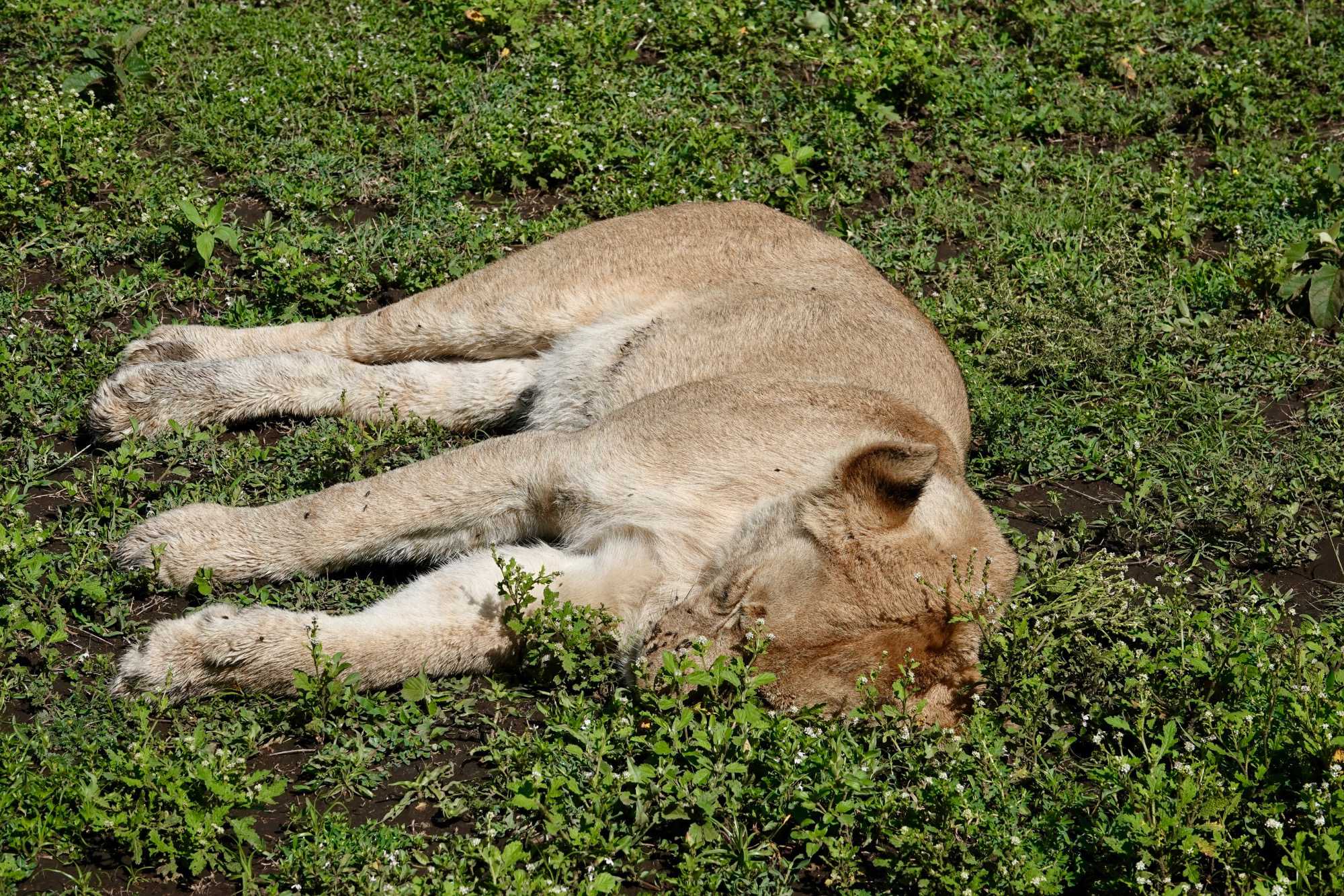 Nous avons poursuivi notre route et, une fois de plus, la chance était de notre côté. Nous sommes tombés sur un groupe de quatre lionnes, paisiblement étendues dans la savane. À notre arrivée, trois d’entre elles se trouvaient déjà réunies, s’étirant langoureusement, se prélassant au soleil et profitant d’un moment de repos bien mérité, tandis qu’une quatrième se tenait légèrement à l’écart. Après quelques instants, celle-ci a décidé de rejoindre les autres pour se coucher près d’elles et s’étirer à son tour. Nous avons eu tout le loisir de les admirer : elles étaient magnifiques, offrant des images saisissantes de grâce et de puissance. En les observant, je ne peux m’empêcher de penser à nos chats à la maison — je pense souvent aux miens — car malgré leur taille impressionnante, ces grands félins ont les mêmes petits gestes familiers : la façon de se rouler, de jouer, de s’étirer ou d’échanger un regard complice. C’est toujours fascinant de reconnaître, chez ces majestueuses lionnes, les attitudes si semblables à celles de nos félins domestiques.