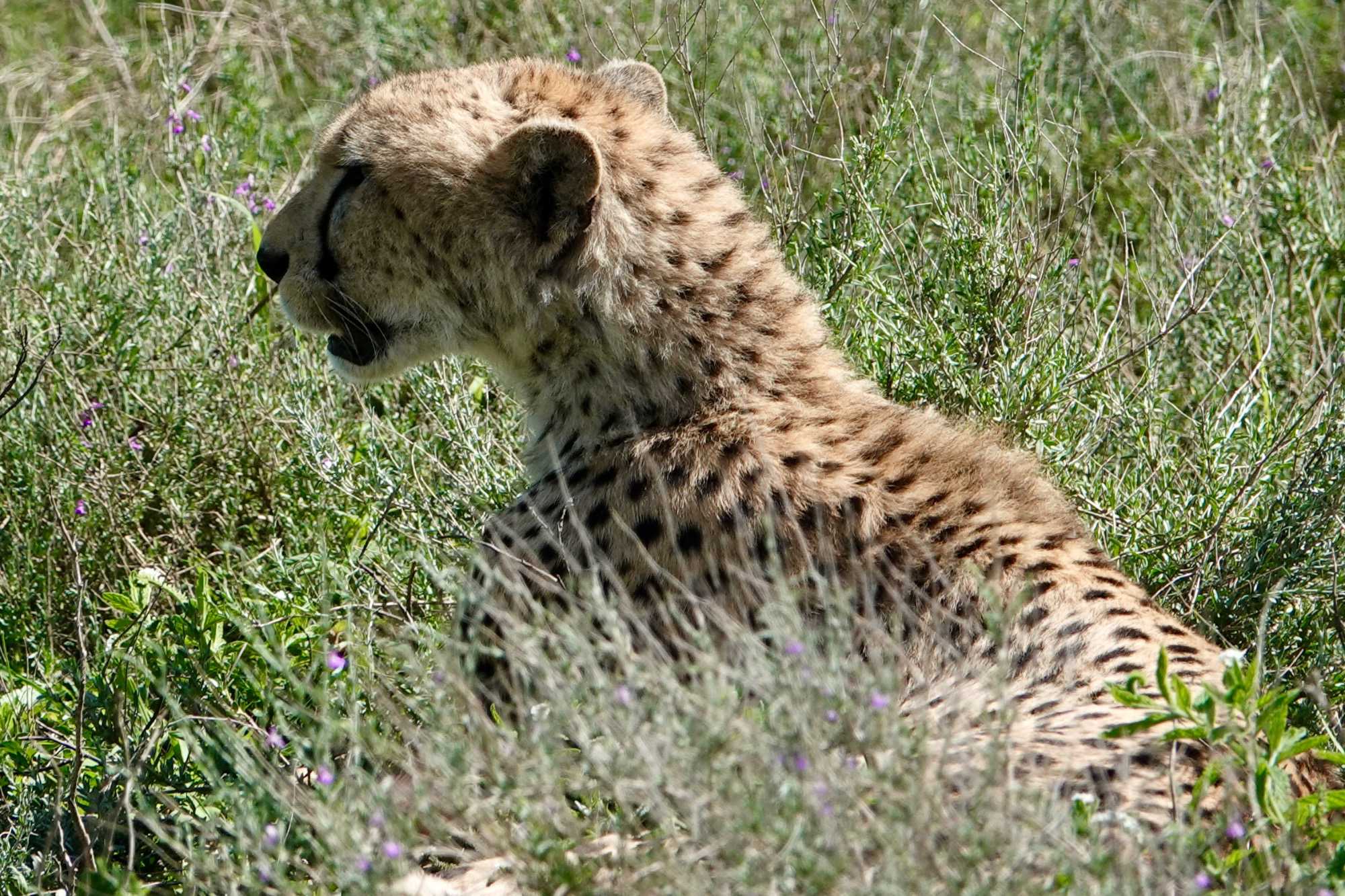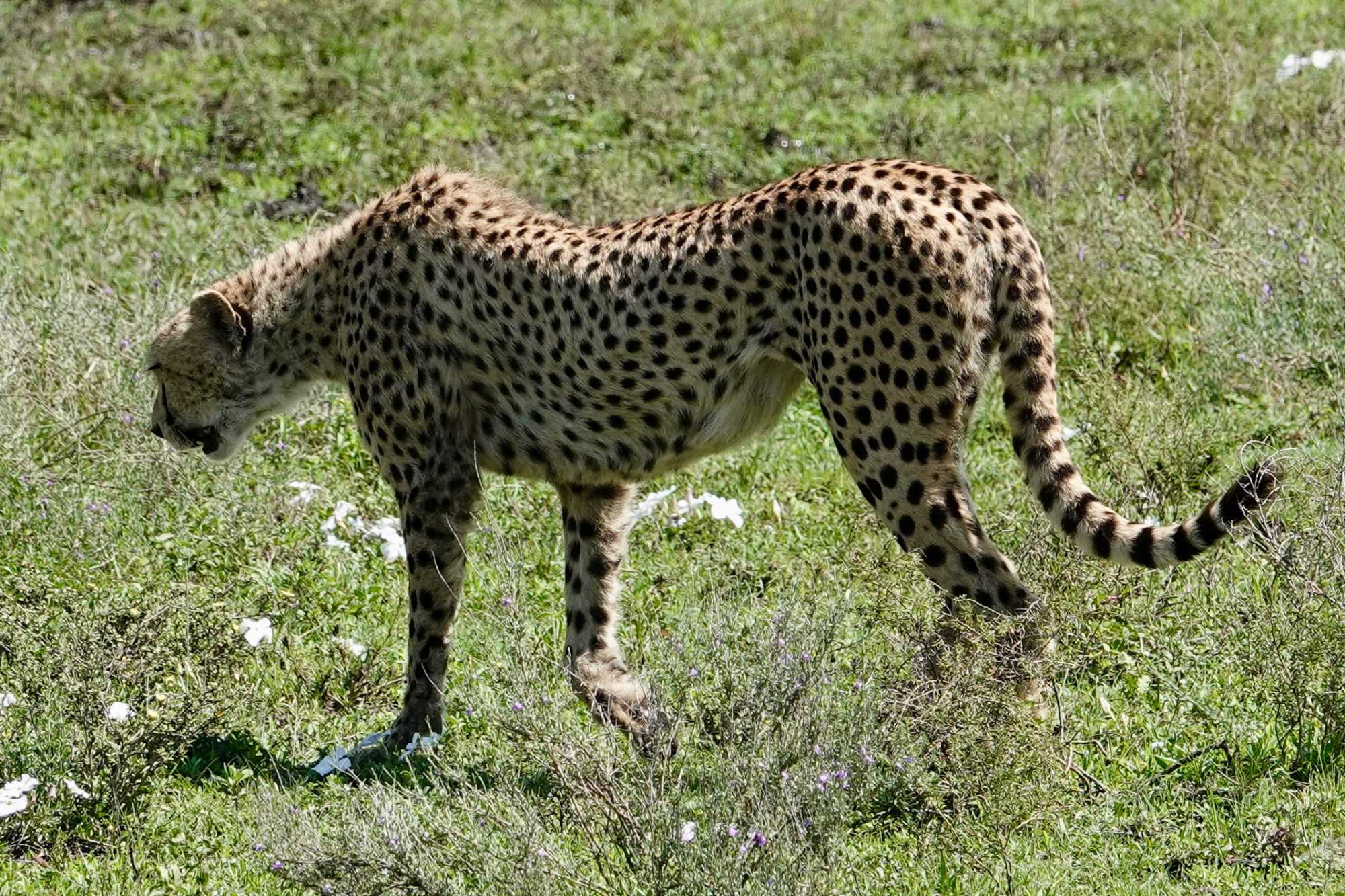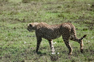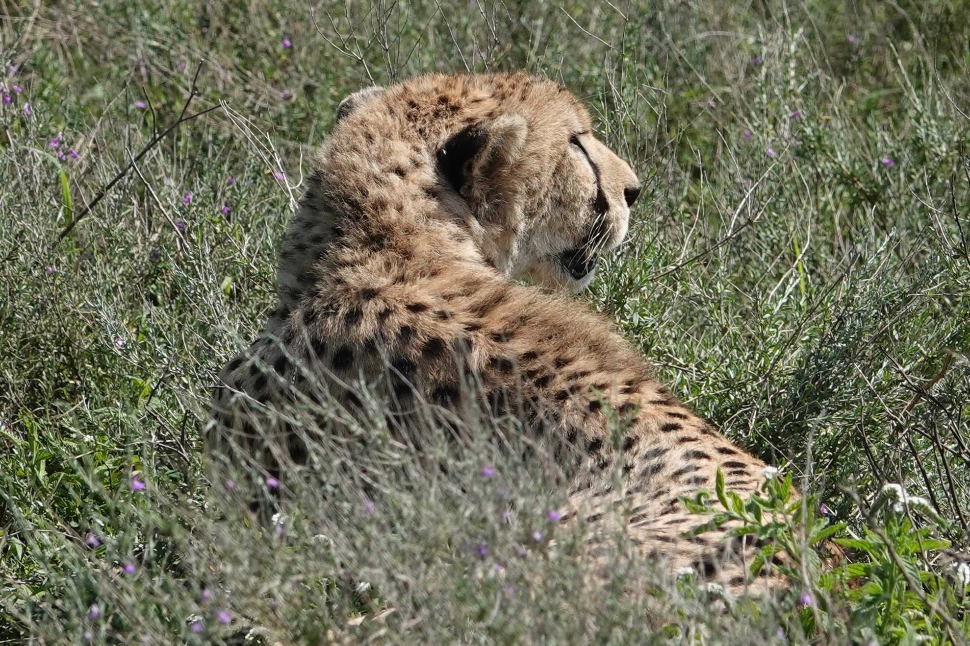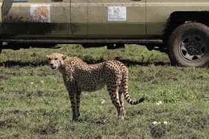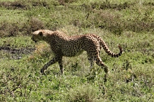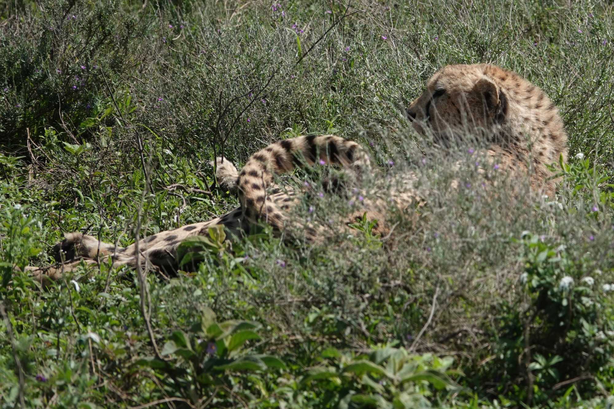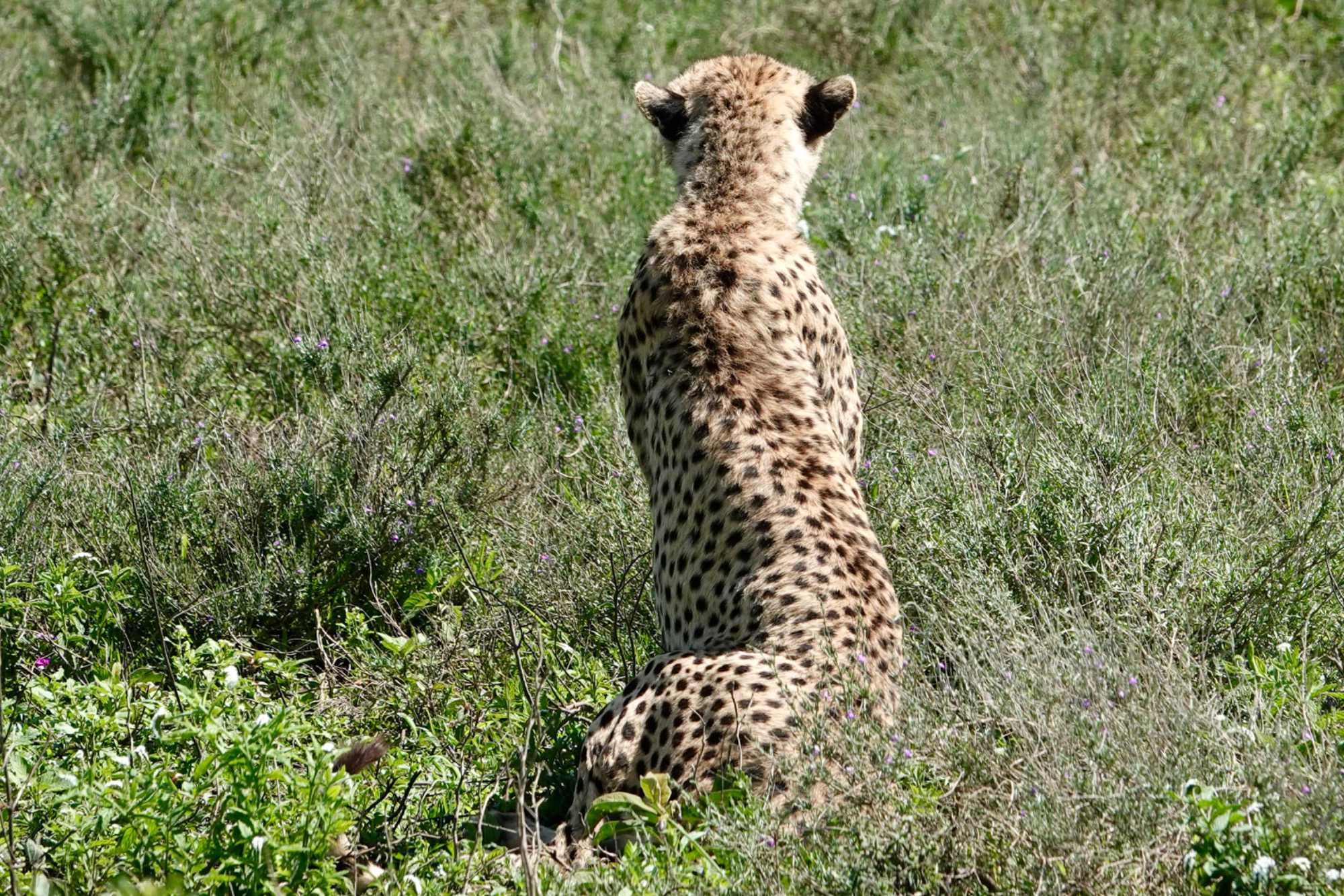 Nous poursuivons notre route et retrouvons zèbres, girafes et autres herbivores qui parsèment la savane. Puis un autre moment fort : un guépard. Élancé, gracieux, avec cette démarche si particulière qui le distingue des autres félins. Les appareils photo crépitent encore une fois.