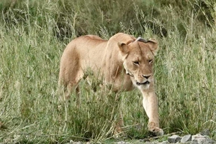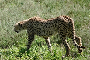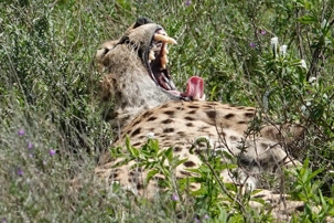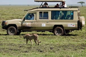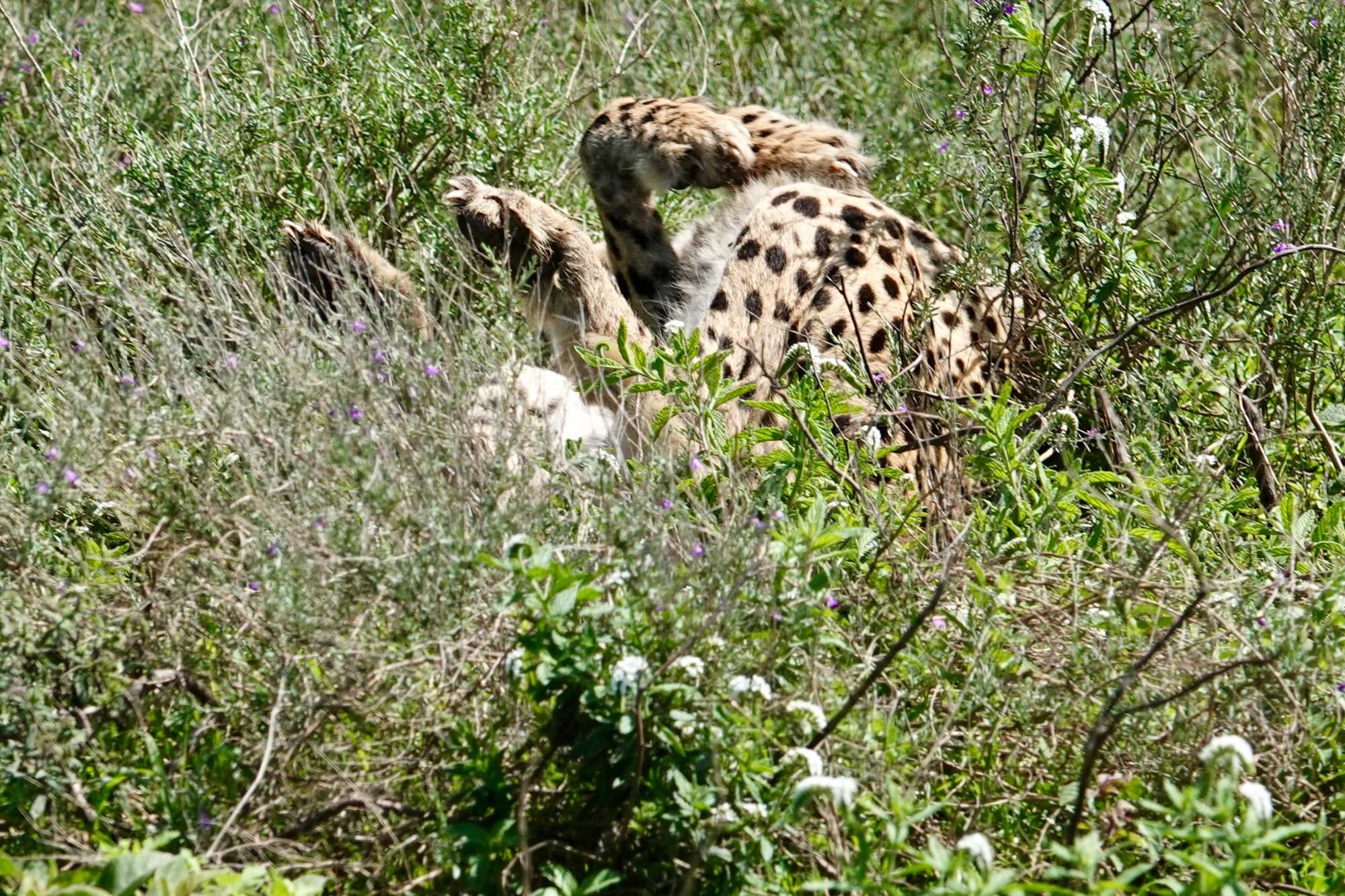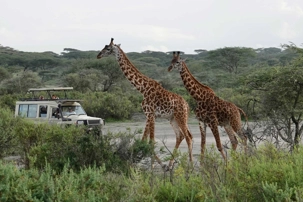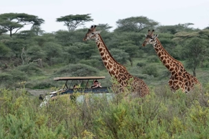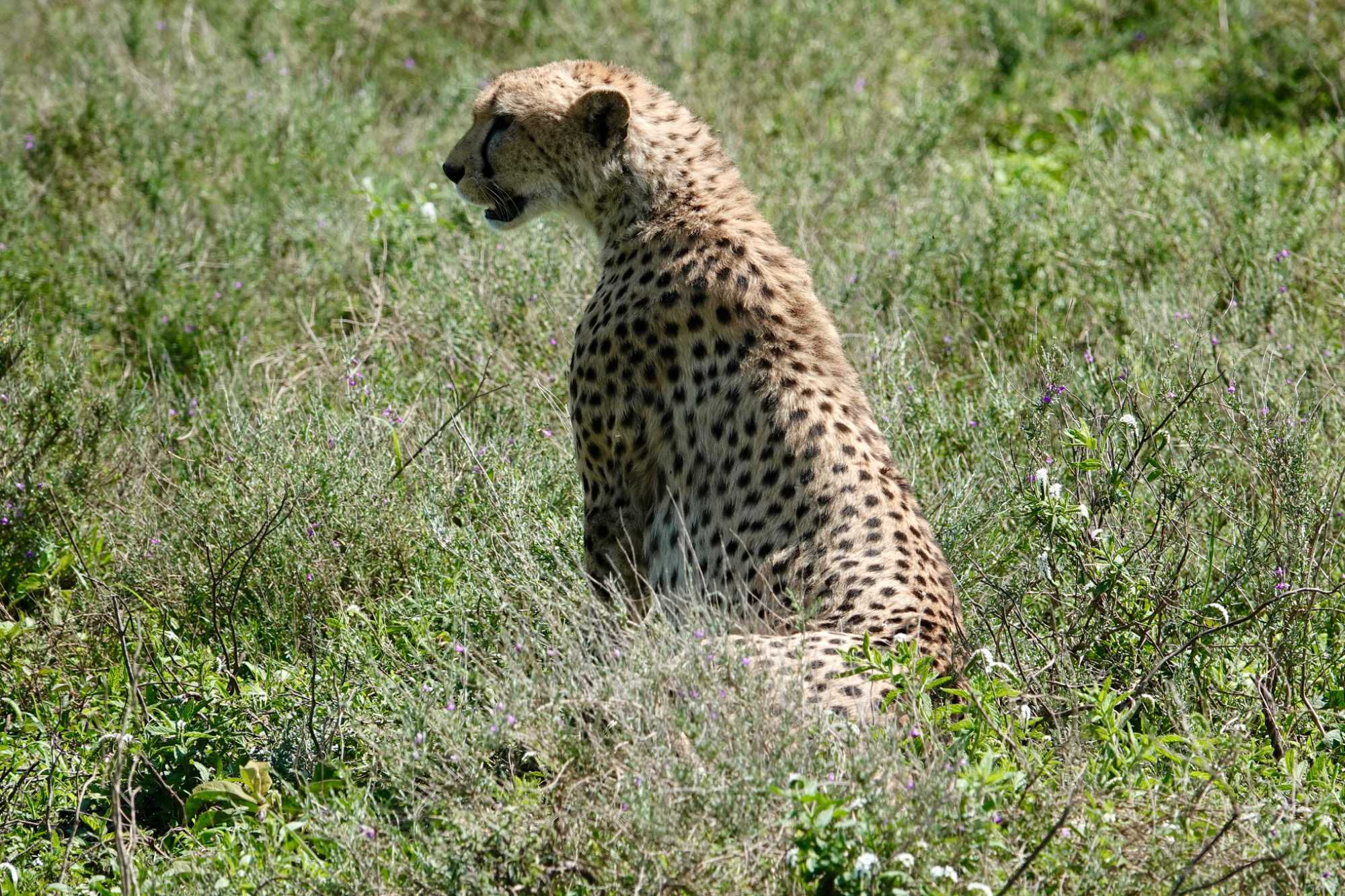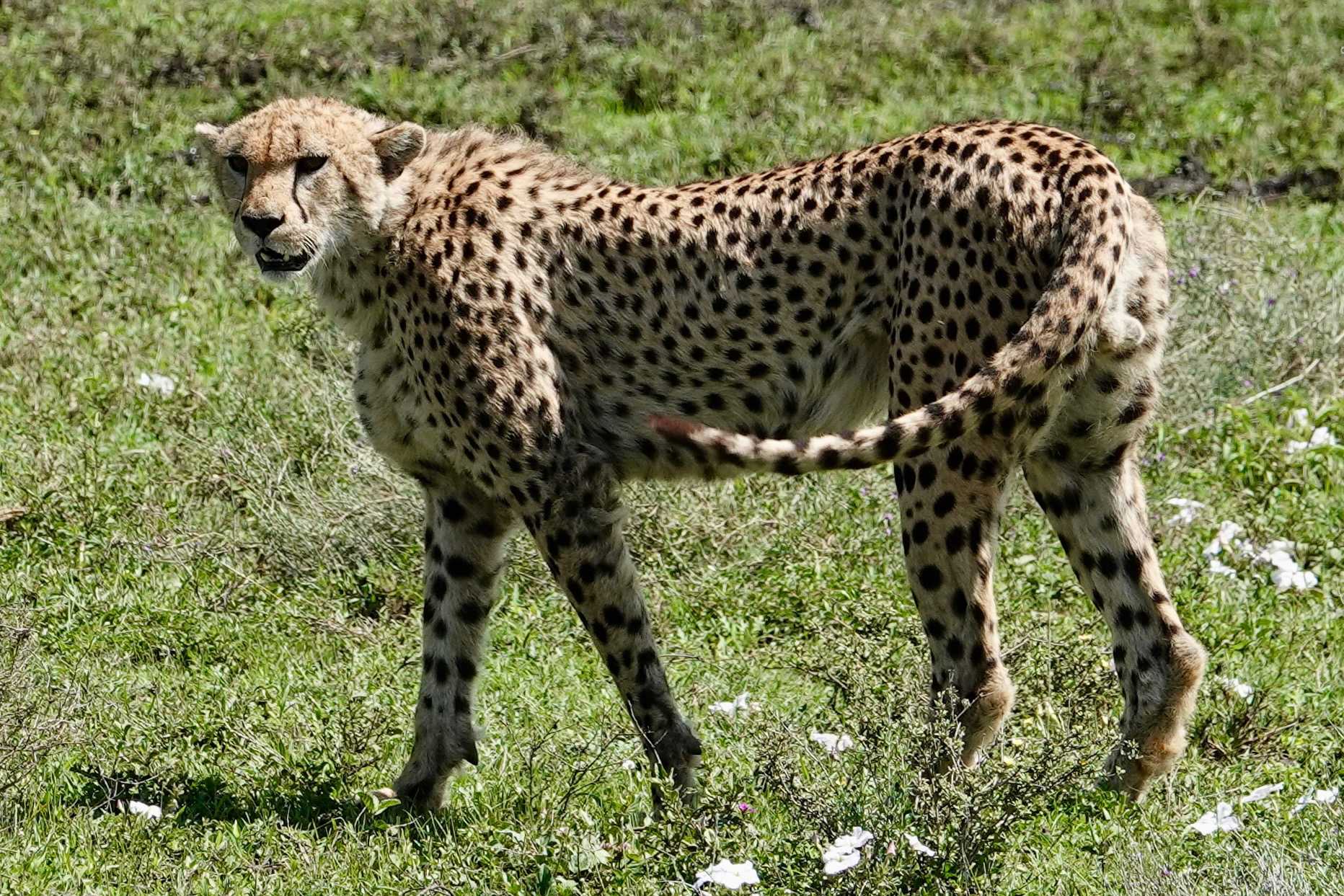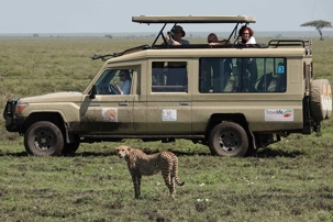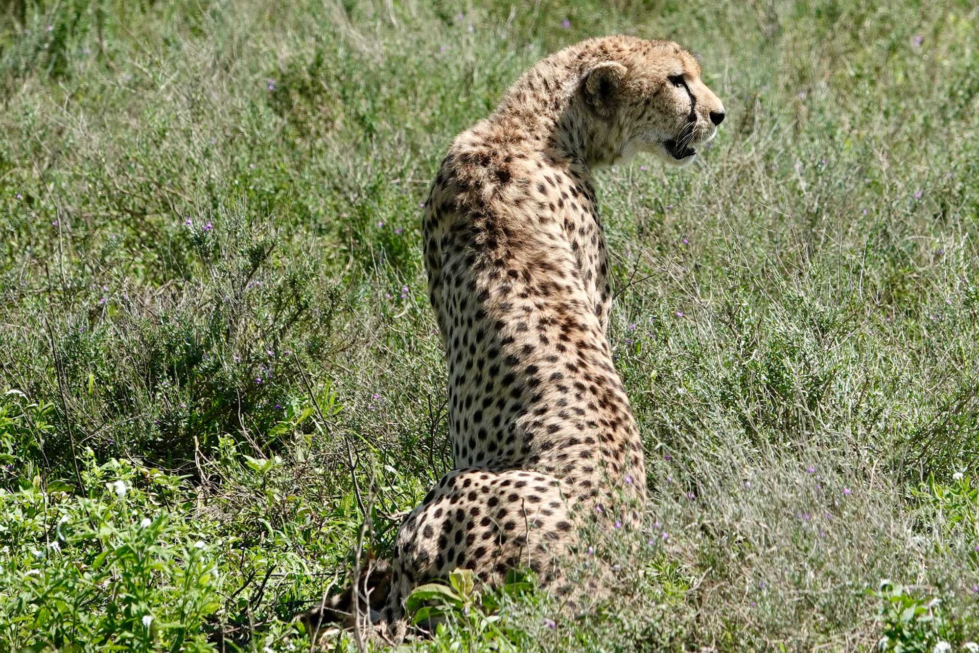 Nous poursuivons notre route et retrouvons zèbres, girafes et autres herbivores qui parsèment la savane. Puis un autre moment fort : un guépard. Élancé, gracieux, avec cette démarche si particulière qui le distingue des autres félins. Les appareils photo crépitent encore une fois.