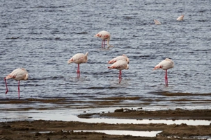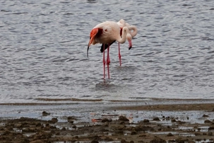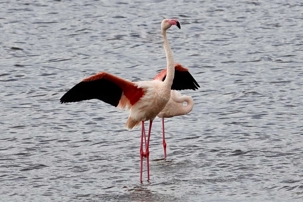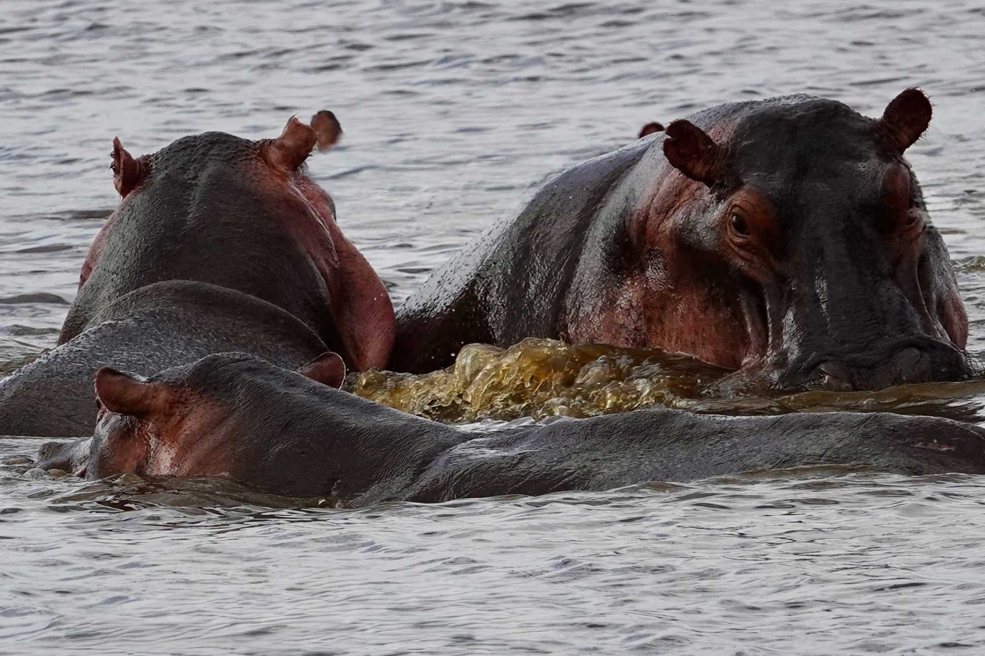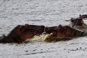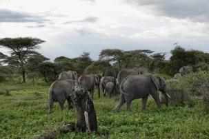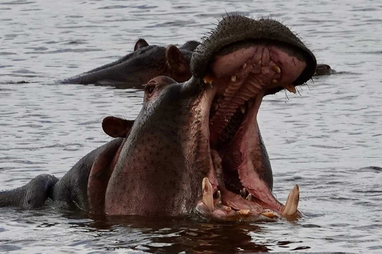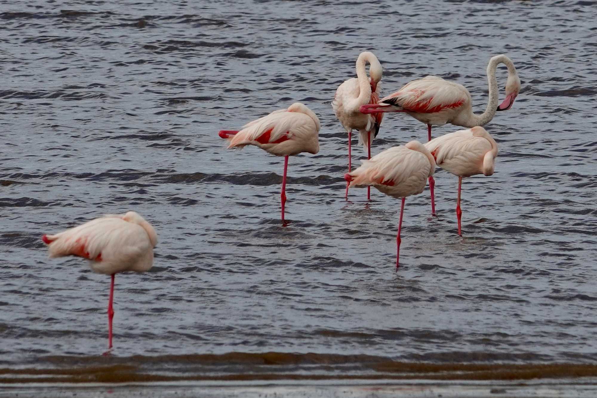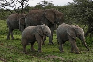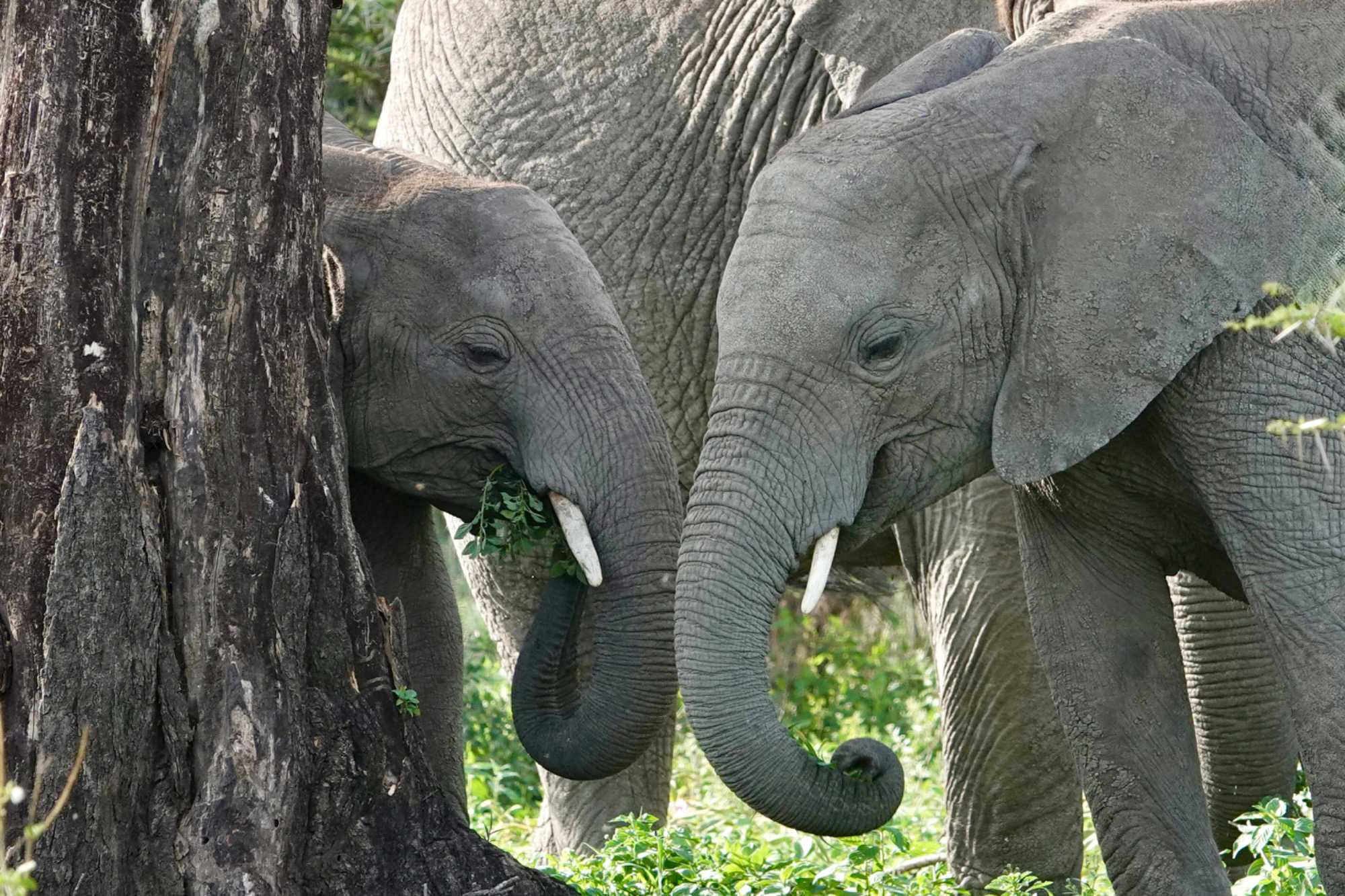 À peine avions-nous quitté notre lodge que nous retrouvions les charmantes gazelles de Thomson, présentes en grand nombre dans la savane. Puis, près d’un point d’eau, un spectacle enchanteur nous attendait : de magnifiques flamants roses, certains au repos, d’autres déployant leurs ailes dans une élégance parfaite. Un peu plus loin, un groupe d’hippopotames se prélassait dans l’eau, où ils passent une bonne partie de la journée pour se protéger du soleil avant de sortir, à la tombée de la nuit, pour brouter. Quelques-uns nous ont même dévoilé leur impressionnante mâchoire. Nous avons ensuite aperçu une lionne solitaire longeant le plan d’eau, nous offrant de superbes photos, avant de croiser plusieurs girafes s’alimentant paisiblement. L’une d’elles nous a permis d’observer la délicate manœuvre pour boire : un mouvement spectaculaire et vulnérable, pendant qu’une autre montait la garde. Un magnifique enchaînement de scènes sauvages, comme autant de clins d’œil de la nature. Nous rencontrons alors un troupeau d’éléphants que nous n’avions pas encore vus dans cette région. Ils marchent librement, paisiblement, dans cette lumière spectaculaire. Des girafes se dessinent en arrière-plan, majestueuses. Les scènes sont dignes d’une carte postale.