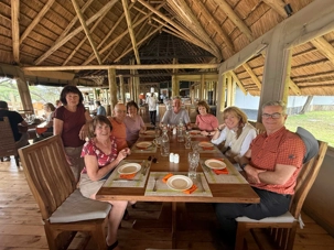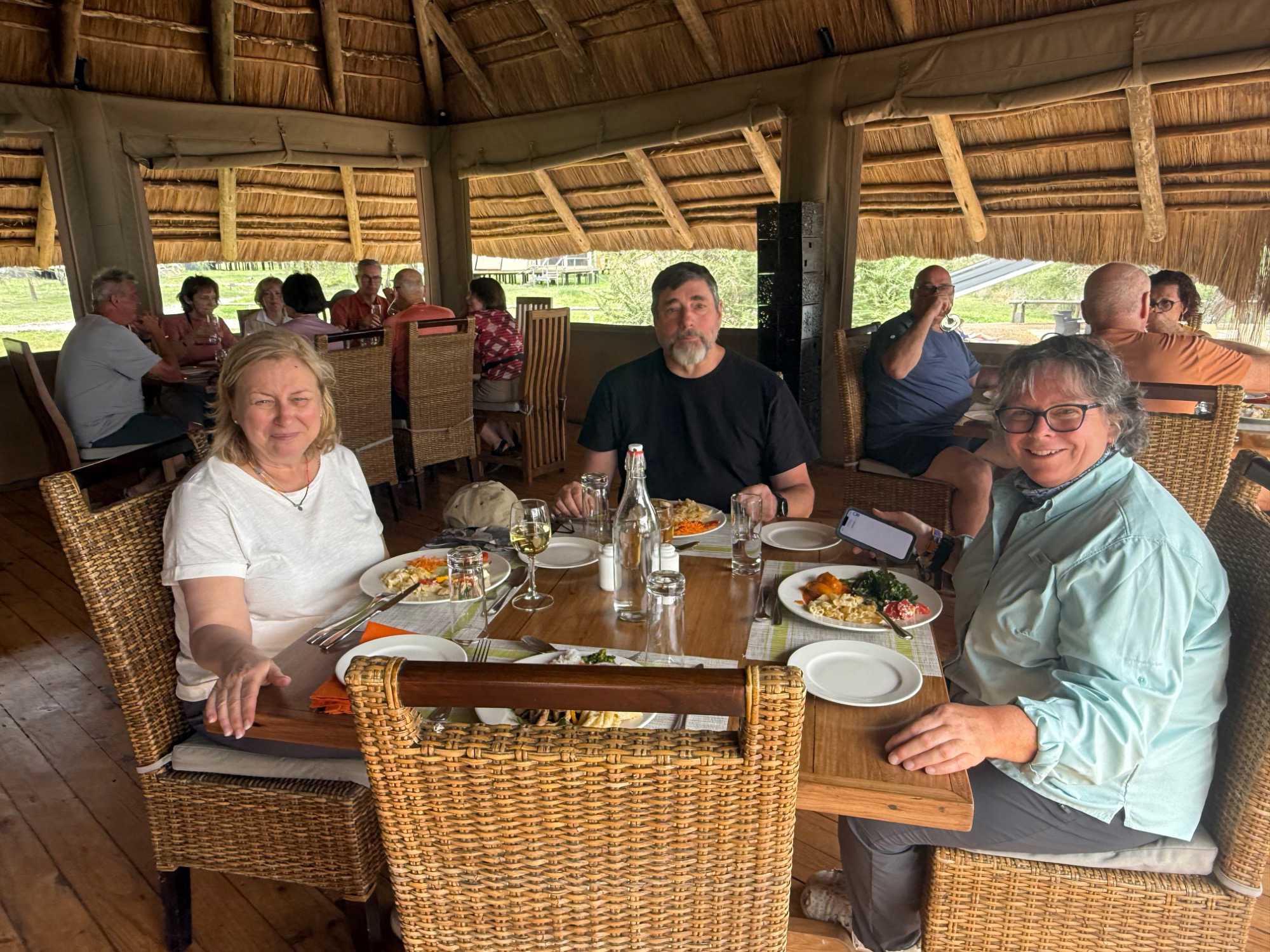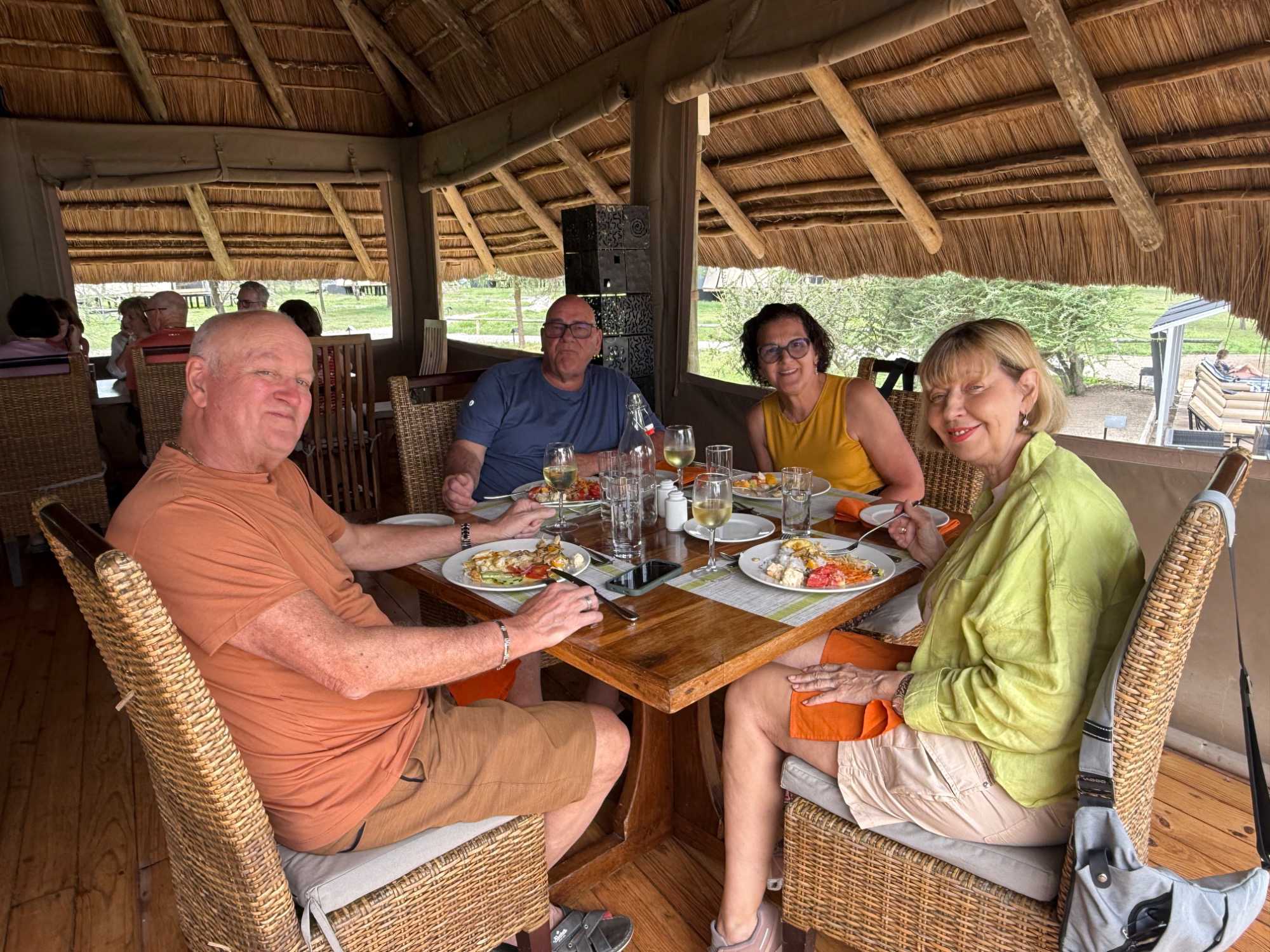 Et ce soir, au menu, une petite surprise : du phacochère — ce fameux “Pumba” du Roi Lion. Certains ont osé goûter, curieux de découvrir cette viande locale. D’autres ont préféré les nombreuses autres options proposées. Le repas, comme toujours, est excellent.