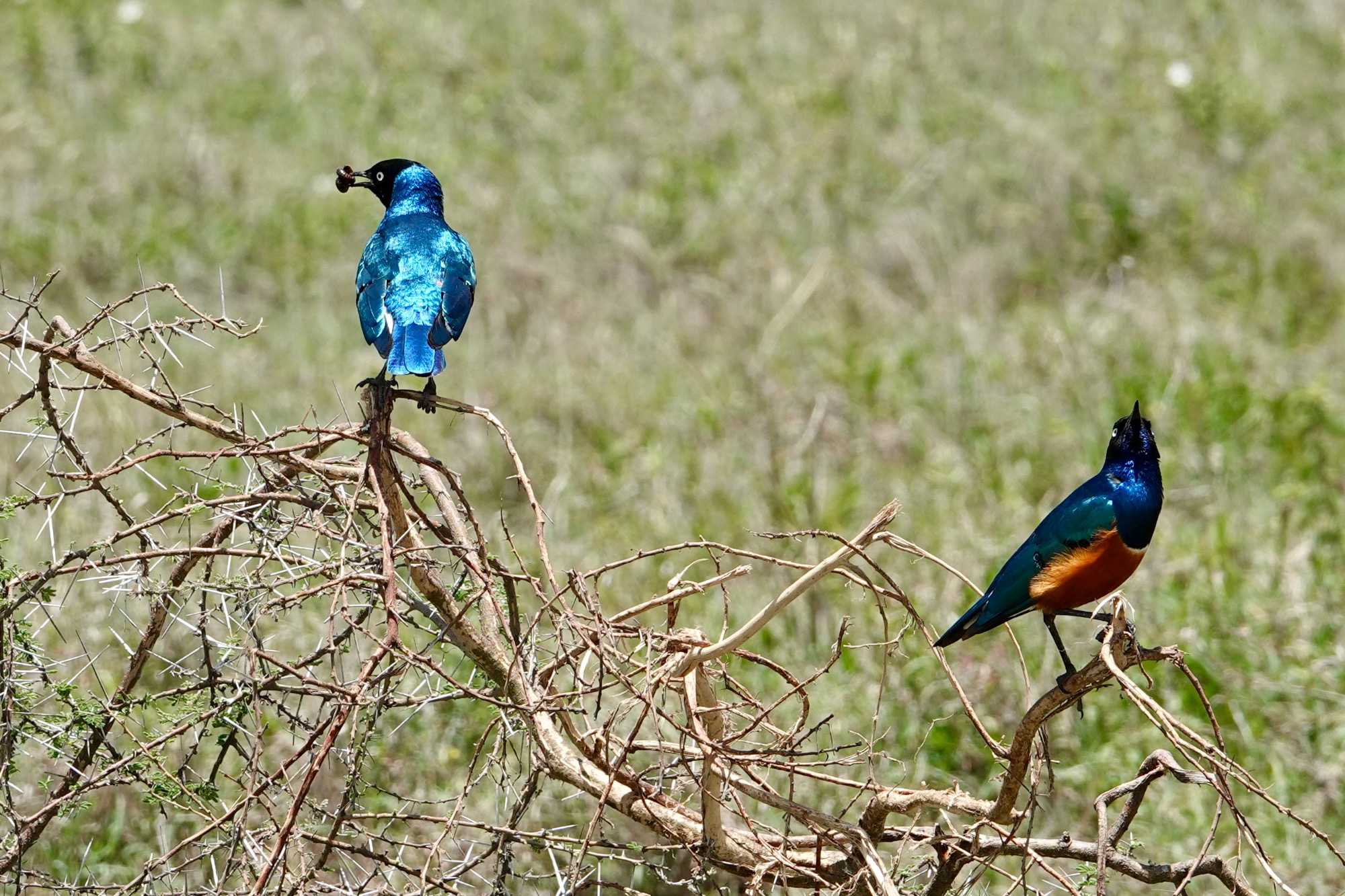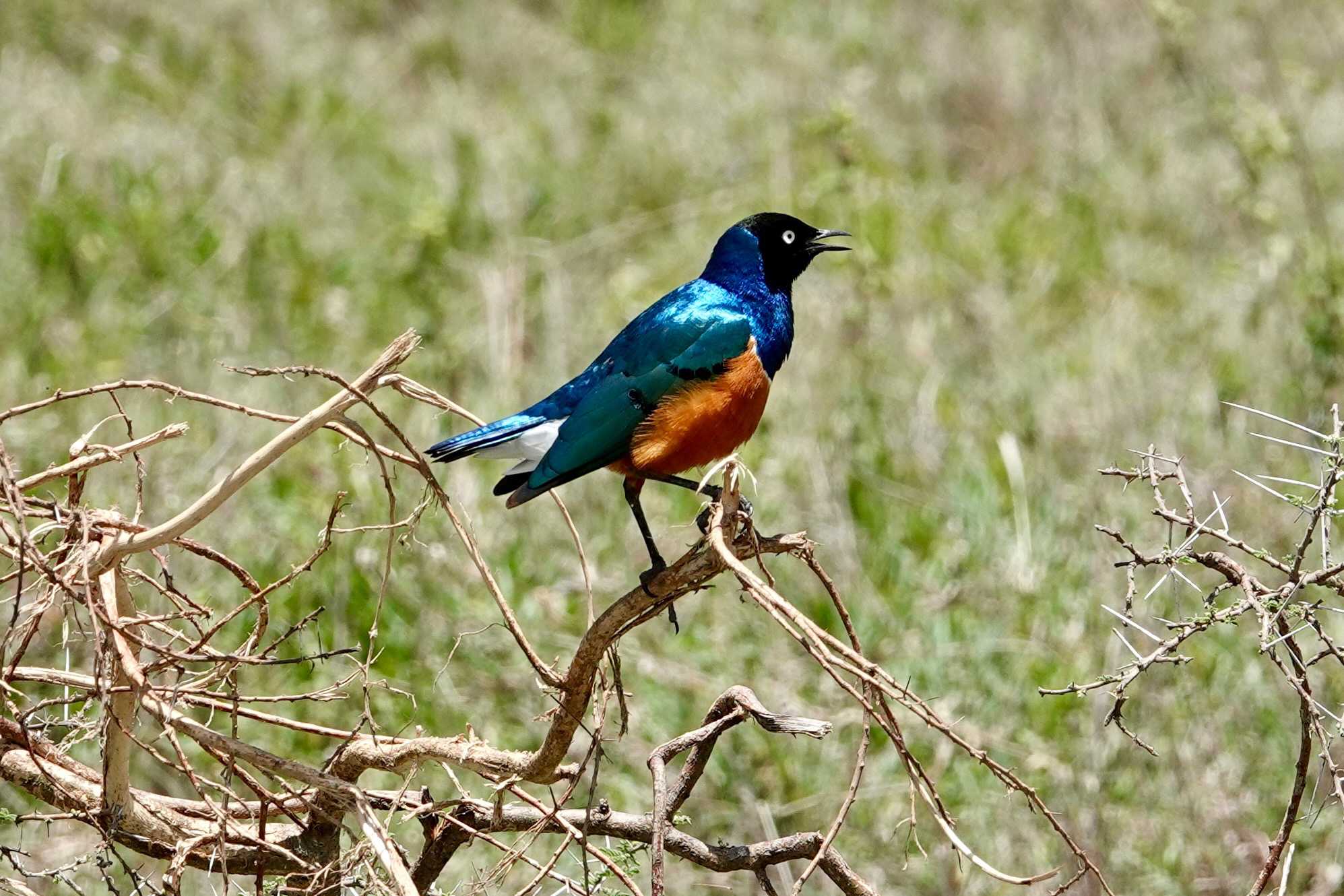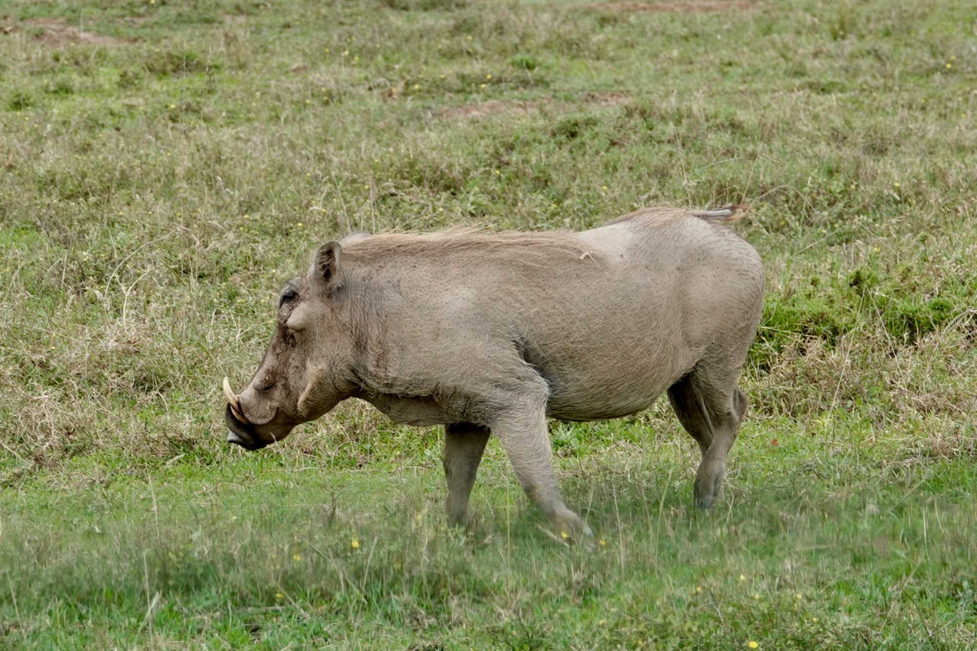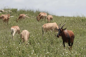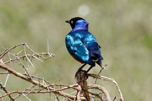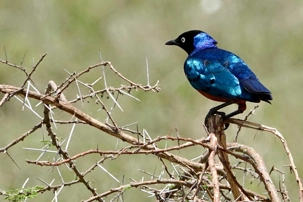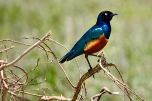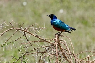 Un peu plus loin, une lionne solitaire se prélasse dans l’herbe. Elle est couchée, calme, presque indifférente à notre présence. Peut-être fatiguée d’une chasse nocturne. Sa posture est détendue, mais son regard reste attentif. Encore un beau moment à capturer. Nous croisons également de magnifiques topis en fin d'avant-midi. Leur robe brun roux aux reflets plus foncés capte merveilleusement la lumière. On les voit souvent perchés sur de petites buttes de terre, comme de véritables sentinelles surveillant leur territoire.